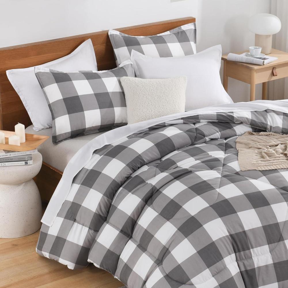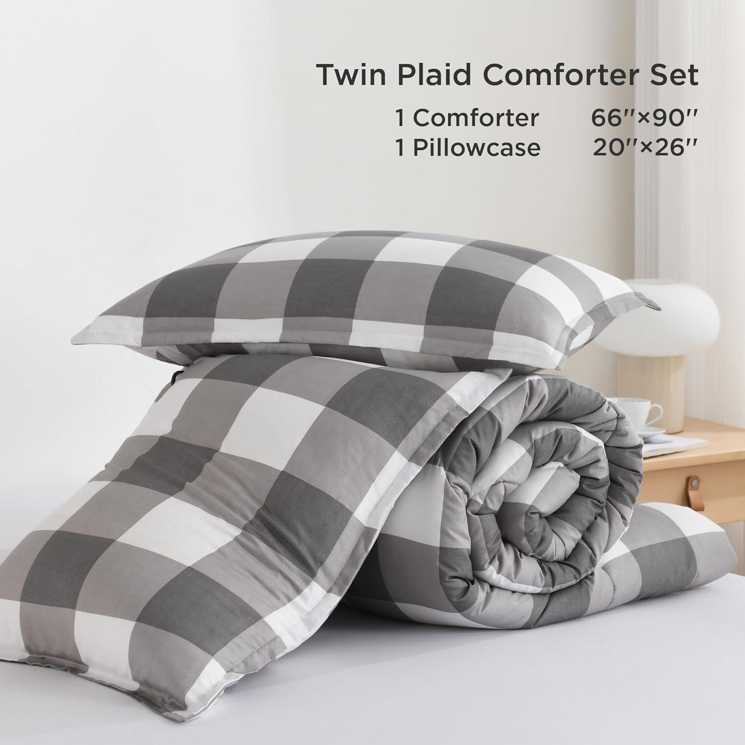 【Plaid Comforter Set】Our bedding set comes with 1 Light Gray plaid comforter and 2 pillowcases. You don't need extra cover anymore, which can save your time for change bedding covers. You can conveniently get a bedding set in one single package rather than purchasing each item separately which costs more money.