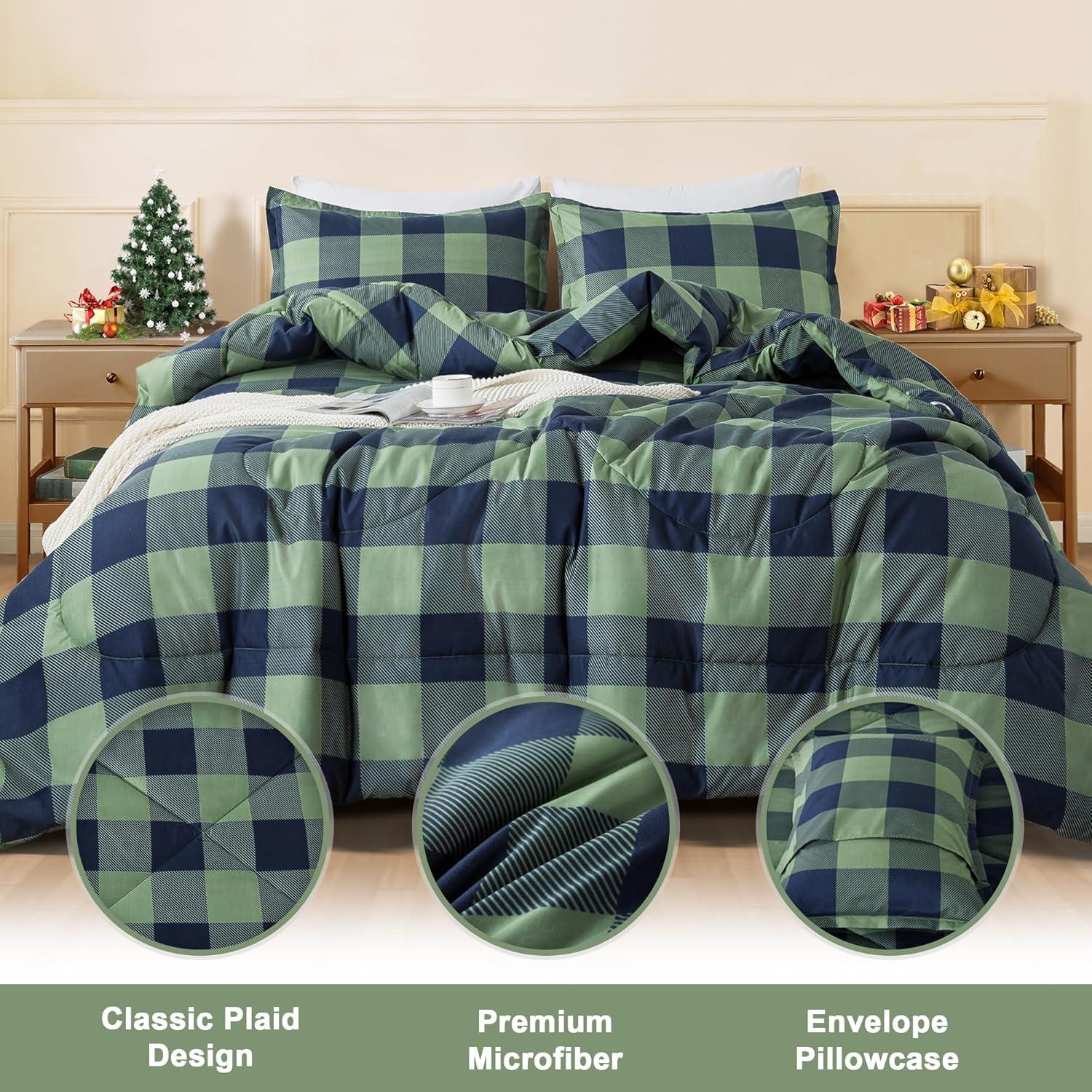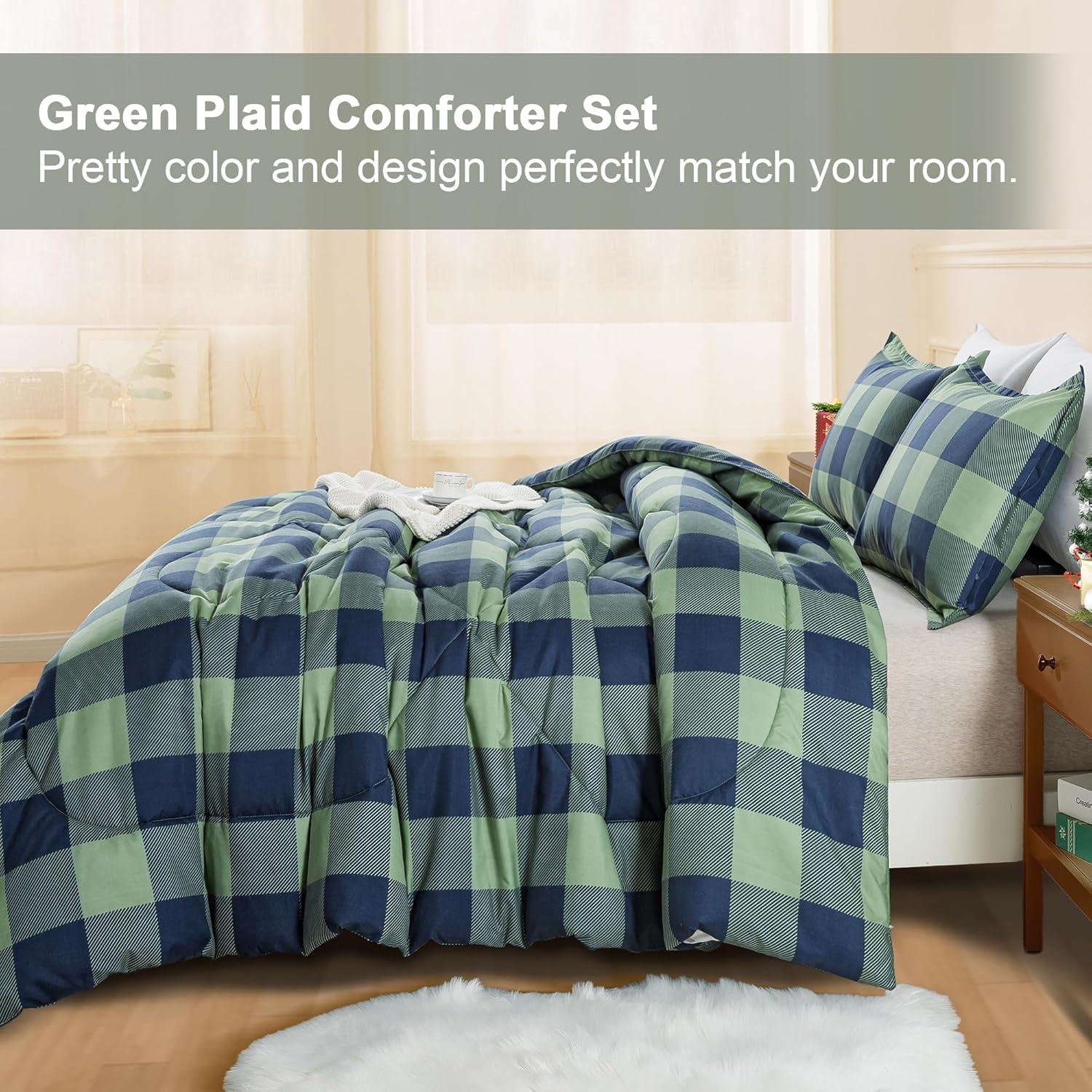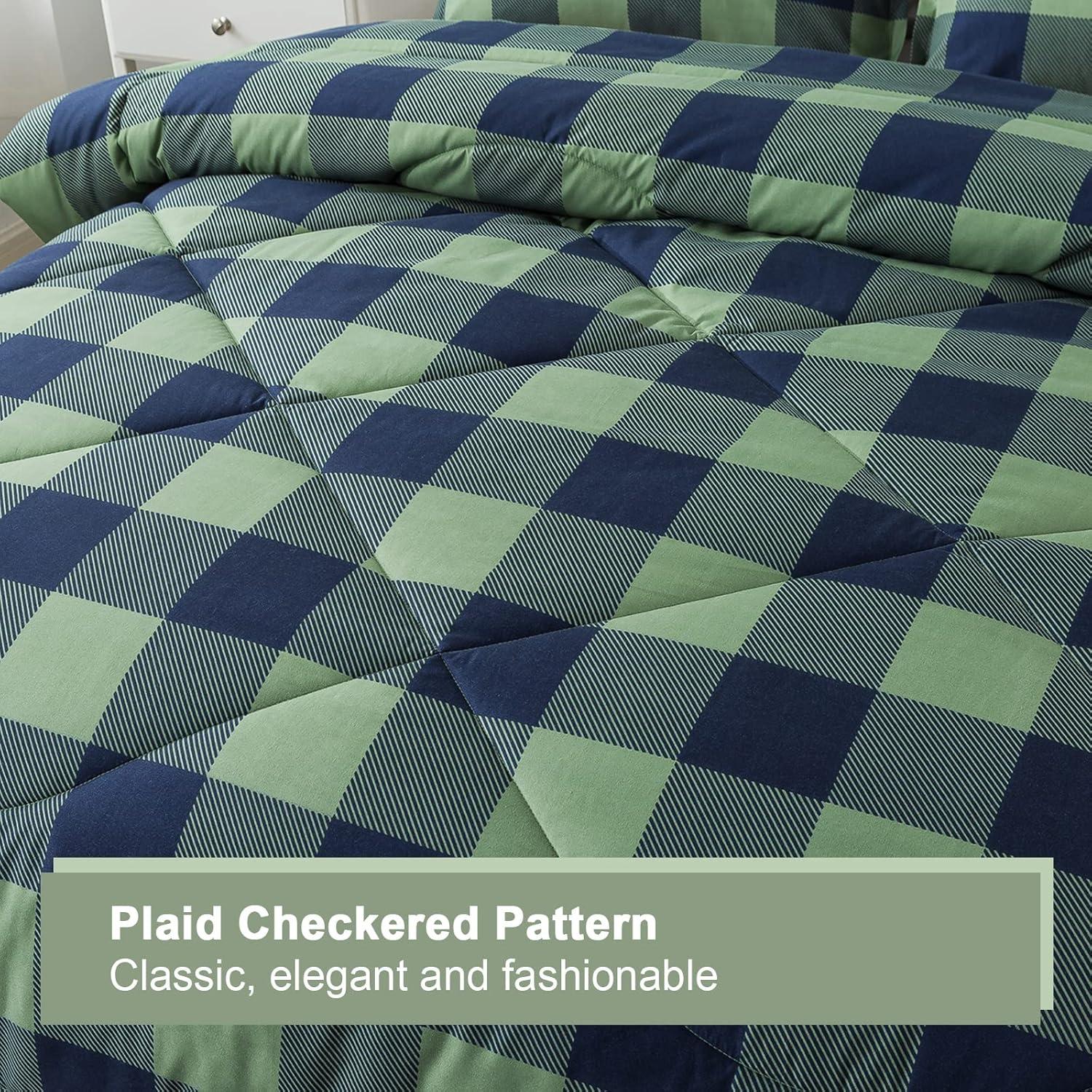 Andency Grey Queen Comforter Set, 3 Pieces Grey White Buffalo Check Plaid Bedding Comforter & Sets, Light Gray Soft Lightweight Fluffy All Season Bed Set(15 – Buffalo Plaid – Green Navy)