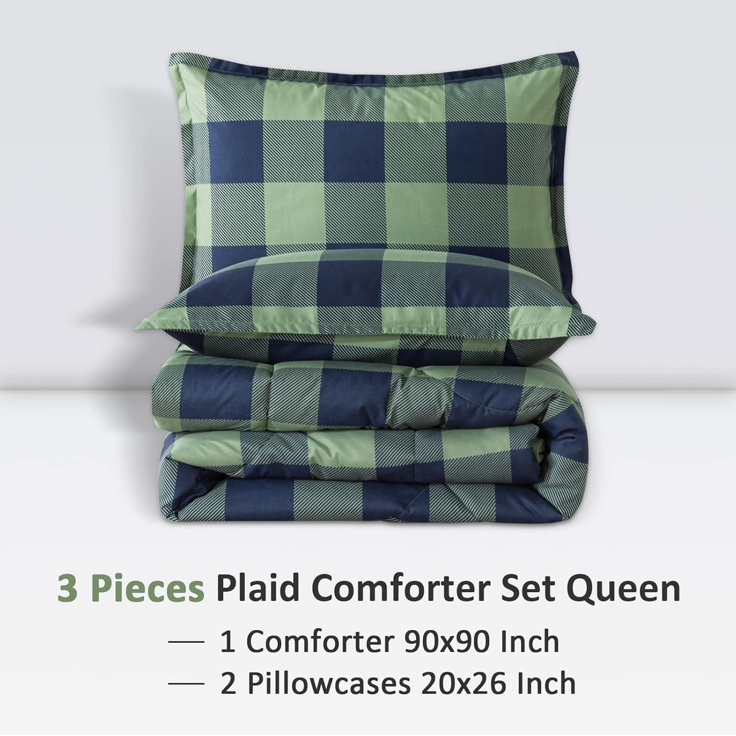 【3 Pieces Bedding Set】Andency plaid comforter set queen size includes 1 Comforter (90x90Inch) and 2 Pillowcases (20x26Inch). The solid comforter set can be used as a duvet insert or as a stand-alone comforter.