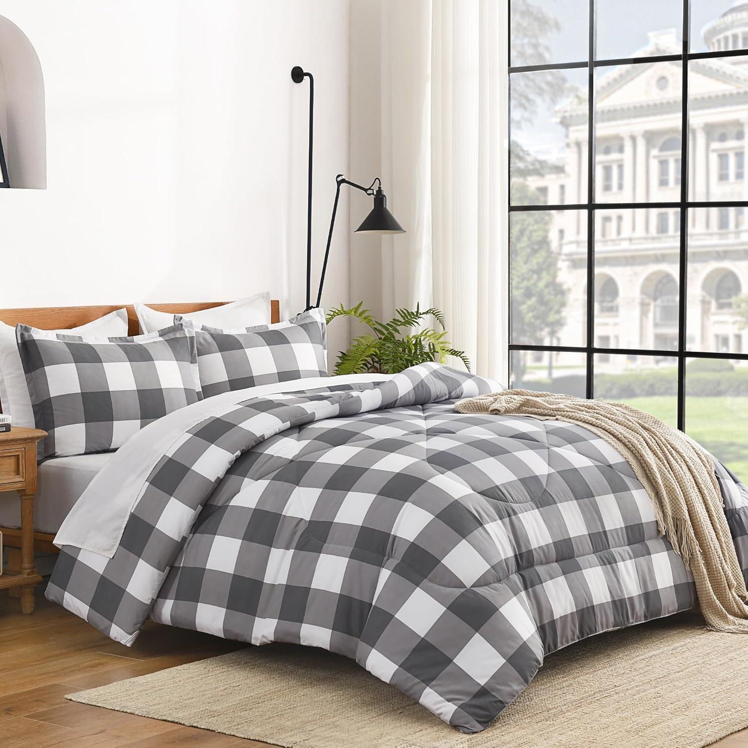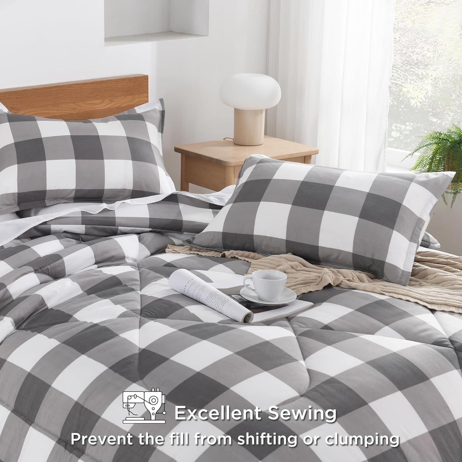 【Soft Microfiber Fabric】This gray plaid comforter set is made from high-quality microfiber, gives you the ultimate soft and cozy touch feeling, keeps you comfortable all through the night for a good and sound sleep. The microfiber comforter is all-season useable.