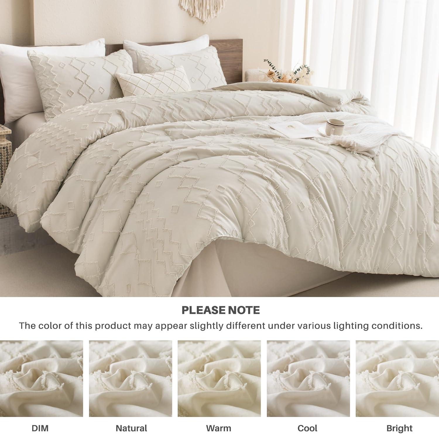 Andency Khaki Tufted Comforter Set Twin, 2 Pieces(1 Boho Comforter, 1 Pillowcase) Textured Farmhouse Bedding Set with Soft Microfiber Down Alternative Geometric Pattern(04 - Beige)