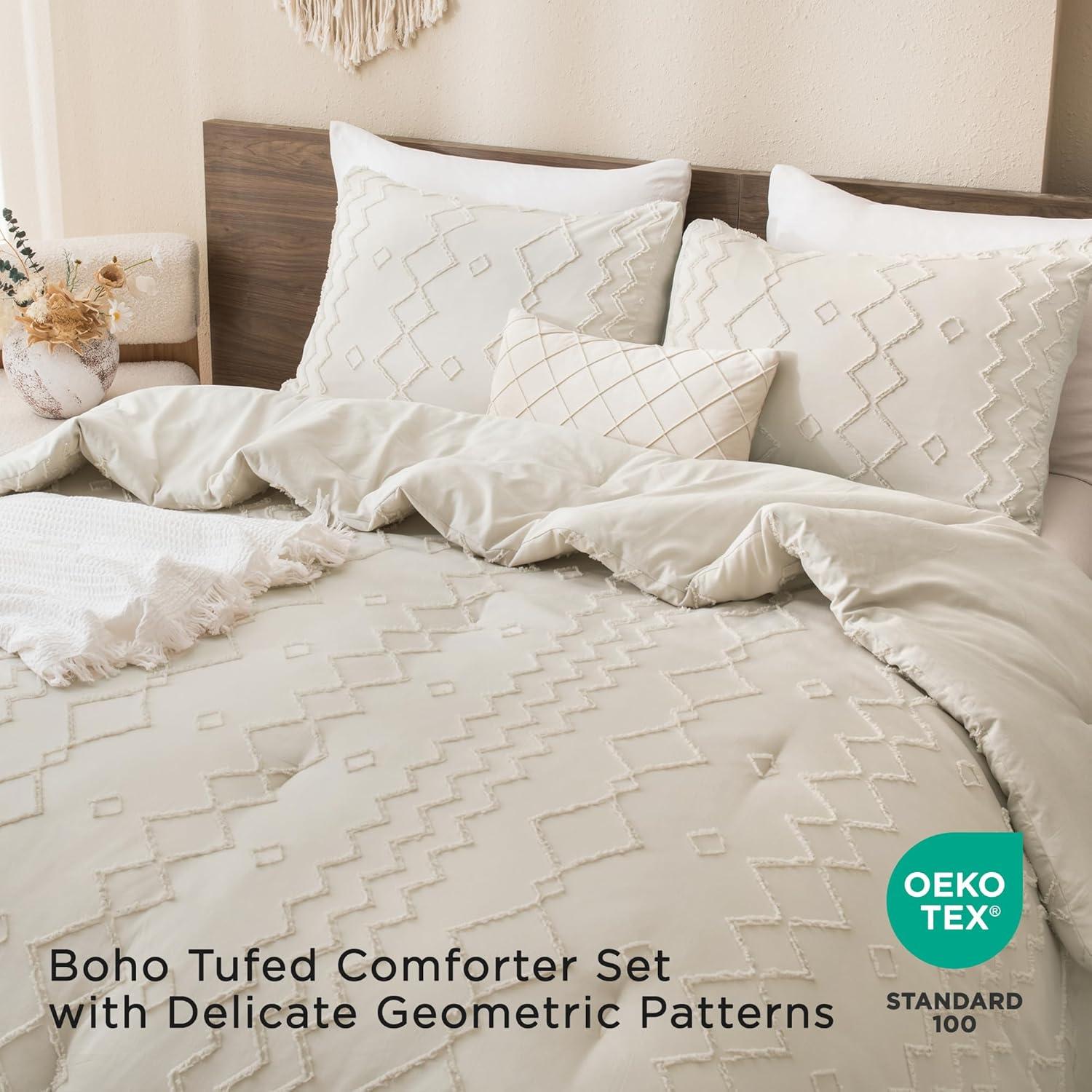 【Tufted Design】: Andency boho comforter set with a classic tufted design, solid color with delicate geometric patterns, backed with flat soild sheeting, minimalist and stylish. Classy tufted embroidery pattern brings a unique and luxurious look to any bedroom, simple yet sophisticated design to refresh your bedroom
