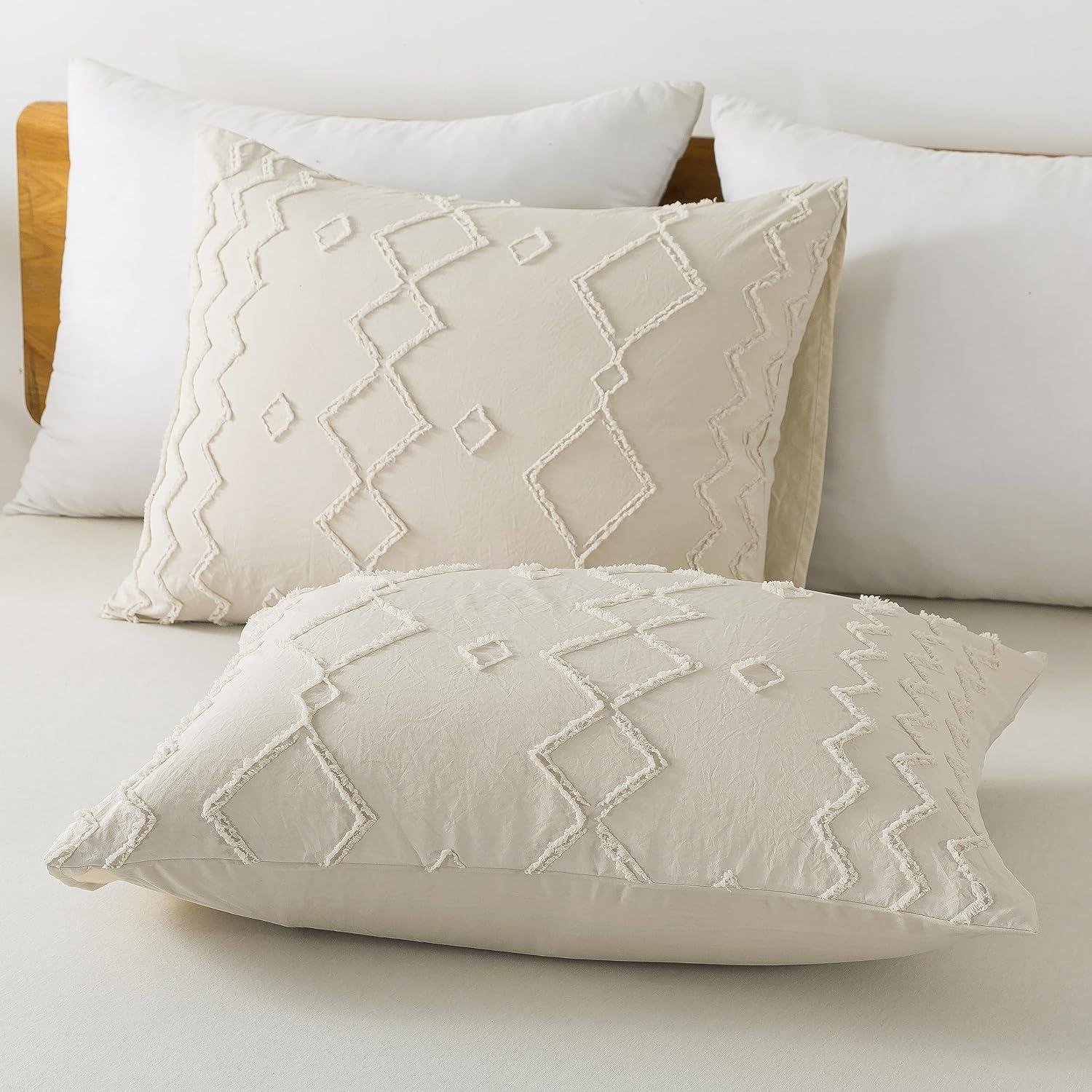 Andency Khaki Tufted Comforter Set Twin, 2 Pieces(1 Boho Comforter, 1 Pillowcase) Textured Farmhouse Bedding Set with Soft Microfiber Down Alternative Geometric Pattern(03 – White)