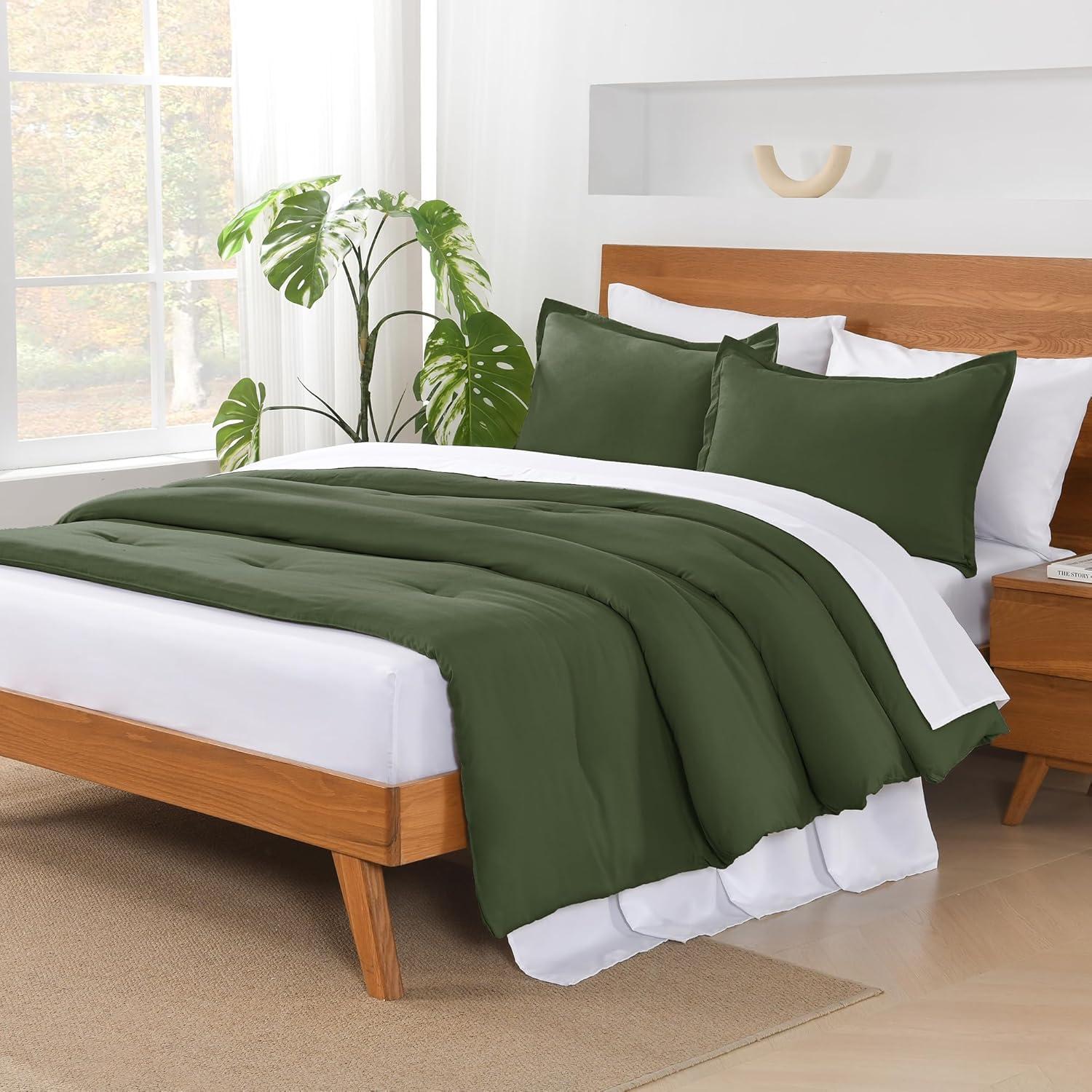 Andency King Size Comforter Set – 7 Pieces Bed in a Bag King Bedding Comforter Sets Oatmeal, Winter Solid Soft Lightweight Comforter with Fitted Sheets, Flat Sheets, Pillowcases & Shams(05 – Olive Green)