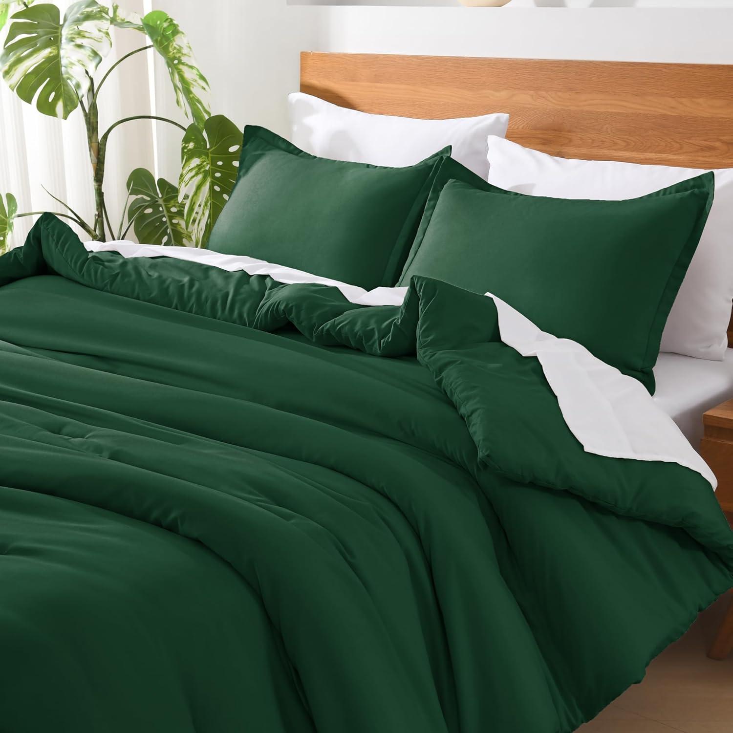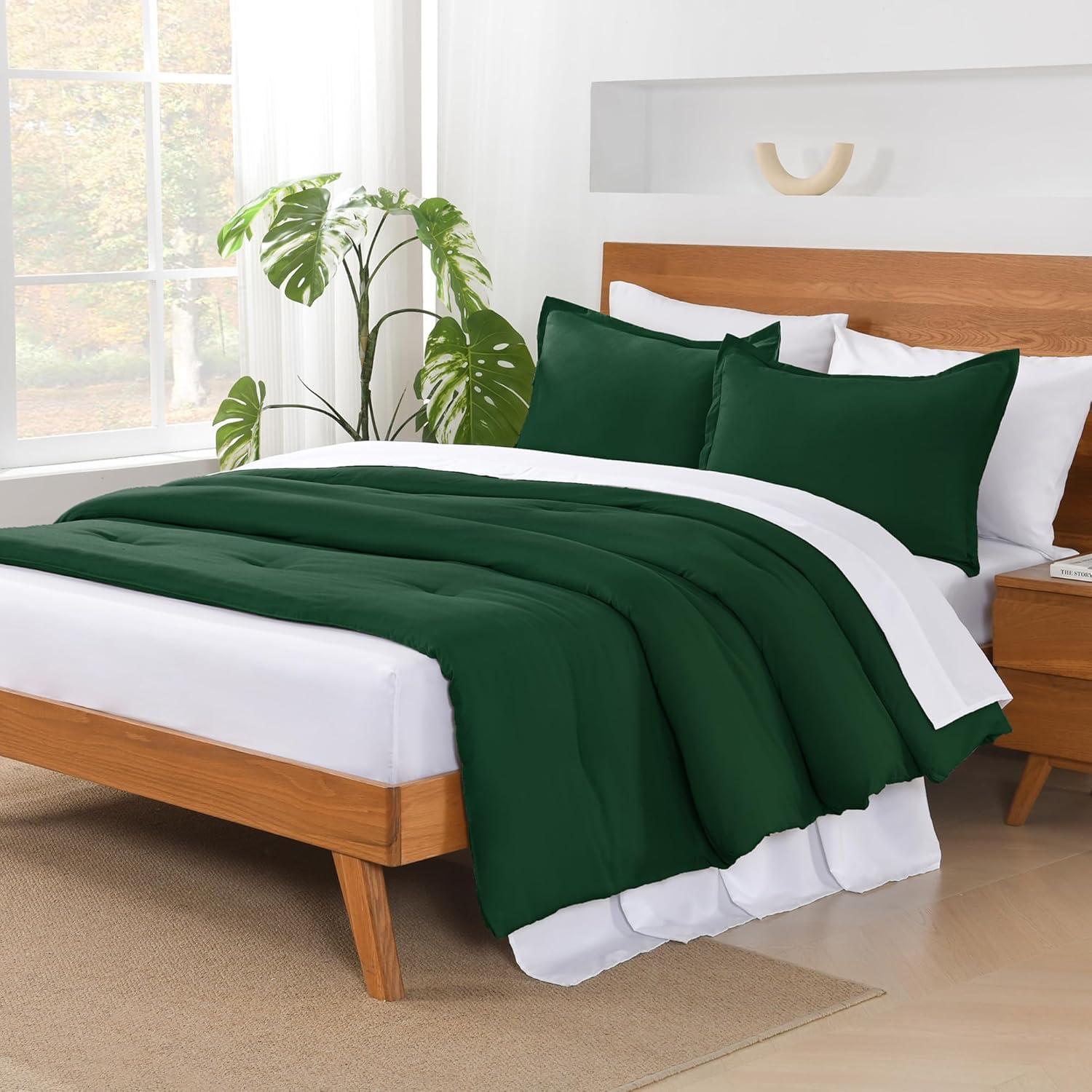 Andency King Size Comforter Set – 7 Pieces Bed in a Bag King Bedding Comforter Sets Oatmeal, Winter Solid Soft Lightweight Comforter with Fitted Sheets, Flat Sheets, Pillowcases & Shams(06 – Emerald Green)