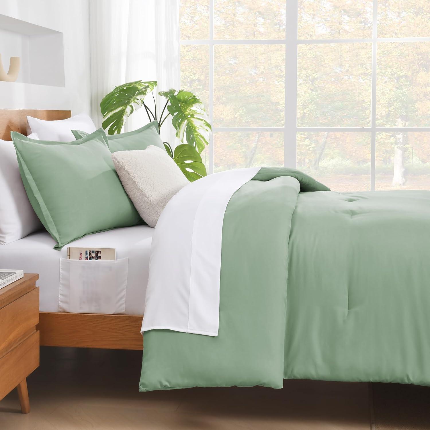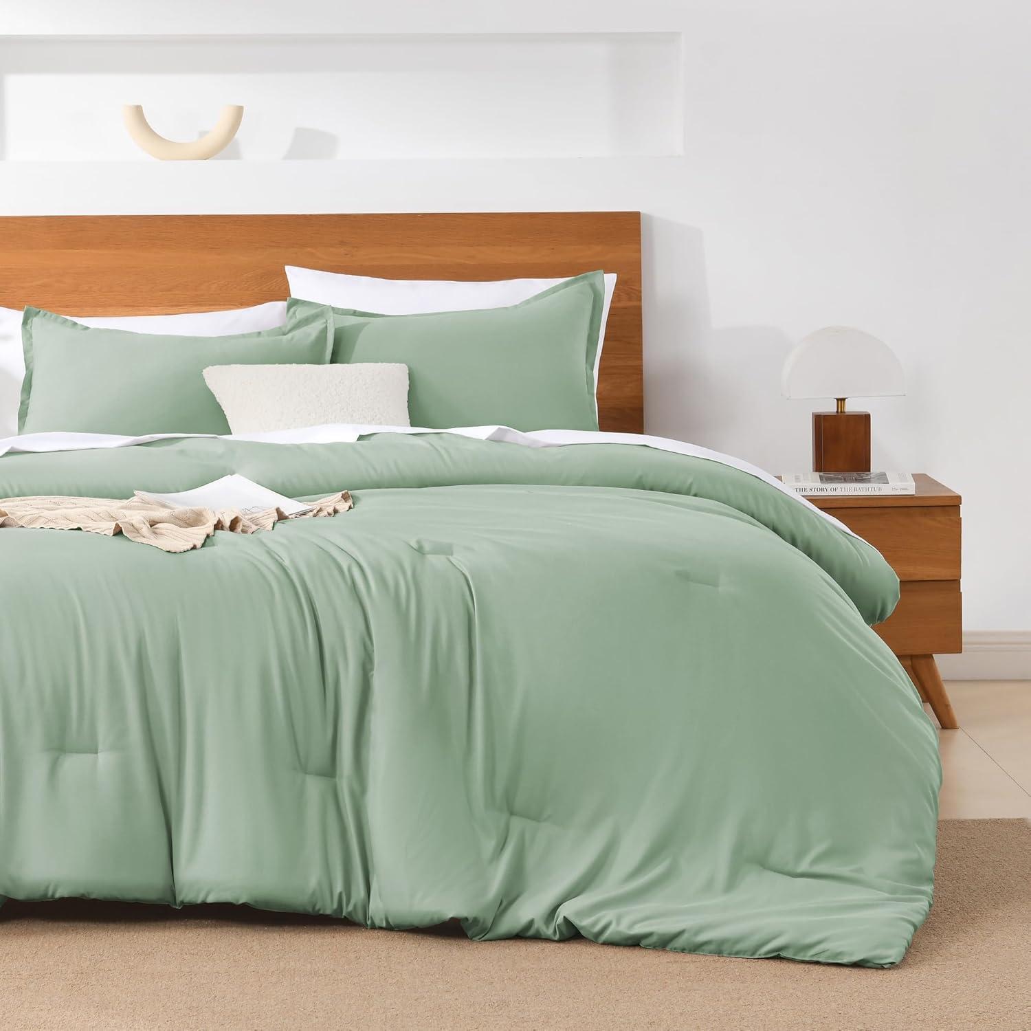 imageAndency King Size Comforter Set  7 Pieces Bed in a Bag King Bedding Comforter Sets Oatmeal Winter Solid Soft Lightweight Comforter with Fitted Sheets Flat Sheets Pillowcases ampamp Shams08  Sage Green