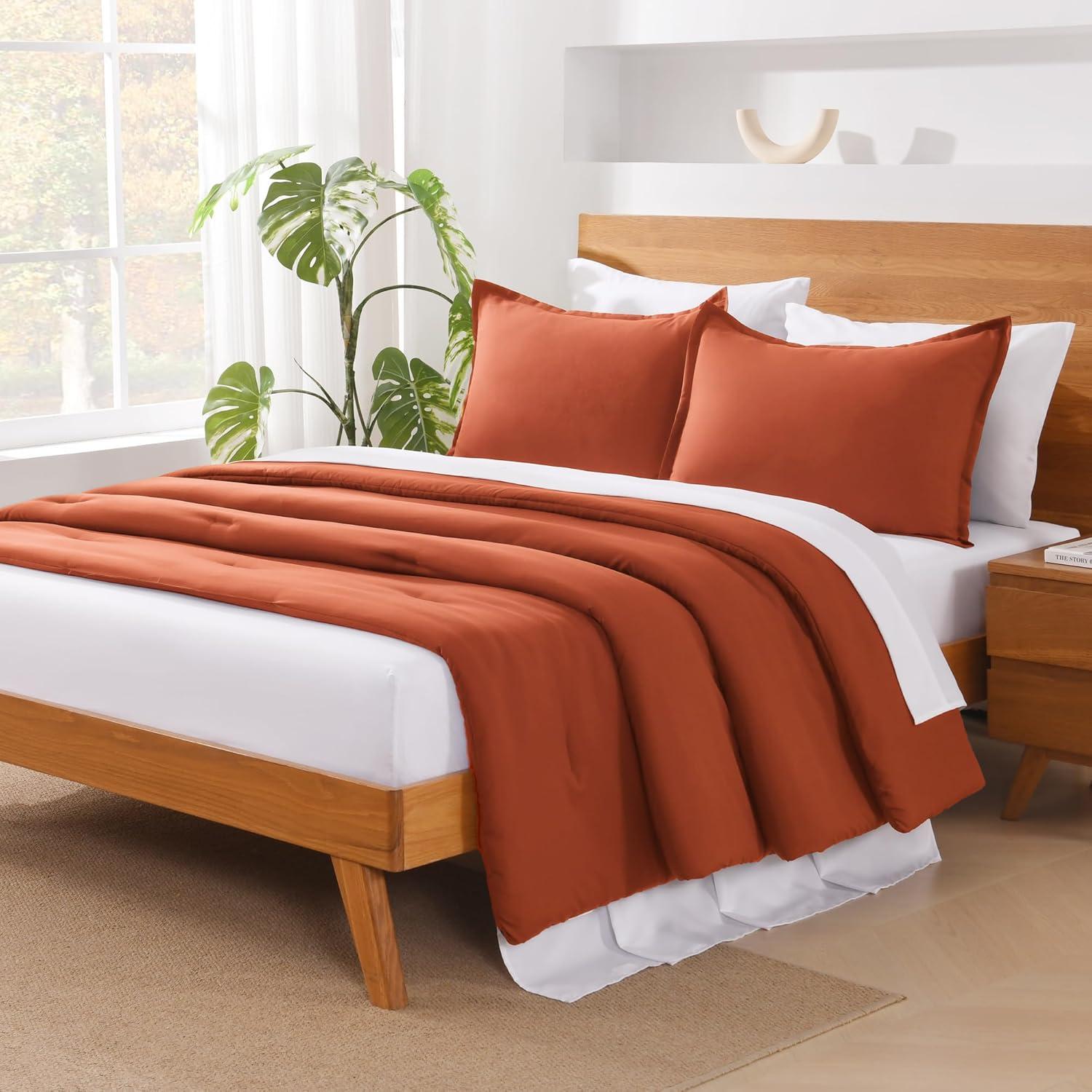 Andency King Size Comforter Set – 7 Pieces Bed in a Bag King Bedding Comforter Sets Oatmeal, Winter Solid Soft Lightweight Comforter with Fitted Sheets, Flat Sheets, Pillowcases & Shams(09 – Burnt Orange)