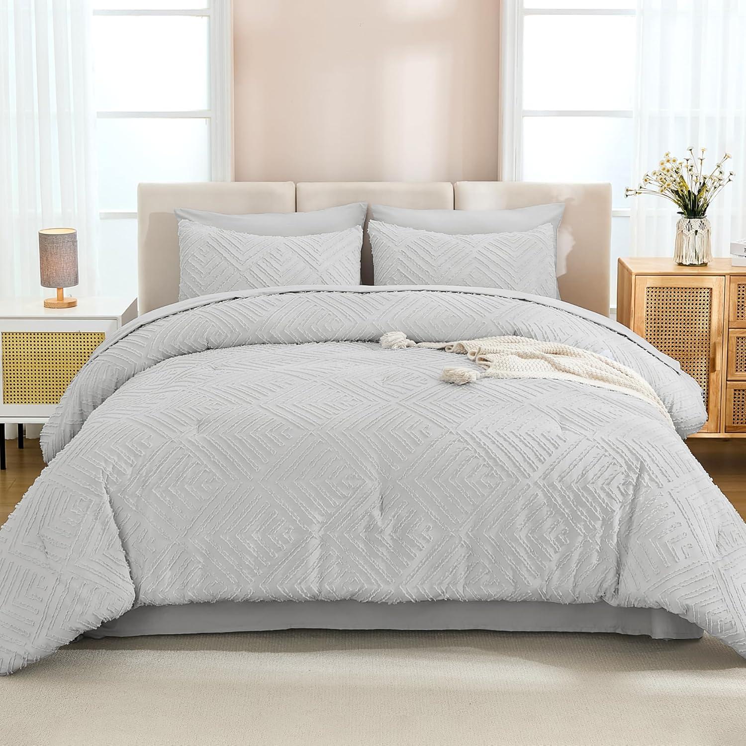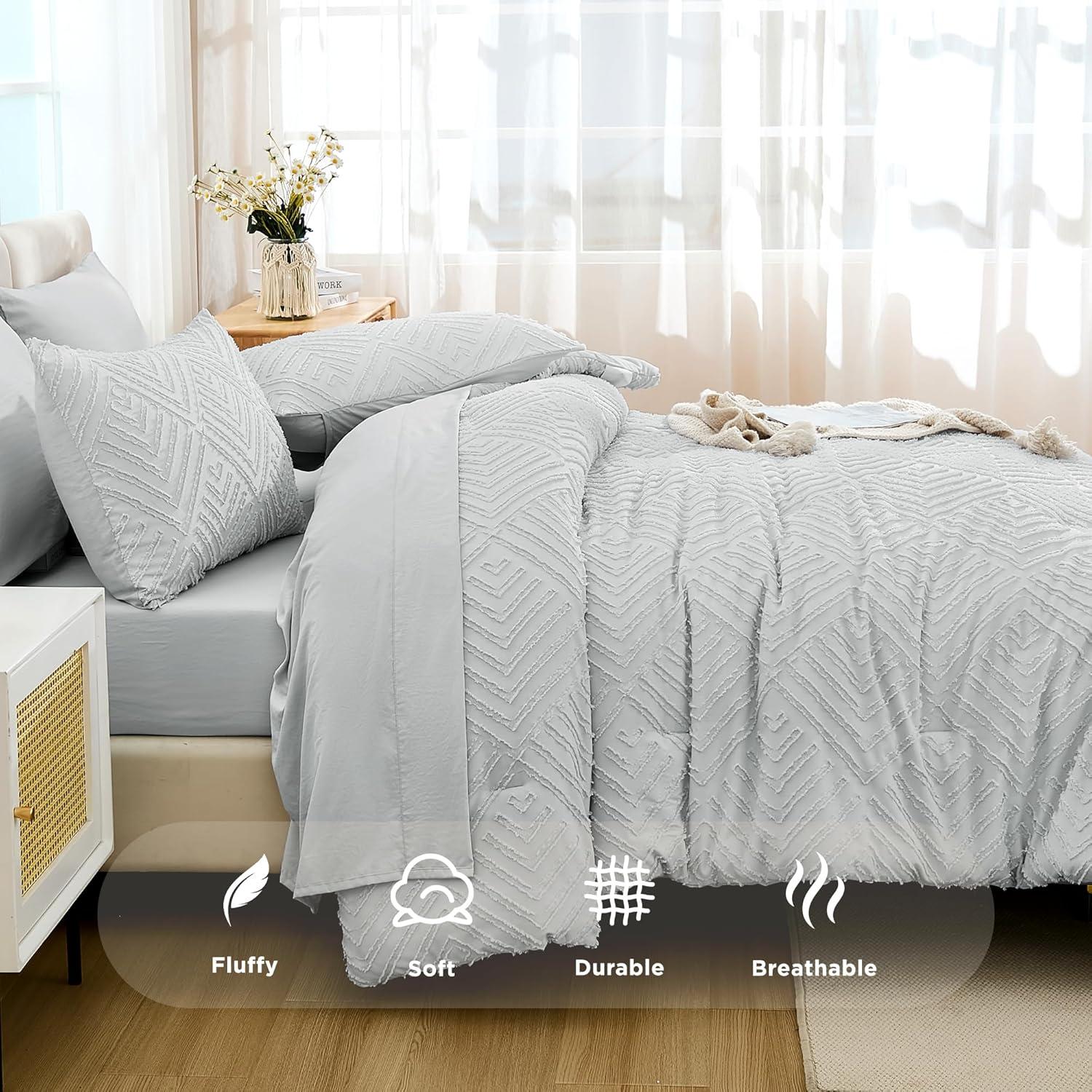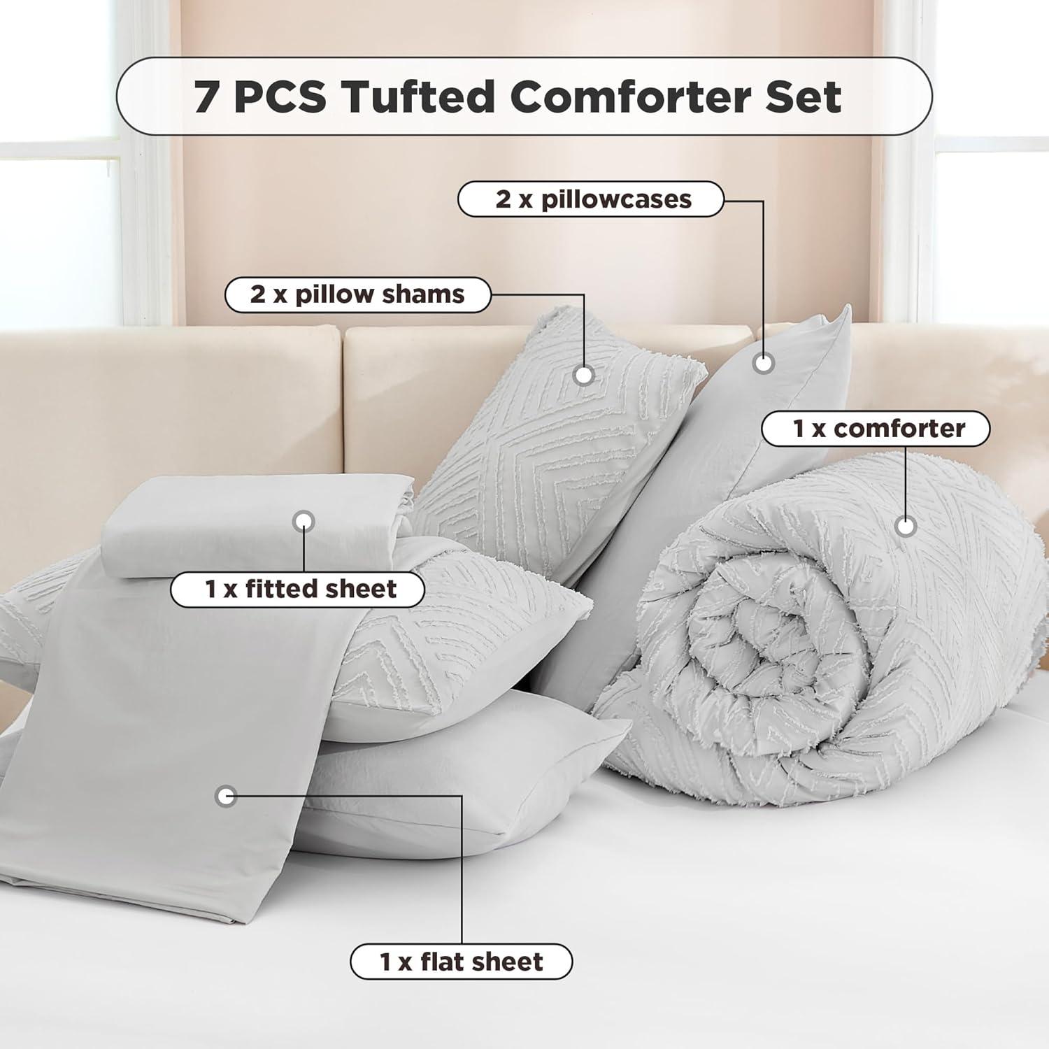 Andency King Size Comforter Set 7 Pieces Dark Emerald Green – Bed in a Bag King Boho Lightweight Fluffy Tufted Bedding Sets with Quilt Comforter, Sheets, Pillowcases & Shams(Light Grey)