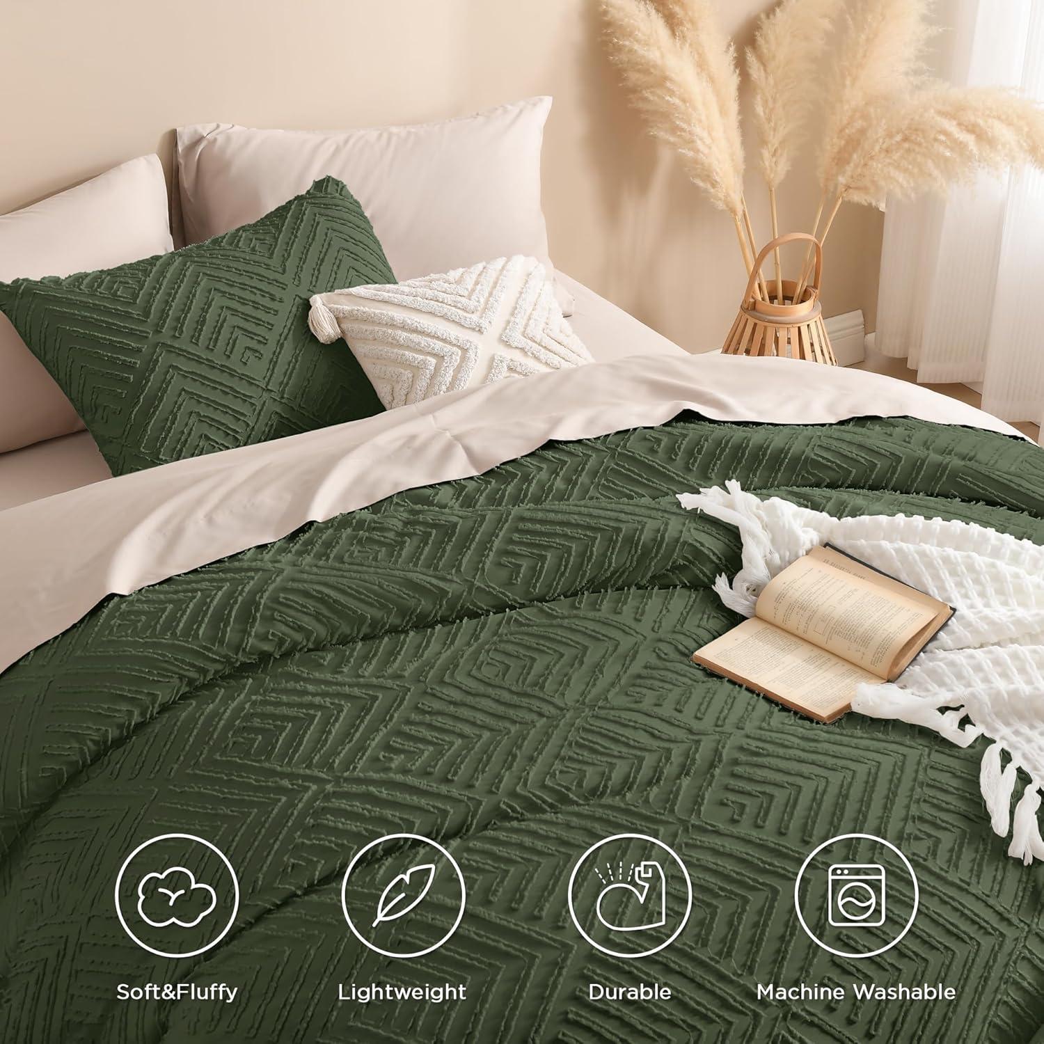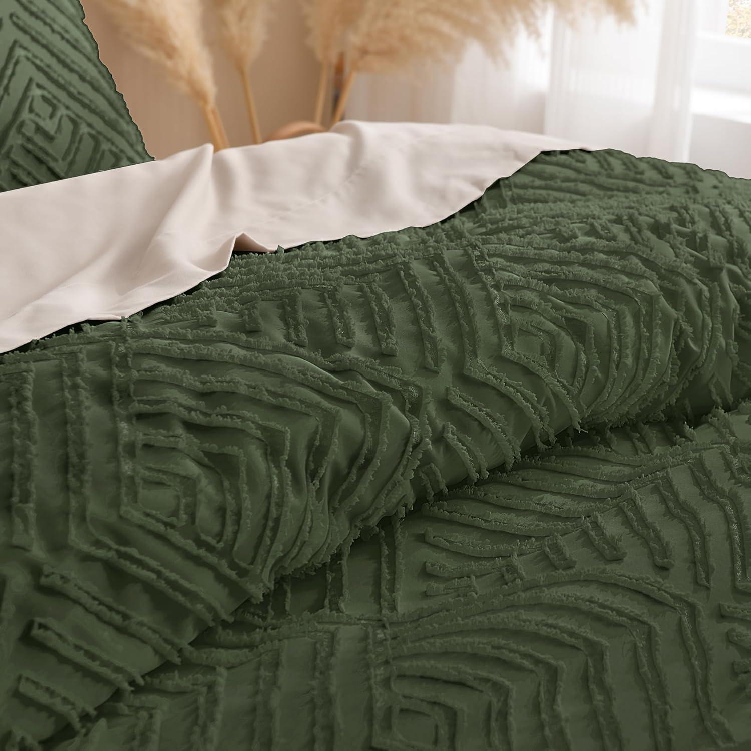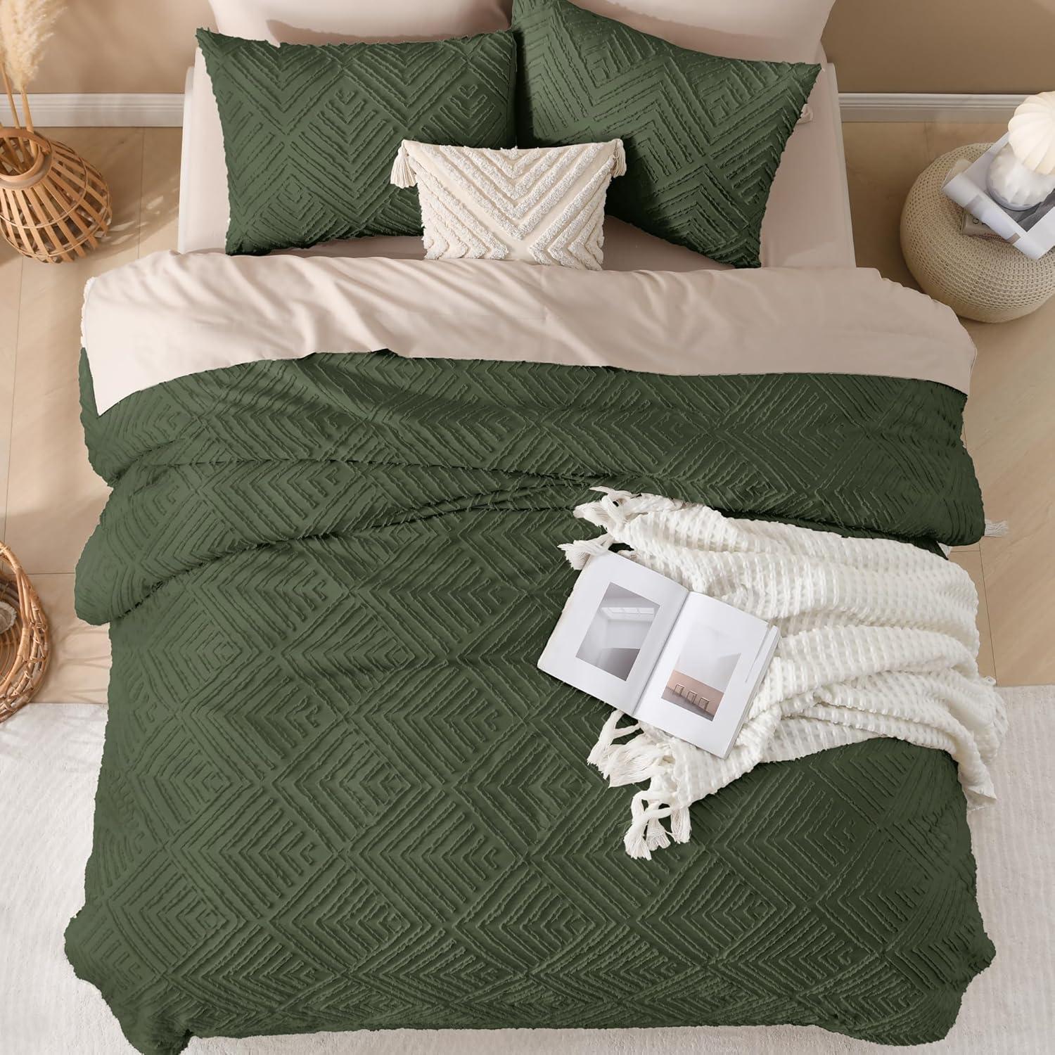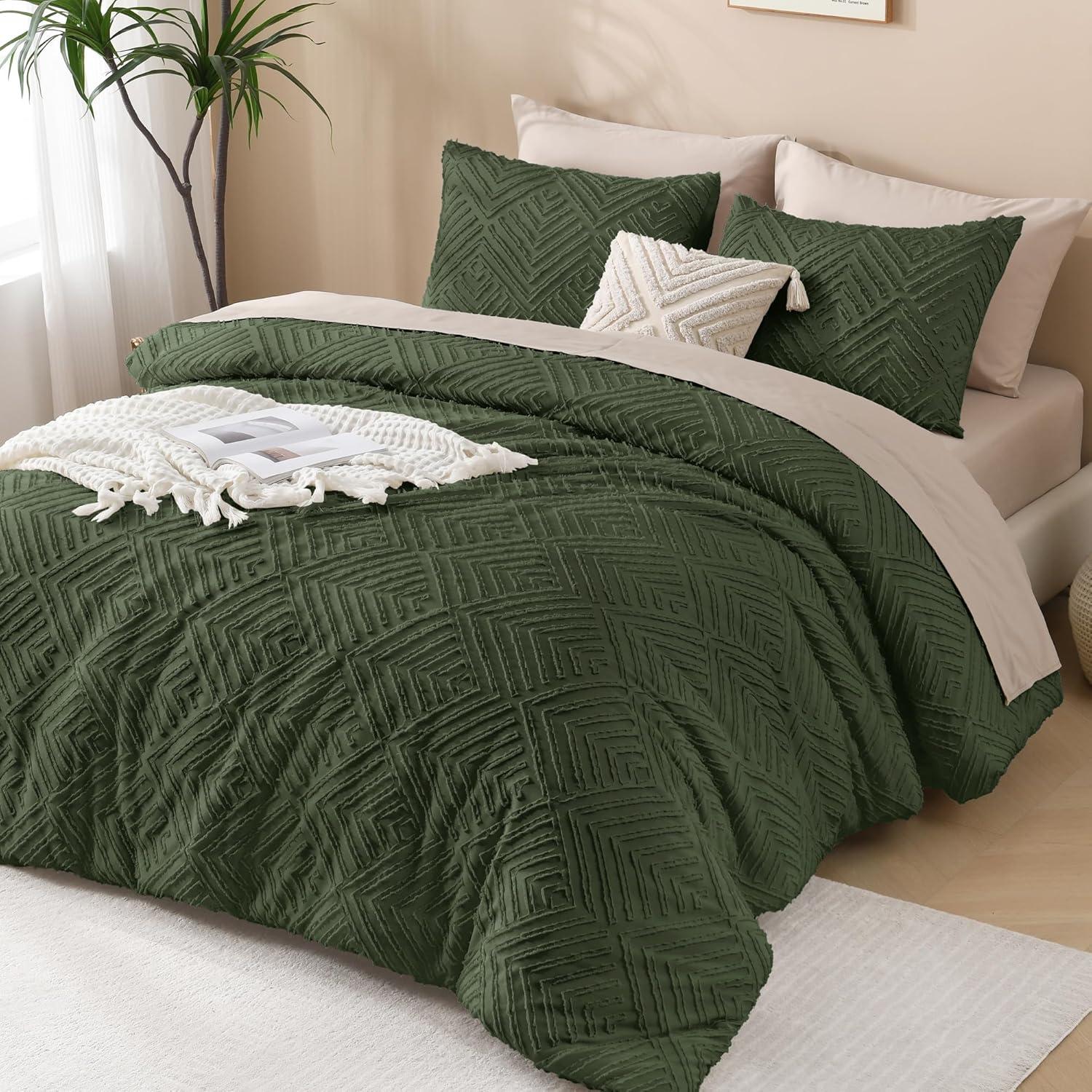 Andency King Size Comforter Set Beige, 3 Pieces Boho King Bedding Comforter Set Cream, All Season Soft Lightweight Tufted Textured Down Alternative Comforter Fluffy Bed Set(09 - Olive Green)