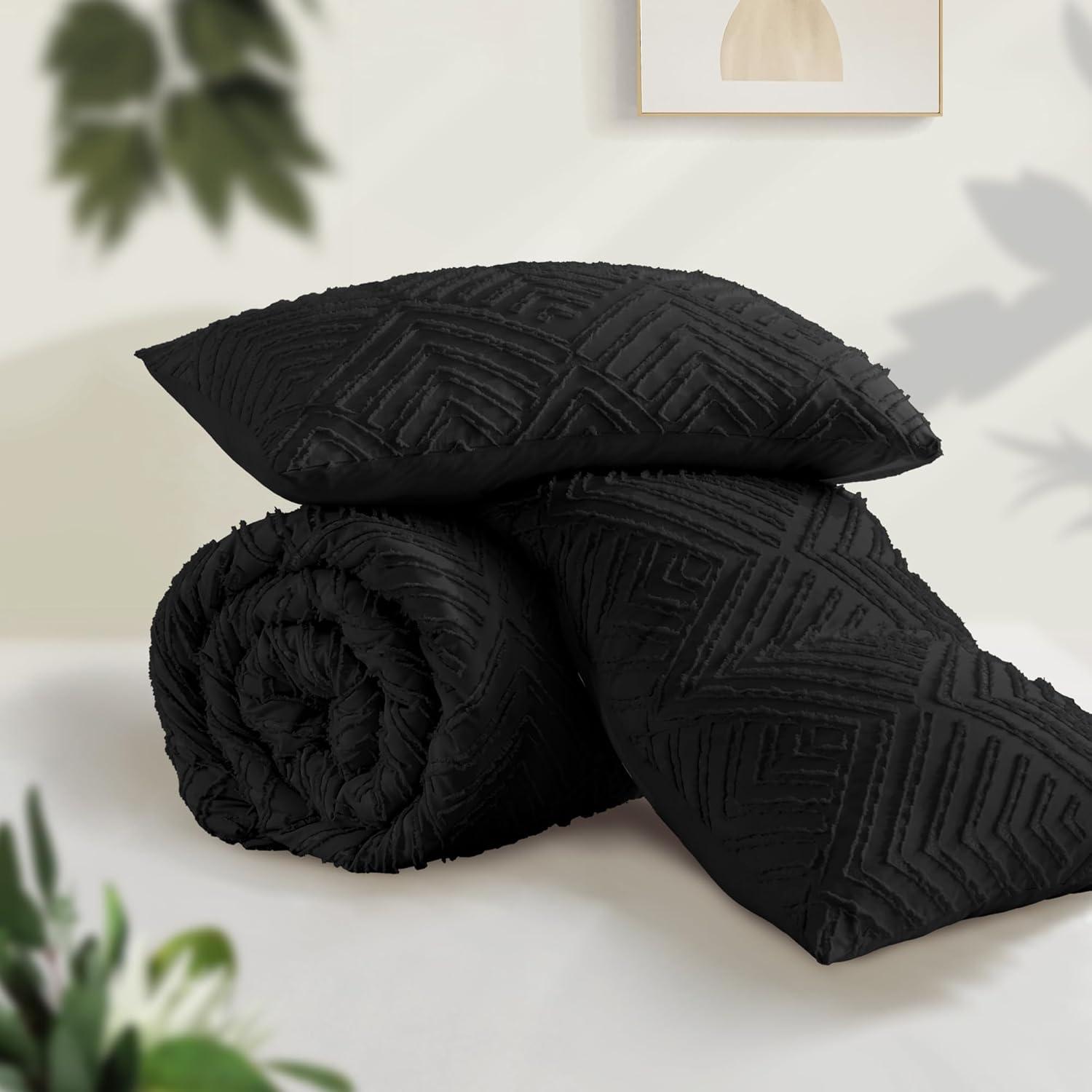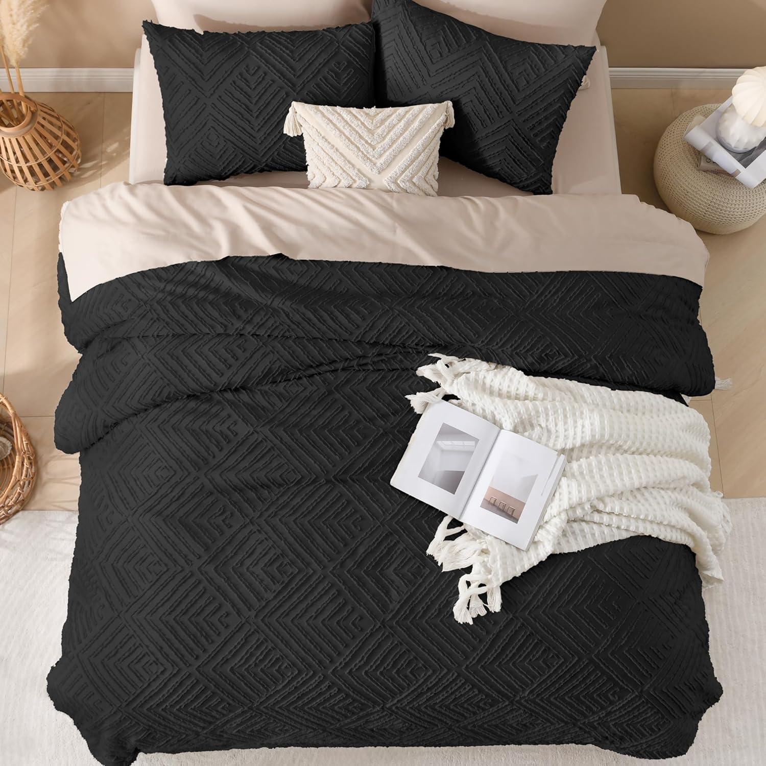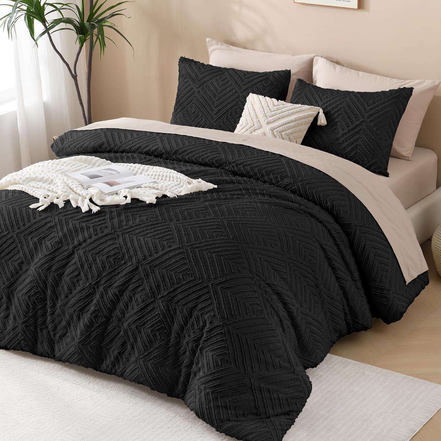 Andency King Size Comforter Set Beige, 3 Pieces Boho King Bedding Comforter Set Cream, All Season Soft Lightweight Tufted Textured Down Alternative Comforter Fluffy Bed Set(10 – Black)