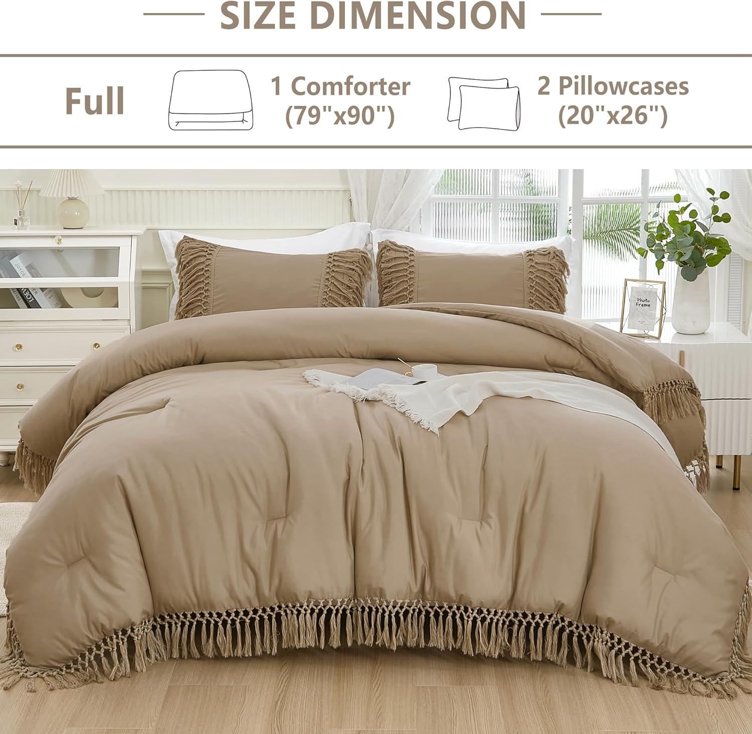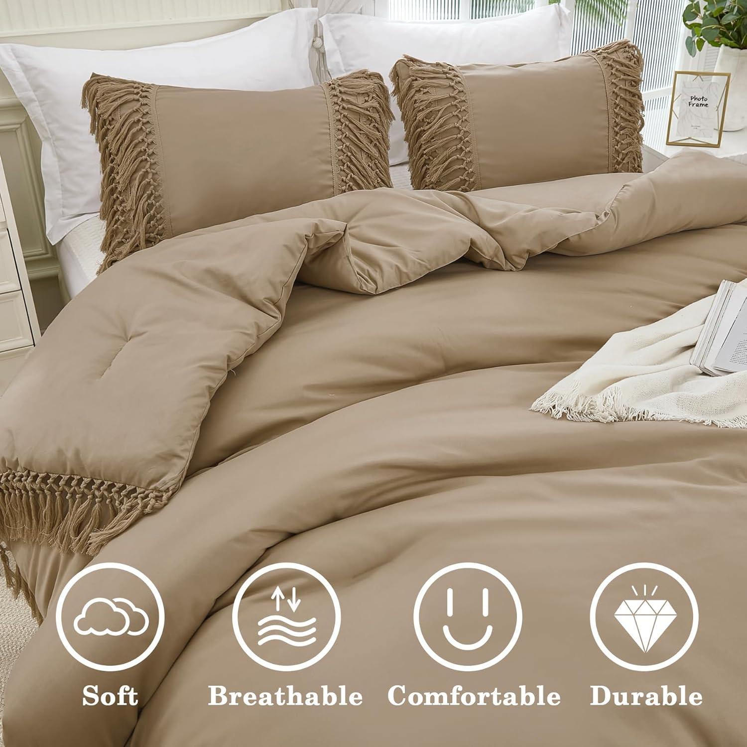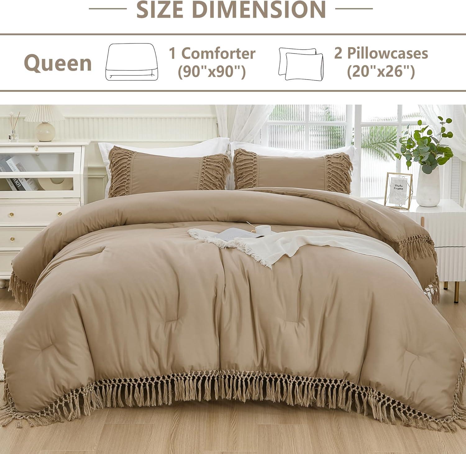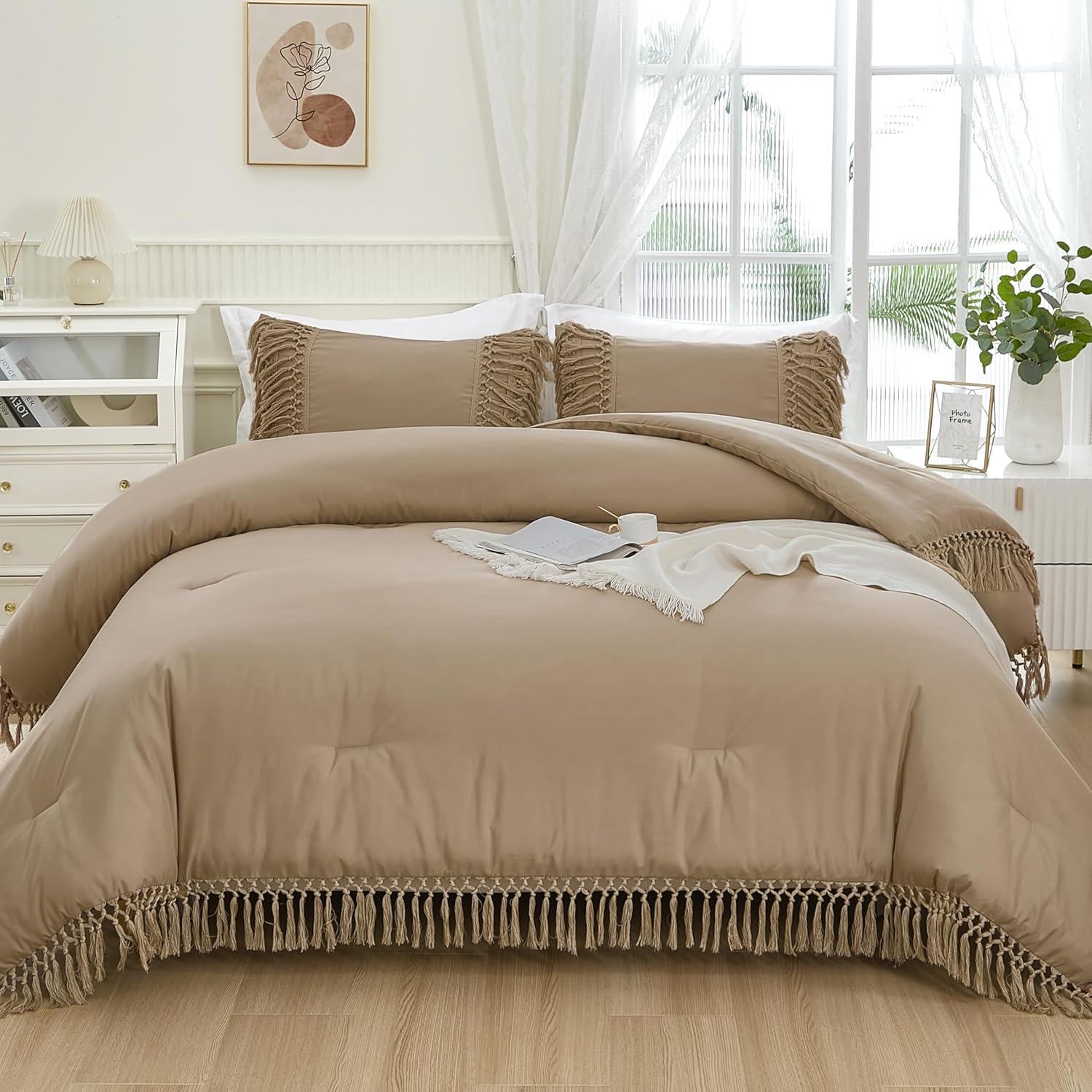 Andency King Size Comforter Set Beige, 3 Pieces Boho Tassel Lightweight Soft Bedding Comforter Sets for King Bed, All Season Fluffy Bed Set (104x90In Comforter & 2 Pillowcases)(Taupe)