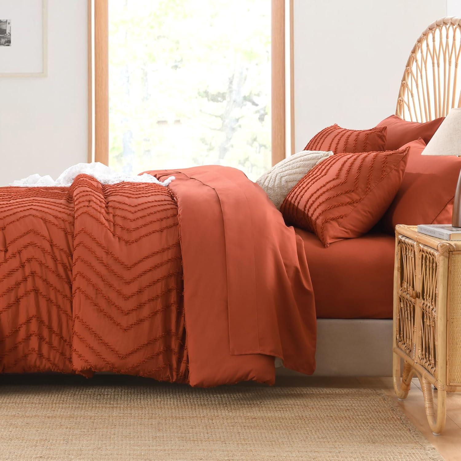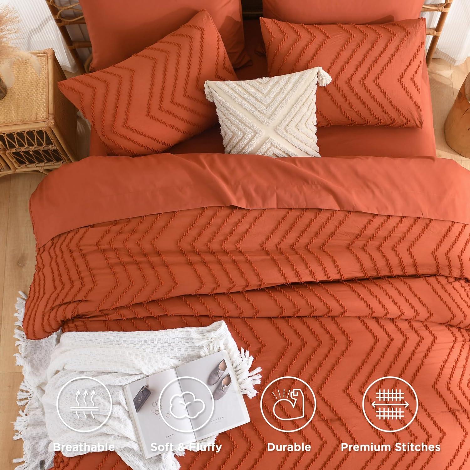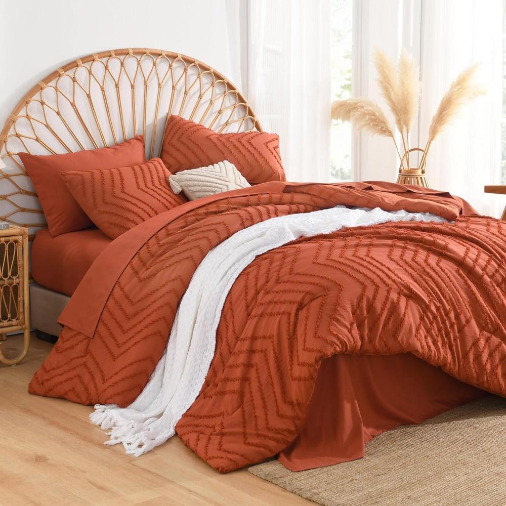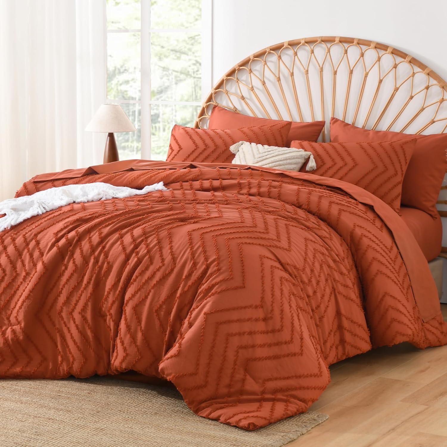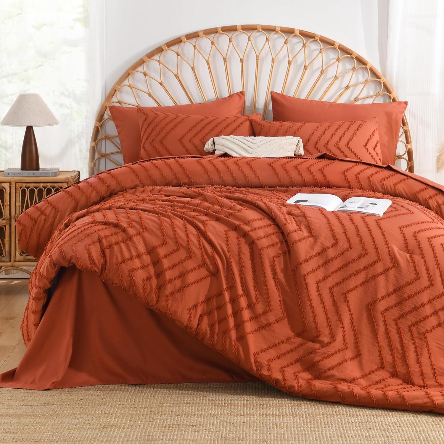 Andency King Size Comforter Set, Burnt Orange Terracotta Bed in a Bag 7 Pieces, Boho Tufted Chevron Bedding Sets with 1 Comforter, 1 Flat Sheet, 1 Fitted Sheet, 2 Pillow Shams, 2 Pillowcases