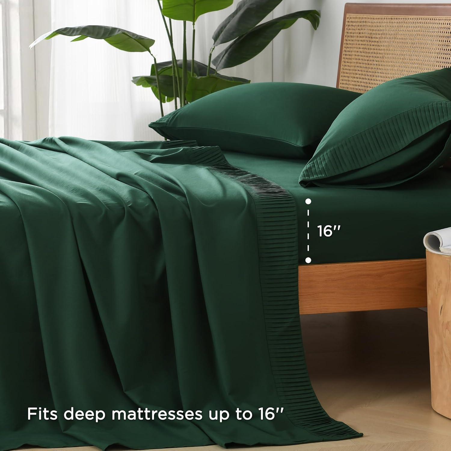 Andency King Size Sheets Set 4 Pieces, Dark Olive Green Super Soft Sheets for King Size Bed, Microfiber King Sheet, Deep Pocket Up to 16", Hotel Luxury Breathable & Cooling Bed Sheet Set(Emerald)
