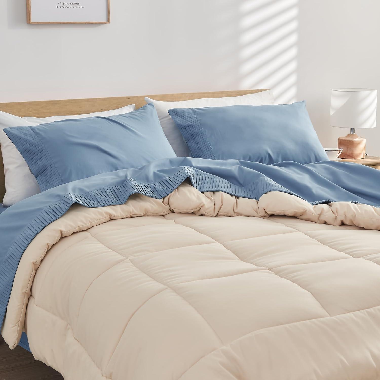 Andency King Size Sheets Set 4 Pieces, Dark Olive Green Super Soft Sheets for King Size Bed, Microfiber King Sheet, Deep Pocket Up to 16″, Hotel Luxury Breathable & Cooling Bed Sheet Set(Grayish Blue)