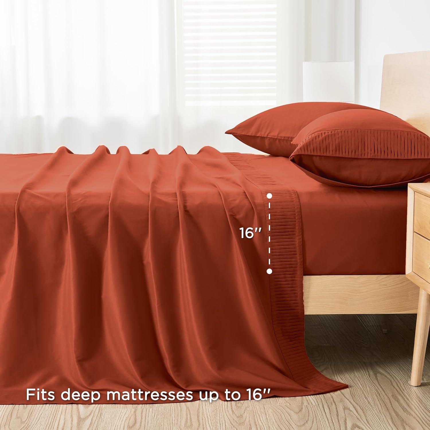 Andency King Size Sheets Set 4 Pieces, Dark Olive Green Super Soft Sheets for King Size Bed, Microfiber King Sheet, Deep Pocket Up to 16", Hotel Luxury Breathable & Cooling Bed Sheet Set(Orange)