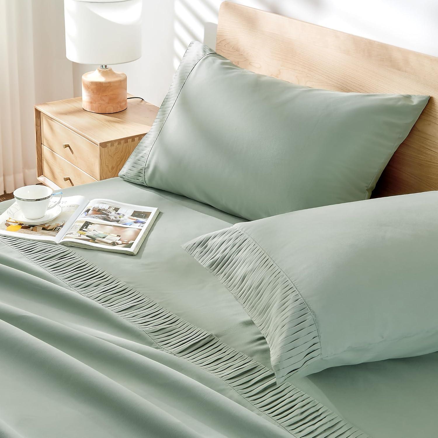 Exquisite Pleated Design: Modern ruched design, the ruched hems on the pillowcases and sheets give the sheet sets a very elegant look, and we also have a variety of colors for you to choose from, which can be easily coordinated with your existing bedding sets.