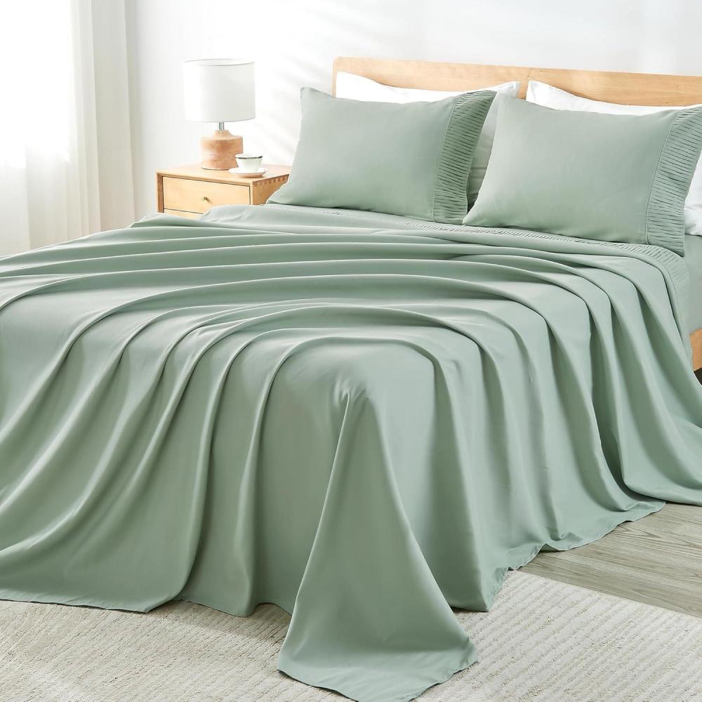 Andency King Size Sheets Set 4 Pieces, Dark Olive Green Super Soft Sheets for King Size Bed, Microfiber King Sheet, Deep Pocket Up to 16″, Hotel Luxury Breathable & Cooling Bed Sheet Set(Sage Green)