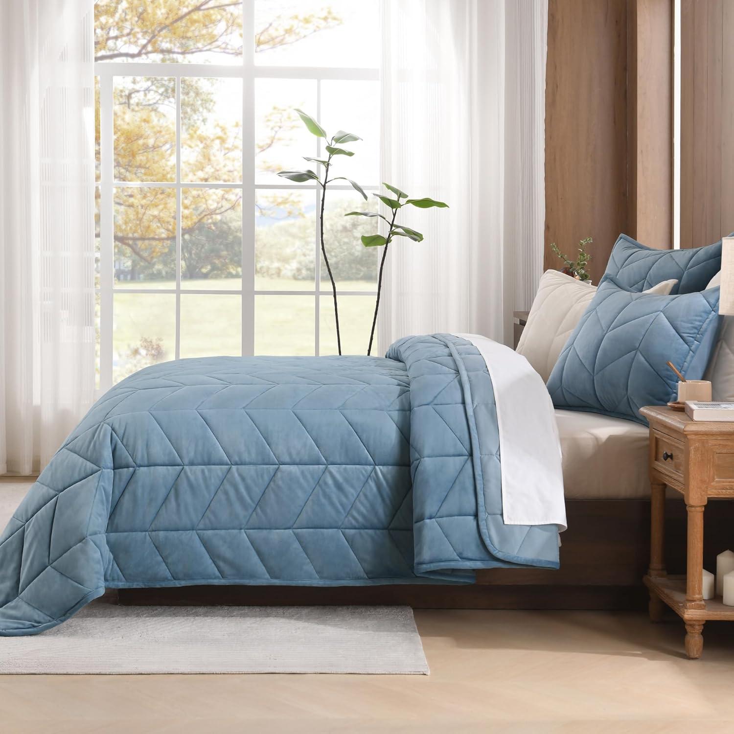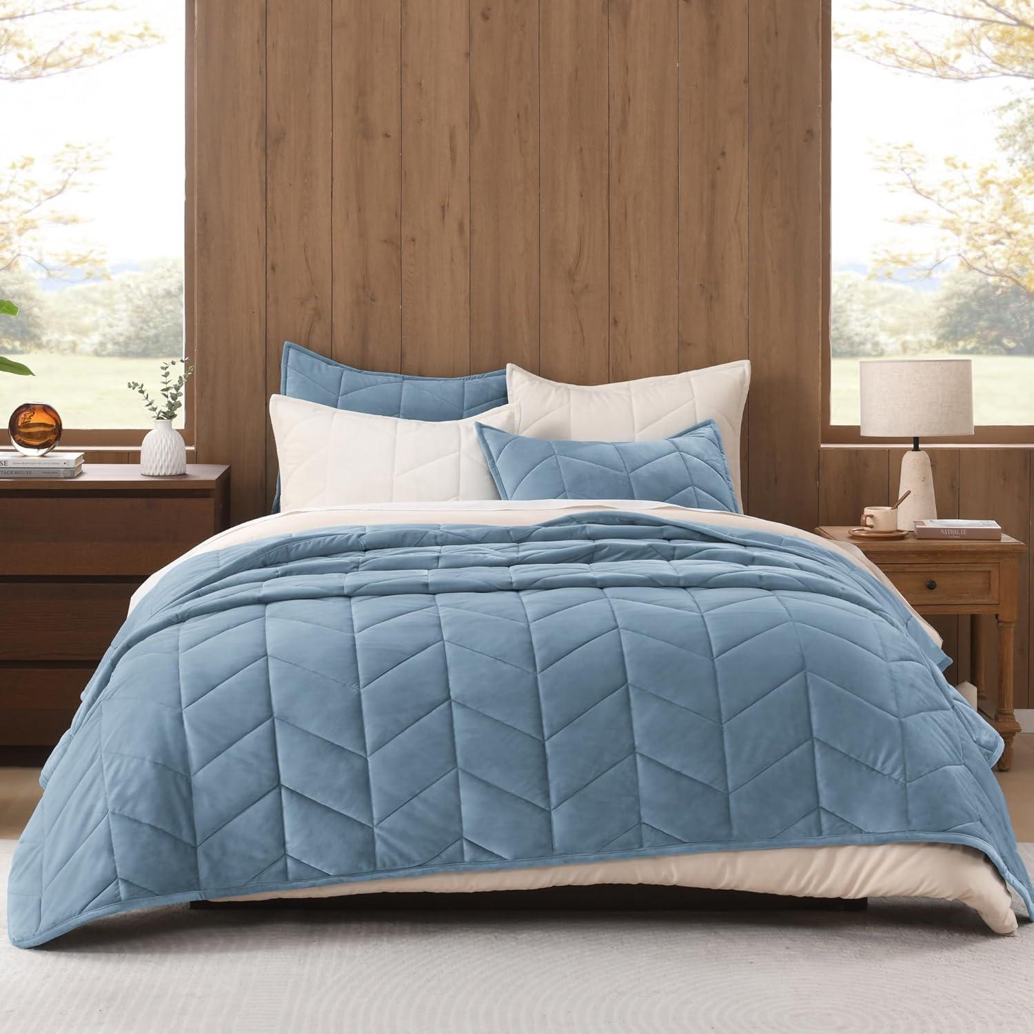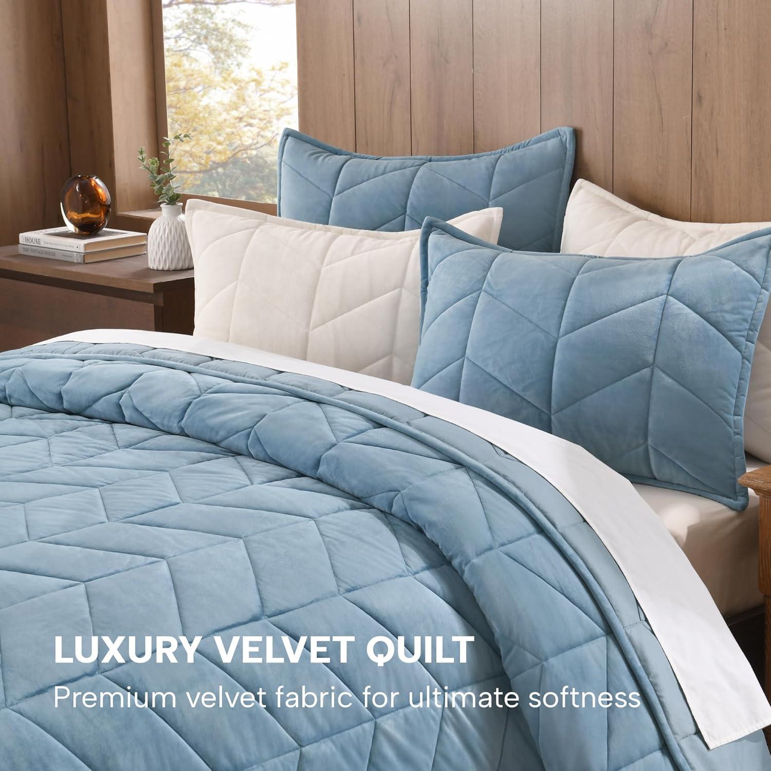 Signature Herringbone Stitching & Nice Decor: The velvet bedspread crafted with precise herringbone quilting lines, adds instant sophistication to your bedroom. The dimensional stitching pairs perfectly with modern, farmhouse, or minimalist decor