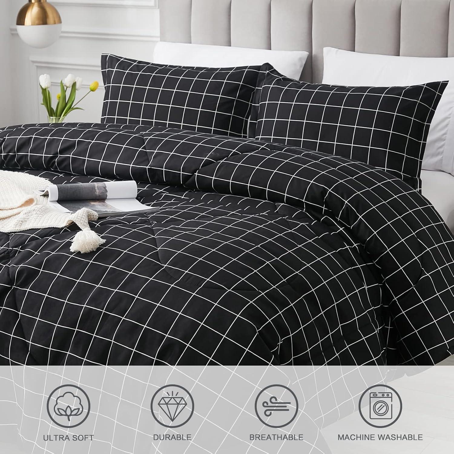 【3Pcs Bedding Comforter Sets You Can Get】: 1 Grid full size comforter (79×90 In) and 2 pillowcases (20×26 In). Totally moderate size down alternative comforters for full bed and modern gifts for teens, boys, girls, men or women.