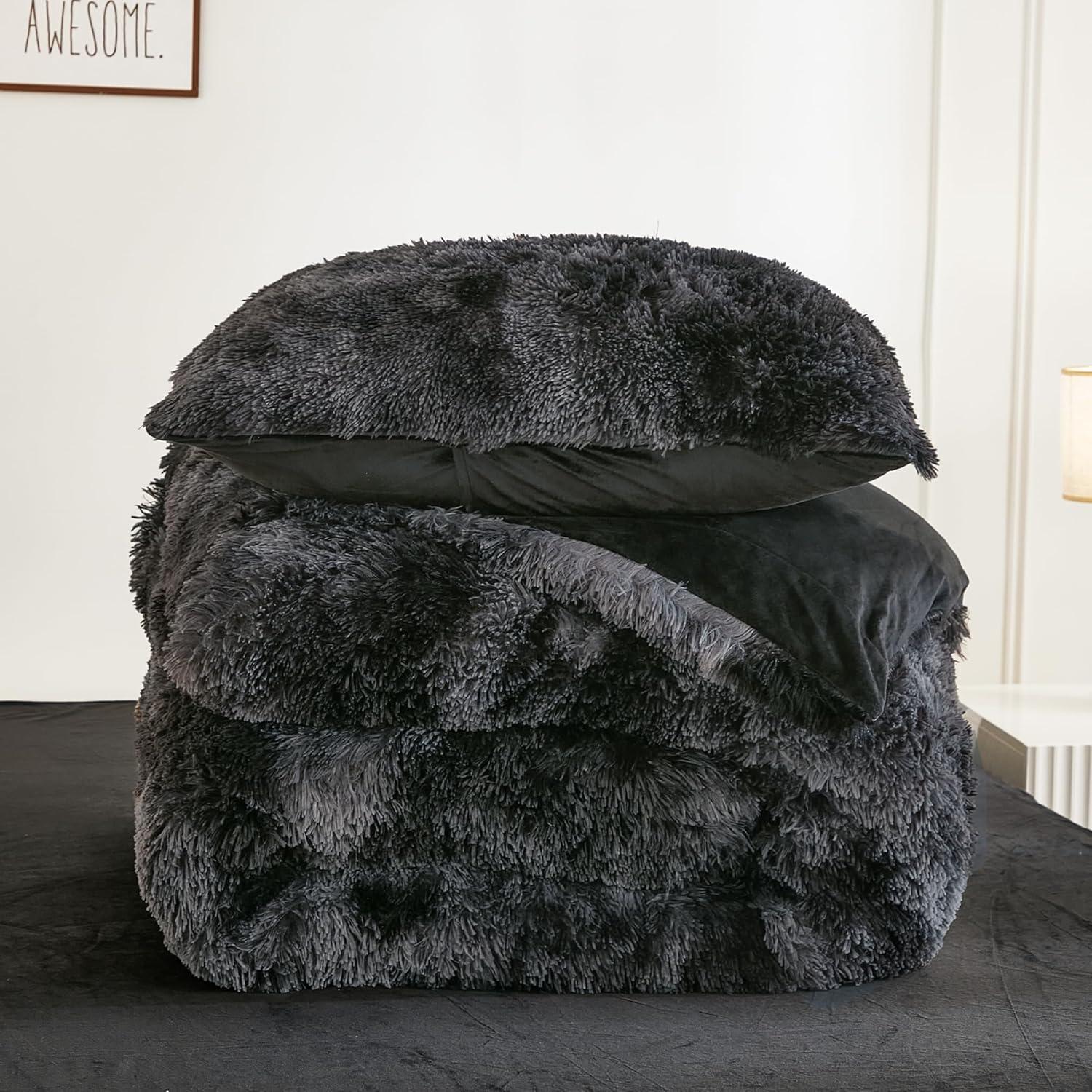 imageAndency Queen Comforter Set Black Fluffy Winter Faux Fur Warm Soft Plush Bedding Comforter Set 1 Velvet Comforter ampamp 2 Pillowcases Fuzzy Thick Heavy Puffy Comforters Bed Set02  Tiedyed Black Grey