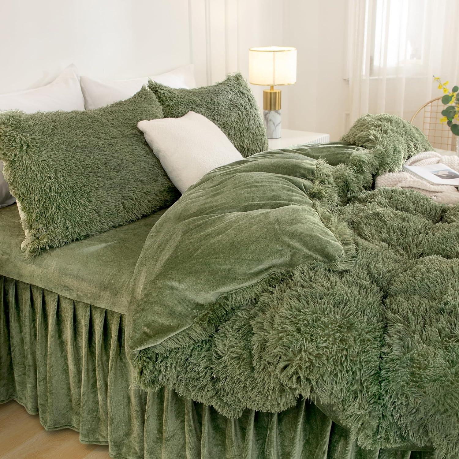 imageAndency Queen Comforter Set Black Fluffy Winter Faux Fur Warm Soft Plush Bedding Comforter Set 1 Velvet Comforter ampamp 2 Pillowcases Fuzzy Thick Heavy Puffy Comforters Bed Set06  Green