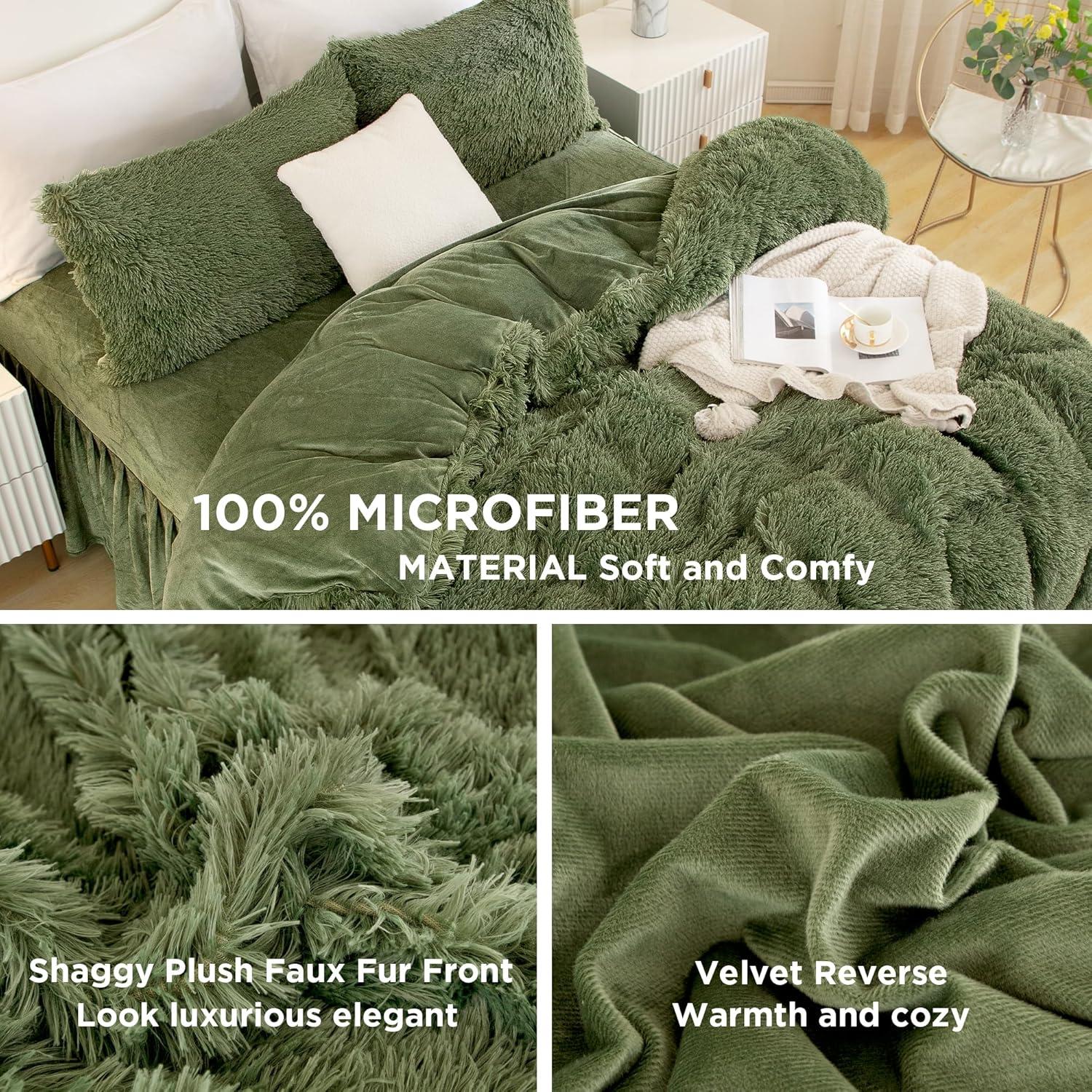 Andency Queen Comforter Set Black, Fluffy Winter Faux Fur Warm Soft Plush Bedding Comforter Set (1 Velvet Comforter & 2 Pillowcases), Fuzzy Thick Heavy Puffy Comforters Bed Set(06 – Green)