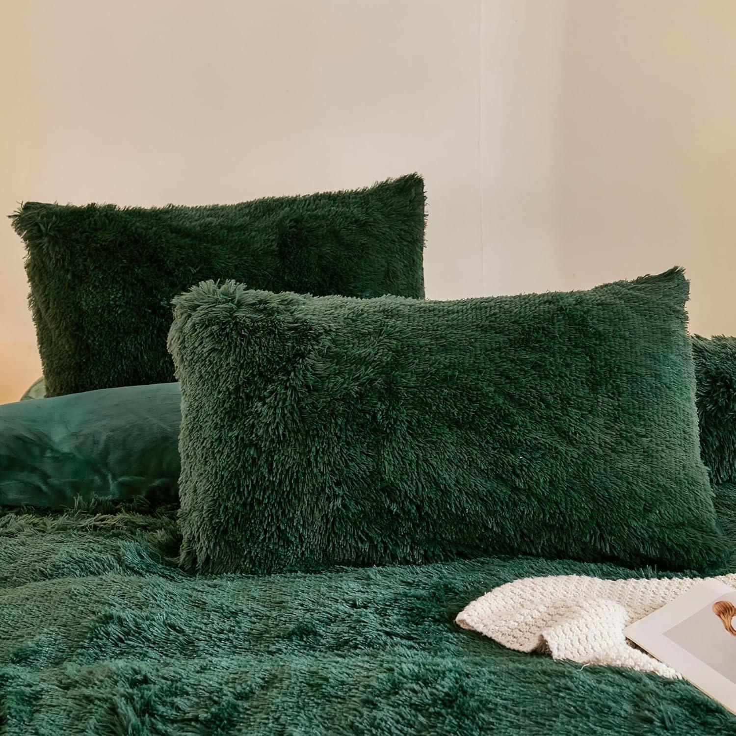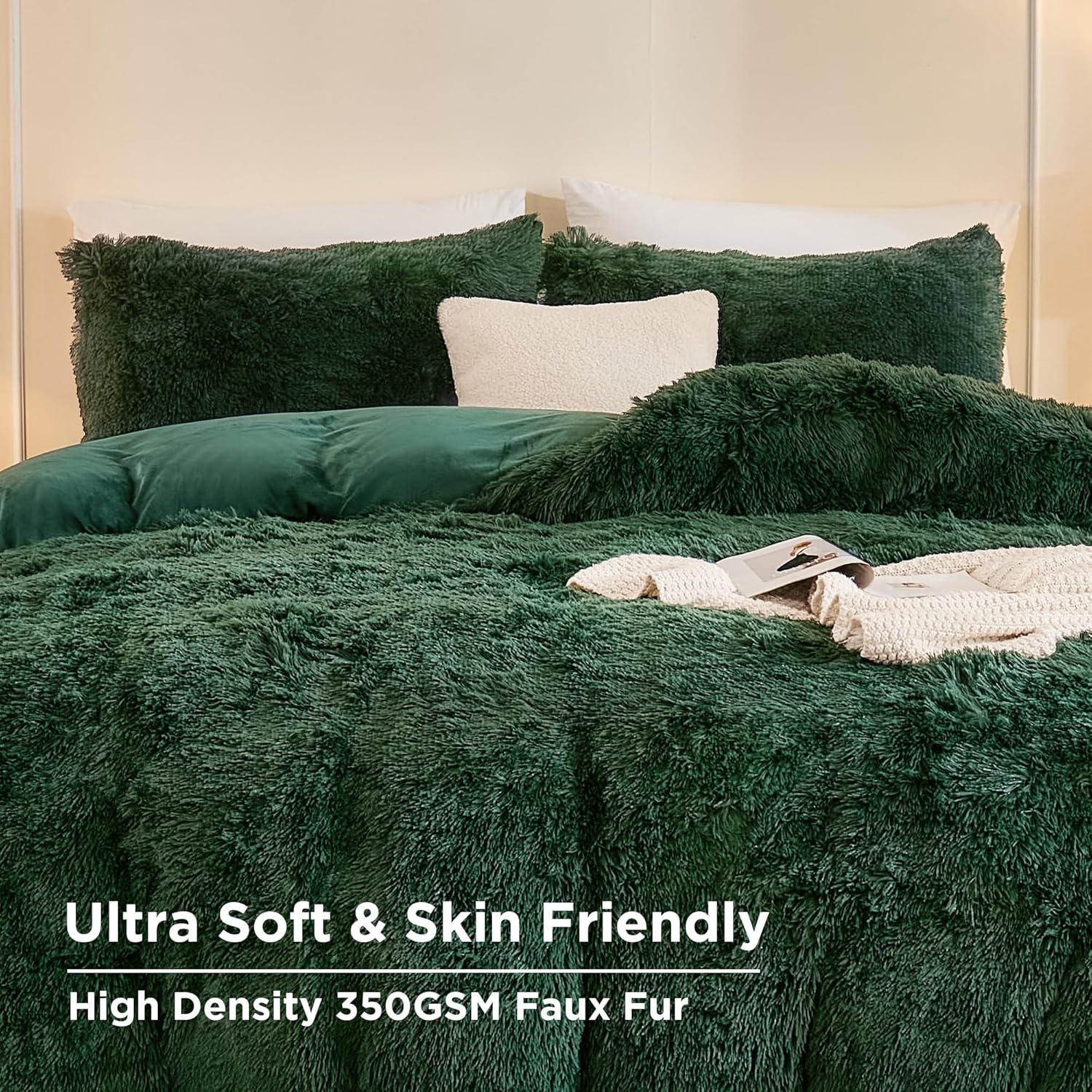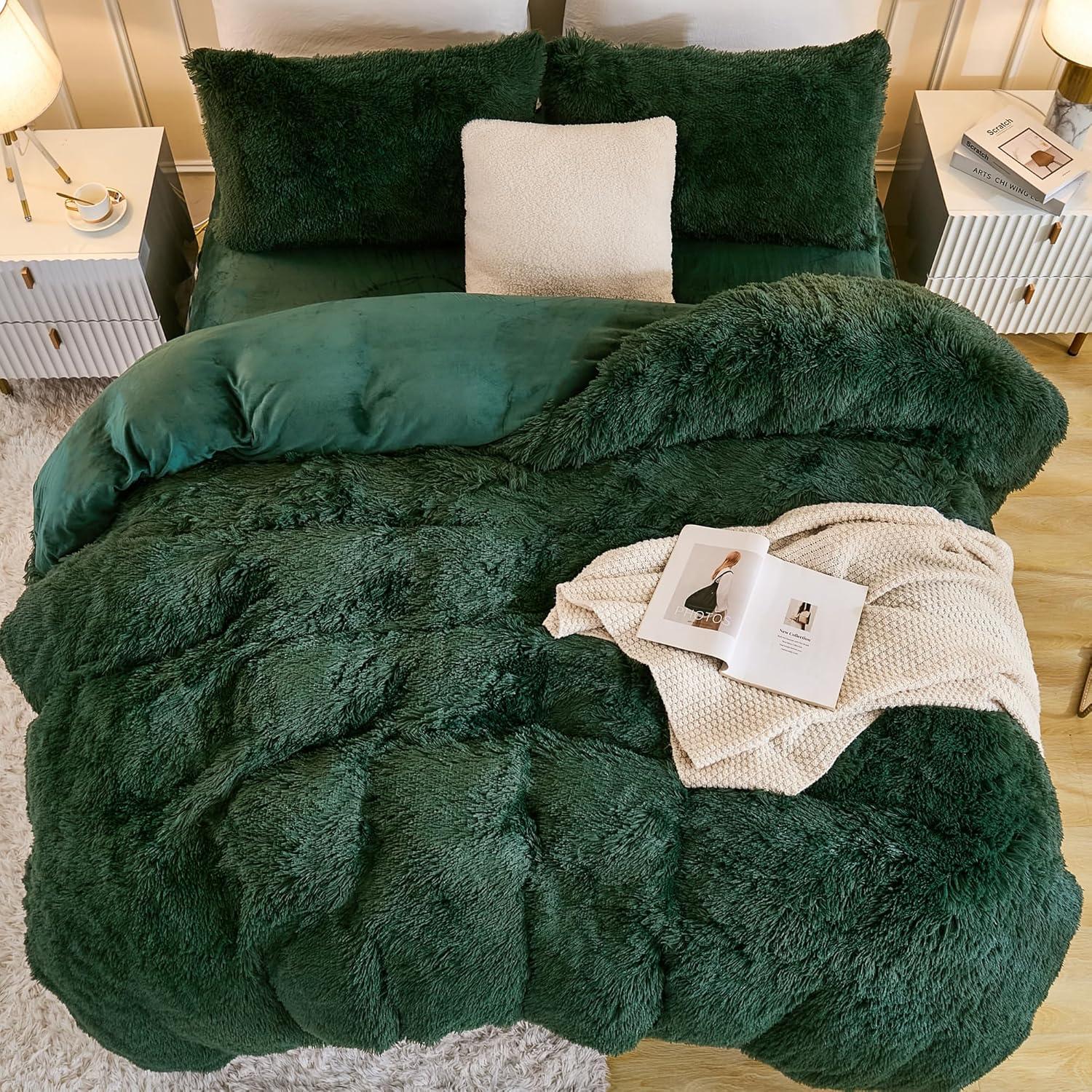 Andency Queen Comforter Set Black, Fluffy Winter Faux Fur Warm Soft Plush Bedding Comforter Set (1 Velvet Comforter & 2 Pillowcases), Fuzzy Thick Heavy Puffy Comforters Bed Set(09 – Emerald Green)