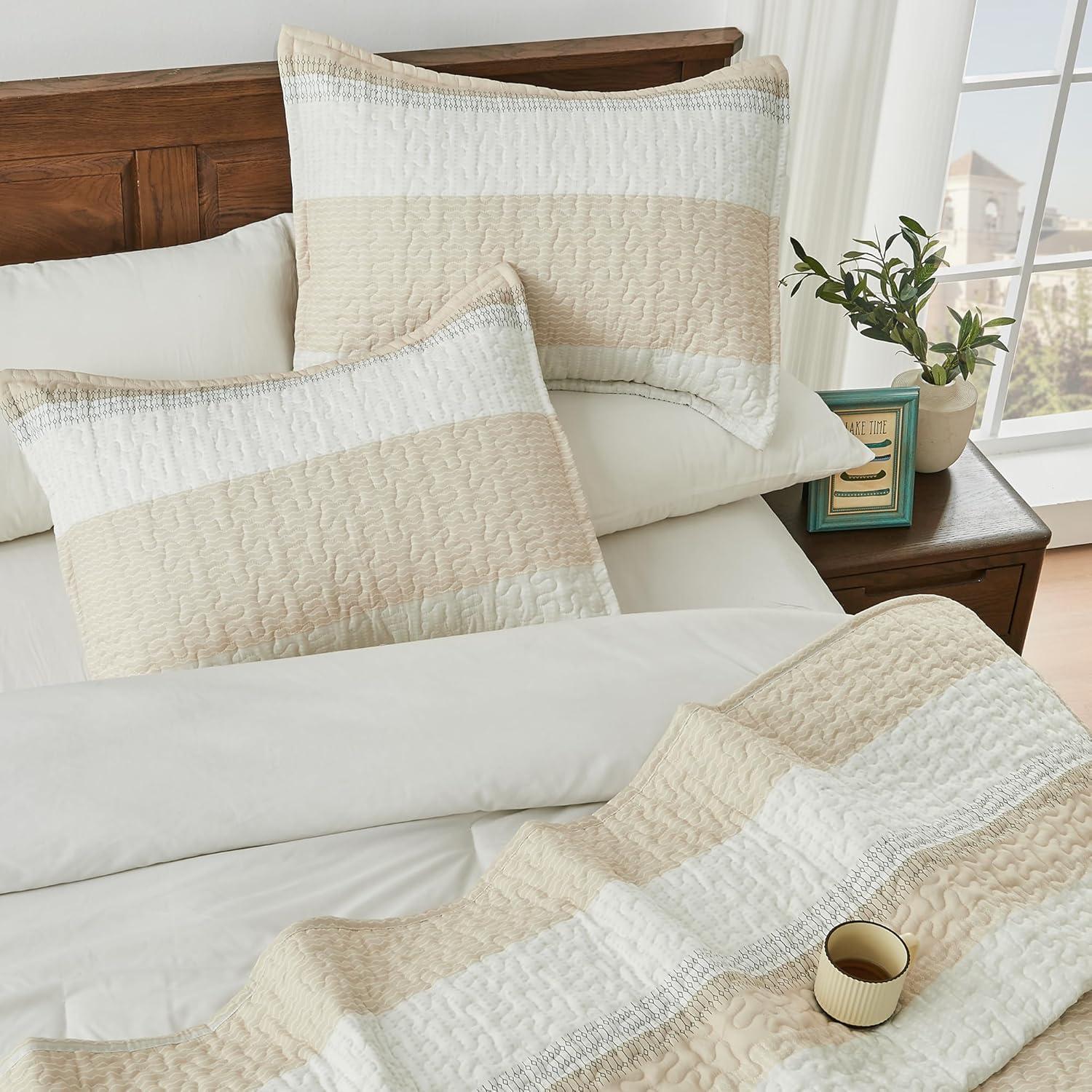 [Striped Quilt] Andency stripe quilt set is designed in beige and white patchwork stripes, the beige stripes pattern makes the bedspread cover look more elegant and modern. It is never out of date. An beige stripe quilt will also give your bedroom a stylish decoration, and simple lines tend to be neutral and can easily bring a relaxed mood. It will be suitable and upscale for any room in your house, such as a bedroom, guest room, children's room, vacation room