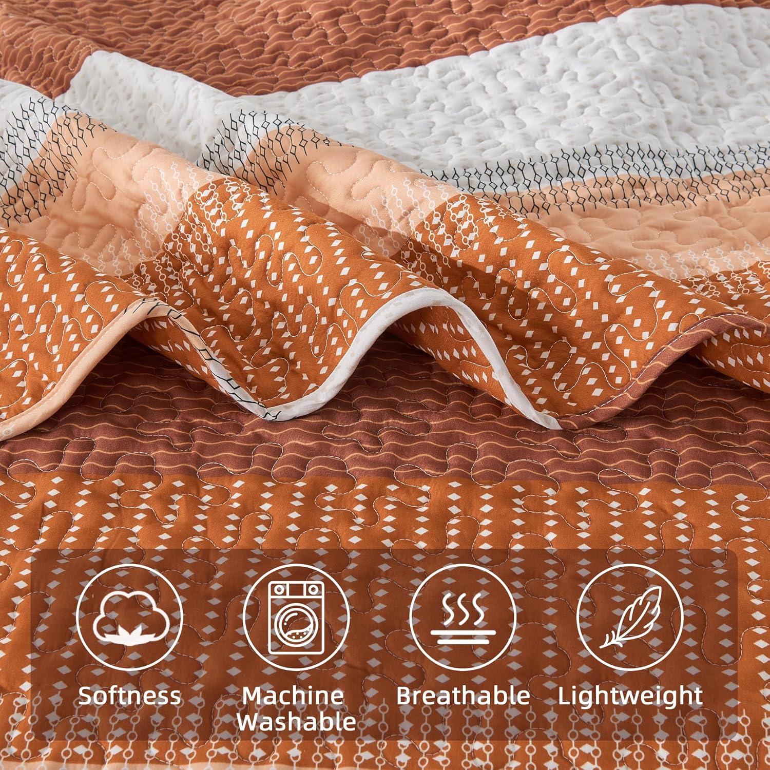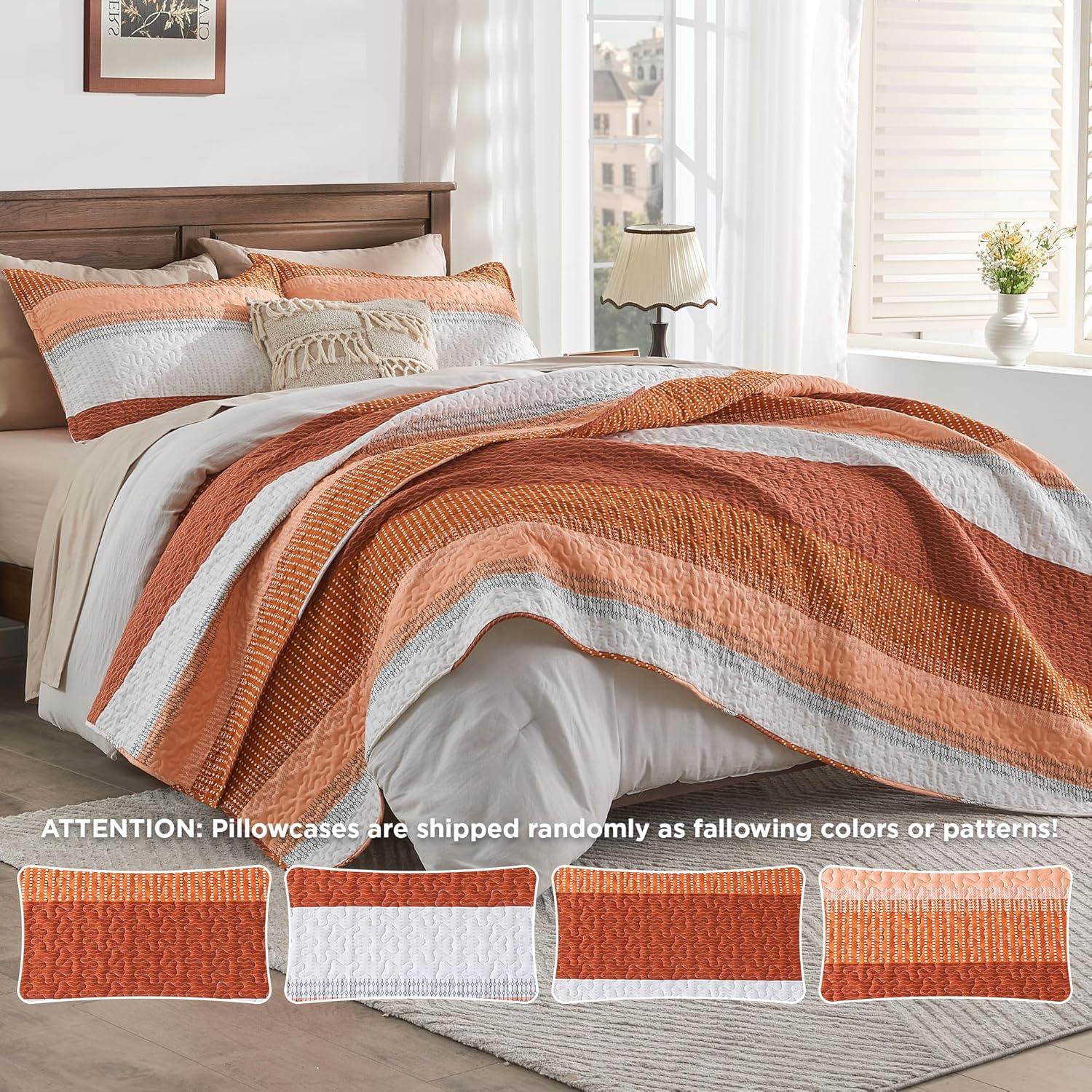 Andency Queen Quilt Bedding Set Beige, 3 Pieces Patchwork Beige Striped Ultra Soft Lightweight Bedspreads, Coverlets Set with 2 Pillow Shams for All Seasons (90"x96")(10 - Orange)
