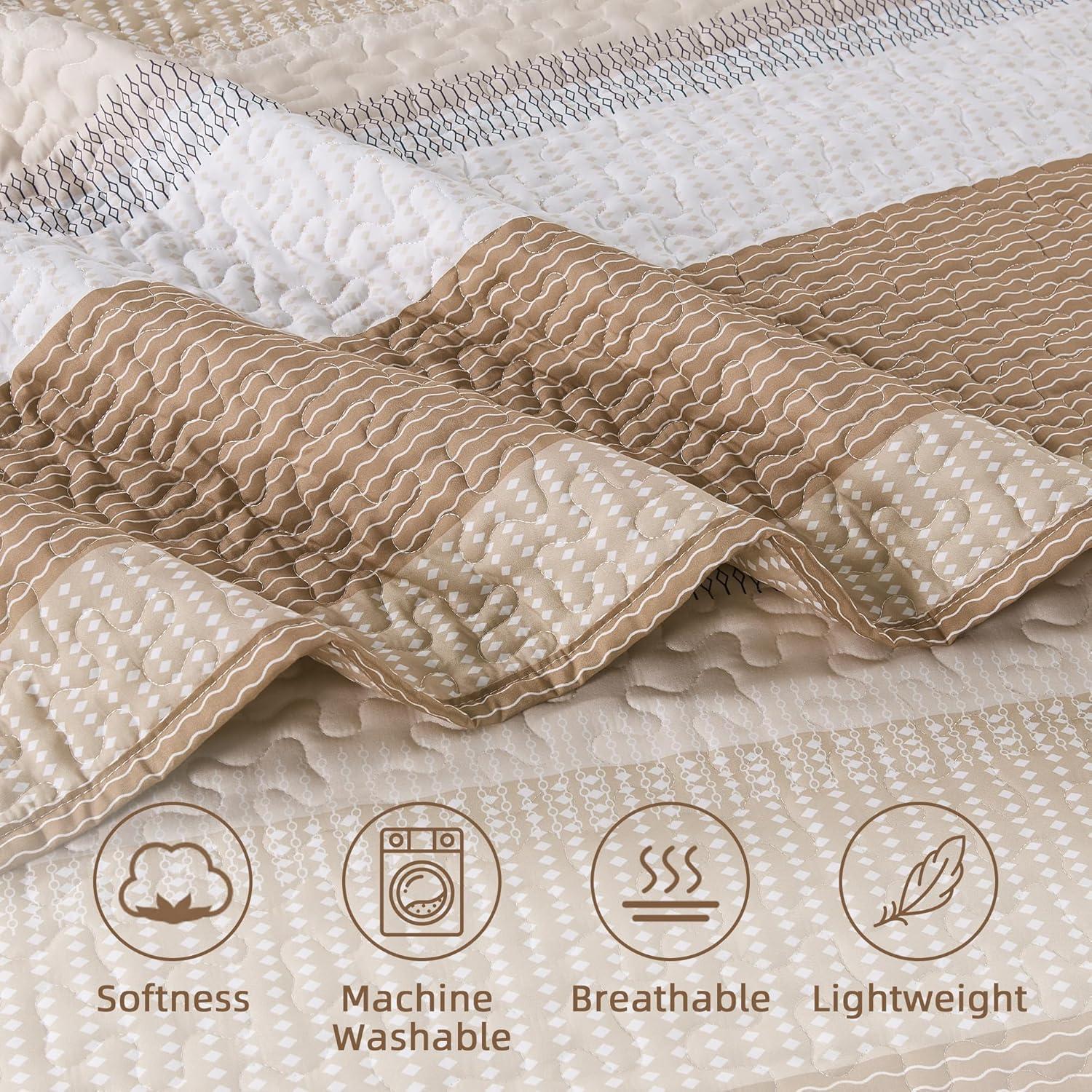 Andency Queen Quilt Bedding Set Beige, 3 Pieces Patchwork Beige Striped Ultra Soft Lightweight Bedspreads, Coverlets Set with 2 Pillow Shams for All Seasons (90"x96")(12 - Taupe)