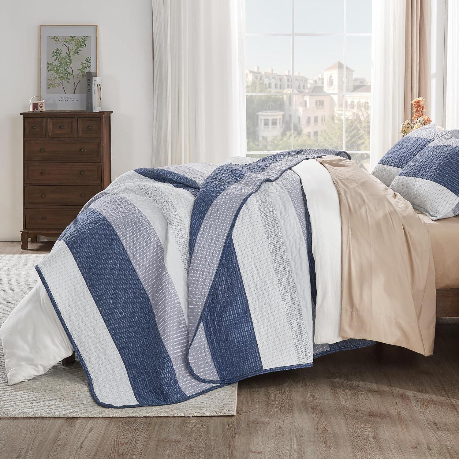 [Soft Bedspread Sets] Andency striped quilt set is filled with high-quality microfiber. Compared with other materials, it is softer and more breathable. The premium microfiber bed cover is very soft and comfortable, it's so comfy like sleeping in a cloud. Our striped coverlet can bring you a high-density smooth surface, super soft, and makes you never want to leave your bed. Enjoying a brand new day starts with a perfect sleep