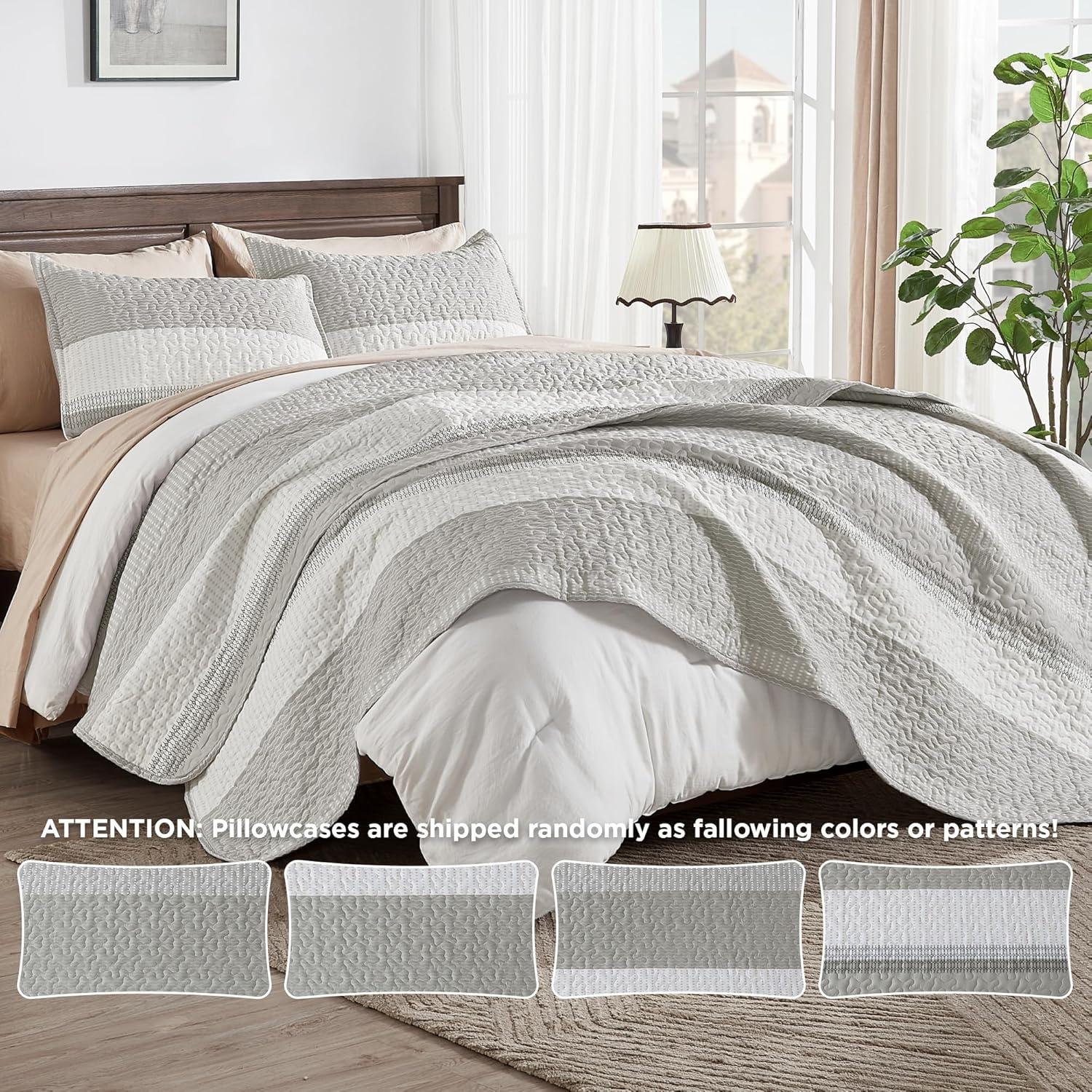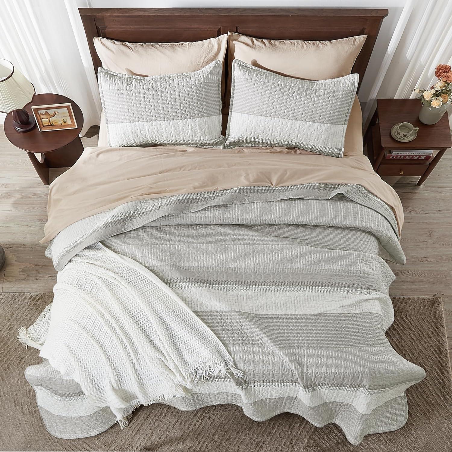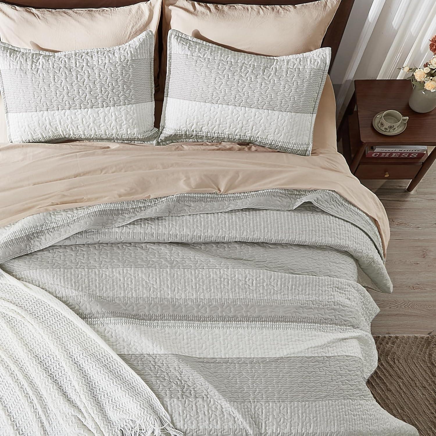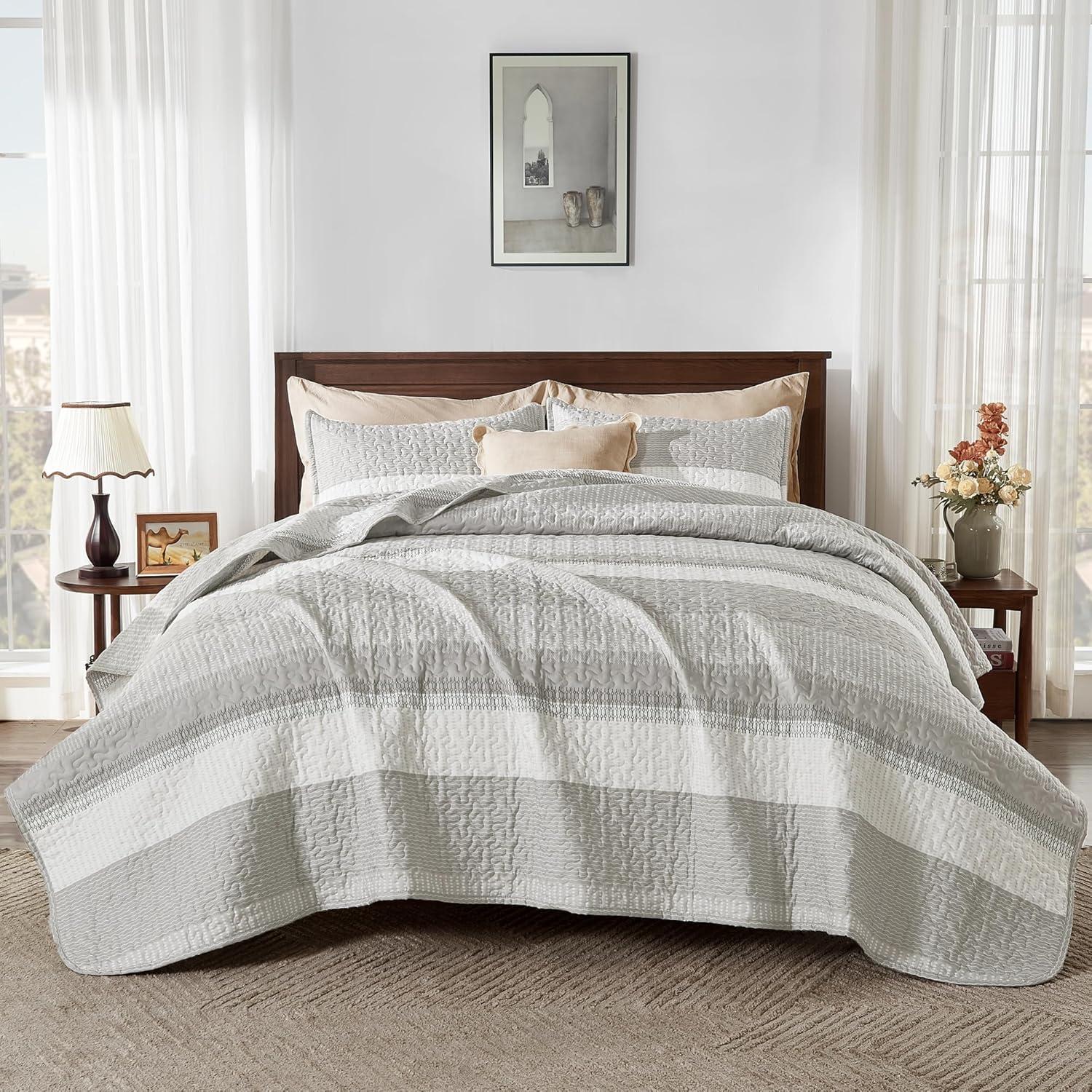 [Soft Bedspread Sets] Andency striped quilt set is filled with high-quality microfiber. Compared with other materials, it is softer and more breathable. The premium microfiber bed cover is very soft and comfortable, it's so comfy like sleeping in a cloud. Our striped coverlet can bring you a high-density smooth surface, super soft, and makes you never want to leave your bed. Enjoying a brand new day starts with a perfect sleep