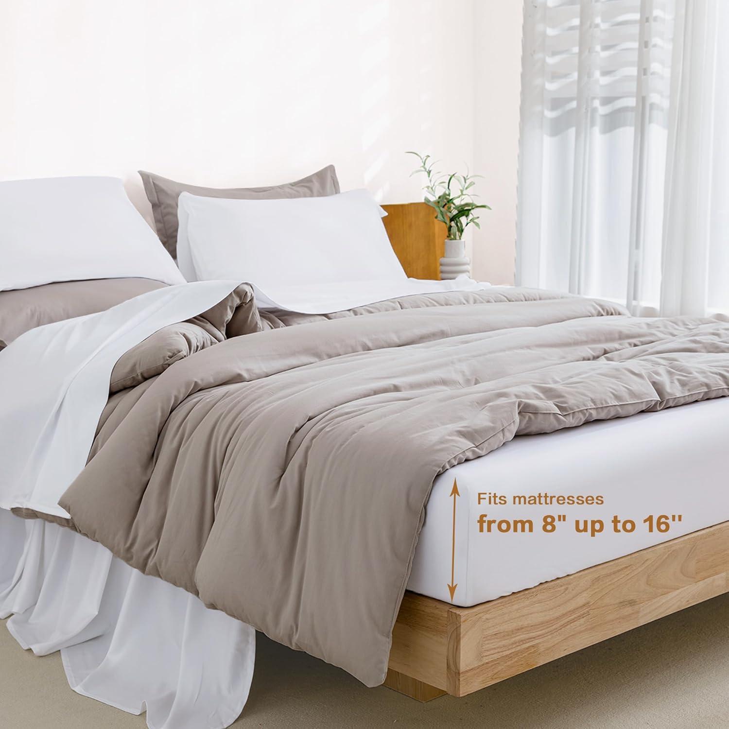 Deep Pocket Design: The fitted sheet features a deep pocket design that fits mattresses up to 16 inches. The sheet is surrounded by an elastic band to ensure that the sheet fits snugly on the mattress and will not shift with changes in sleeping position.