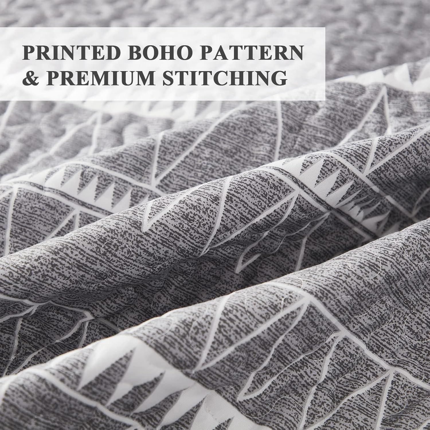 【Exquisite Workmanship & Economically Reversible】: Andency grey bohemian quilt set adopts excellent stitching technology and the same wiring method on both sides which prevents the fiberfill shifting and lets it reversible at the same time. You can get a reversible one with double use and the durable material will not fade and shrink after washing, allowing it for long years of use.