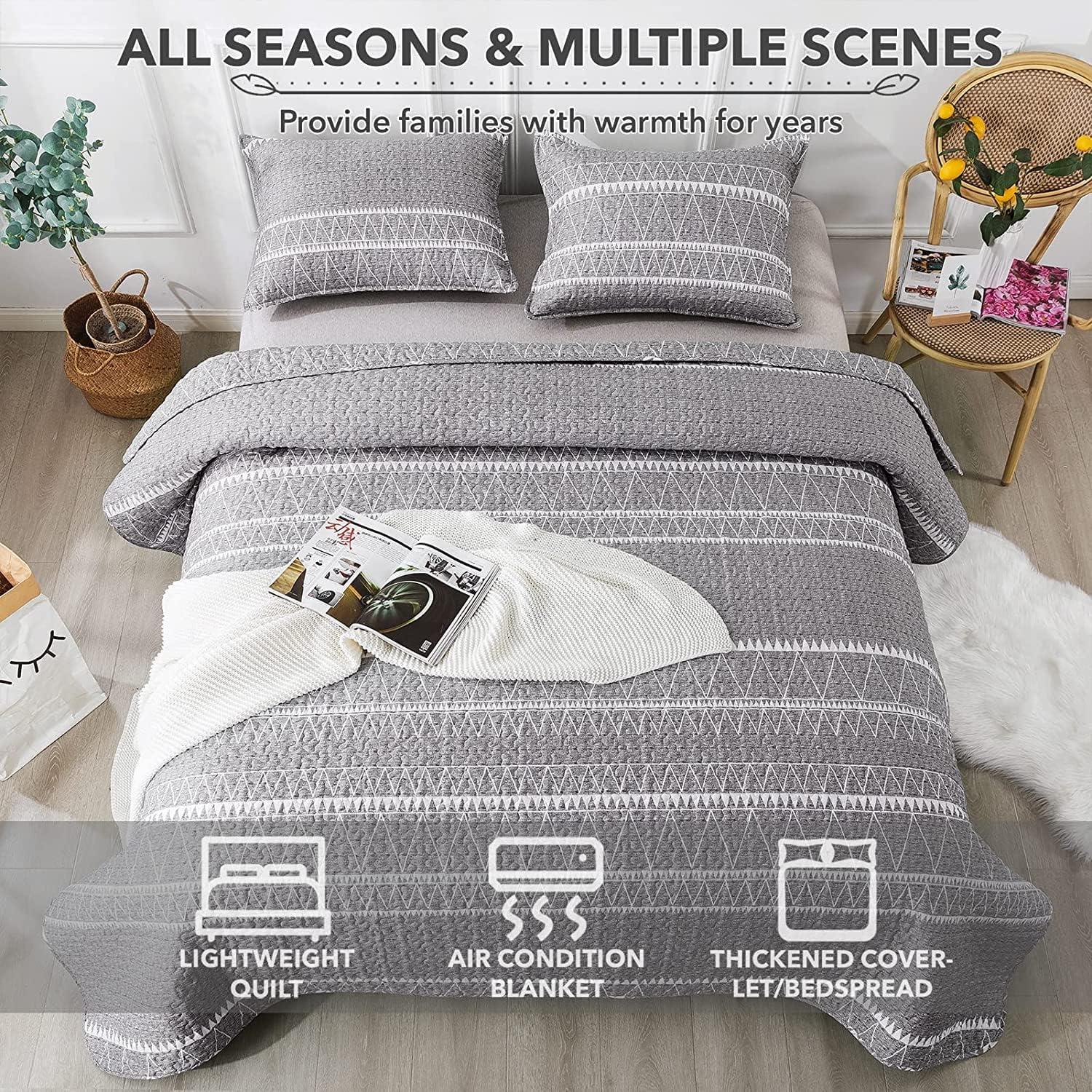 【Ultra-soft and Lightweight】: Andency grey quilt set is made of 100% premium quality microfiber. The material is stitched in a multilayered construction that creates lightweight, durable quilts for use year-round.
