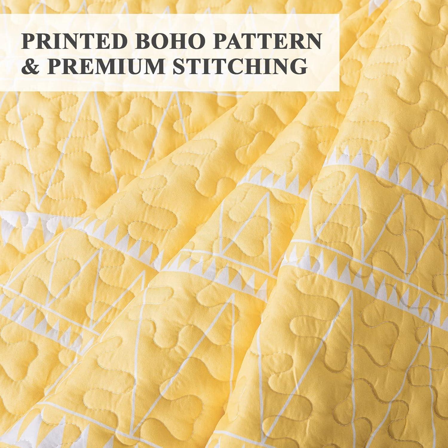 imageAndency Quilt King Size Set Grey 106x96 Inch 3 Pieces1 Striped Boho Printed Quilt and 2 Pillowcases Bohemian Summer Lightweight Reversible Microfiber Bedspread Coverlet Sets08  Yellow  Printed Pattern