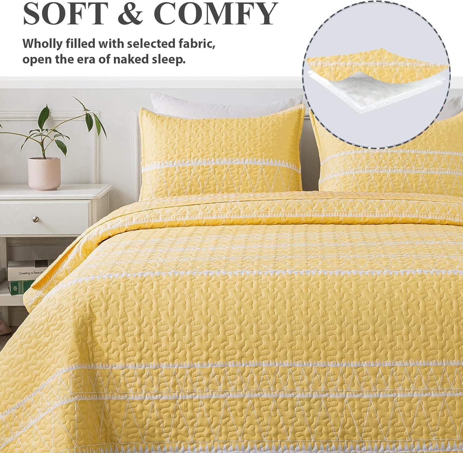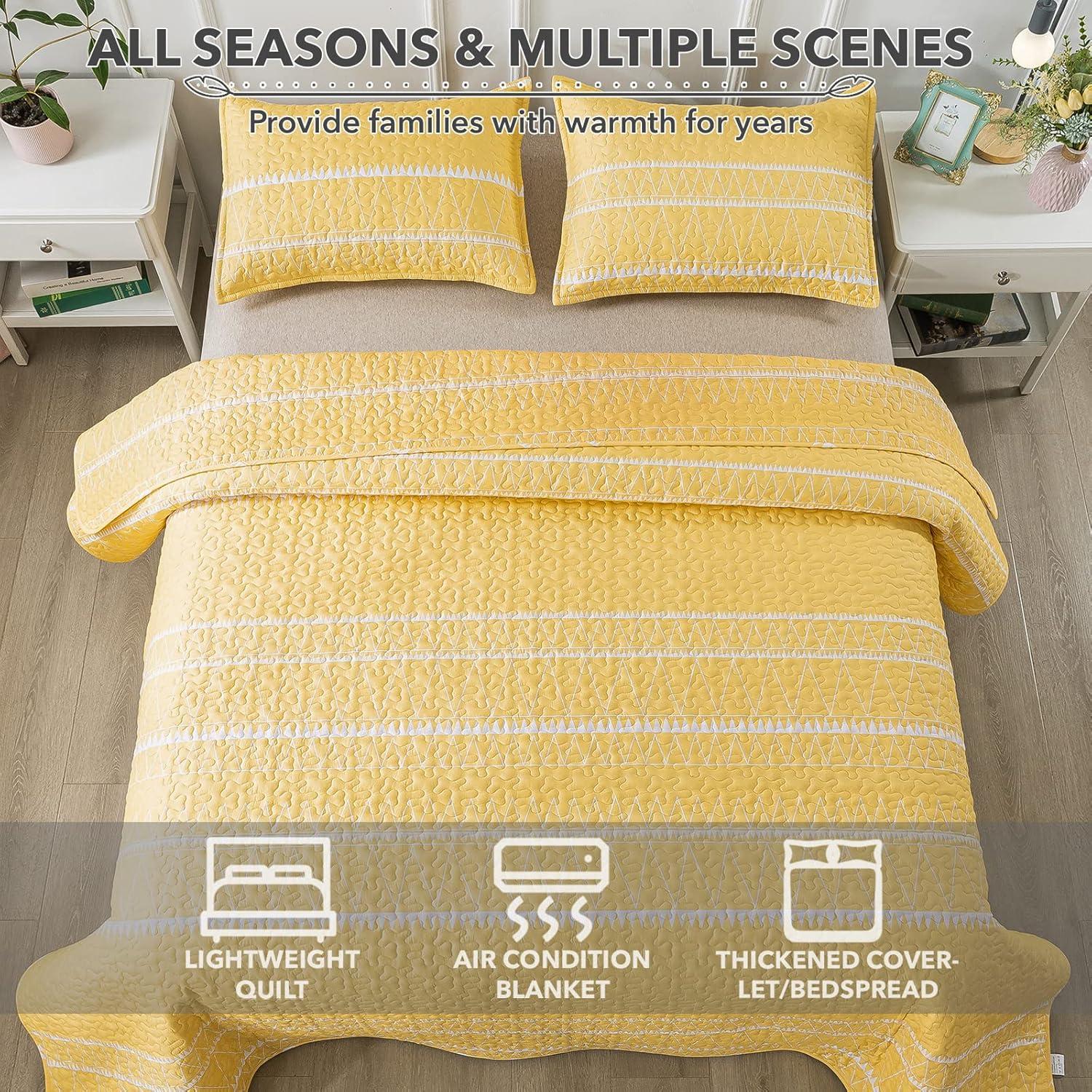 Andency Quilt King Size Set Grey (106×96 Inch), 3 Pieces(1 Striped Boho Printed Quilt and 2 Pillowcases), Bohemian Summer Lightweight Reversible Microfiber Bedspread Coverlet Sets(08 – Yellow & Printed Pattern)