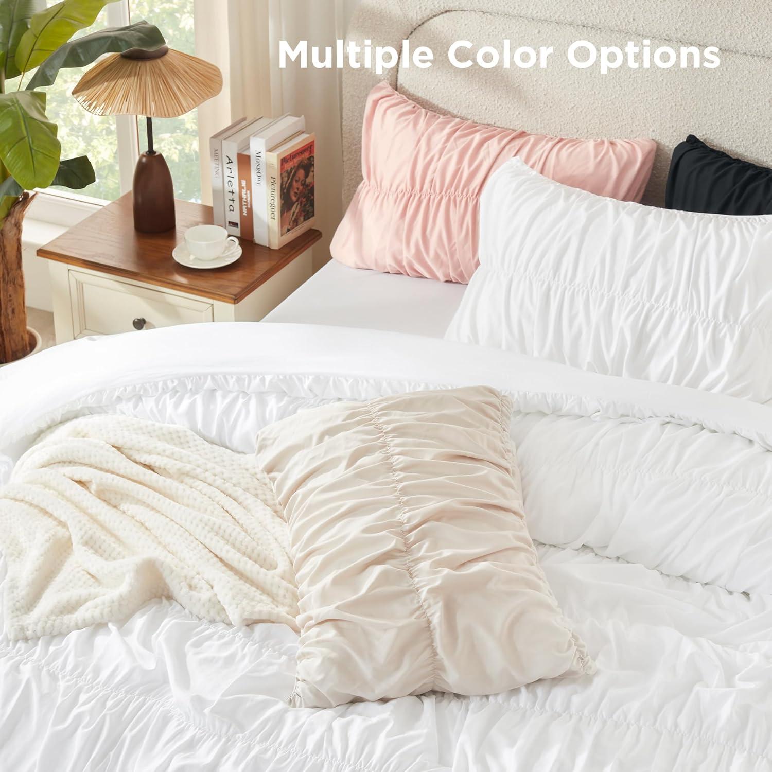 Soft and Cozy Fabric: The fluffy ruched comforter set is covered with 100% high-quality polyester fiber, which has the characteristics of softness, smoothness, breathability, and sweat absorption. Its thickness is sufficient to keep warm and suitable for use throughout the year. At night, it's like snuggling up in fluffy clouds, providing a comfortable sleeping experience and reducing fatigue throughout the day