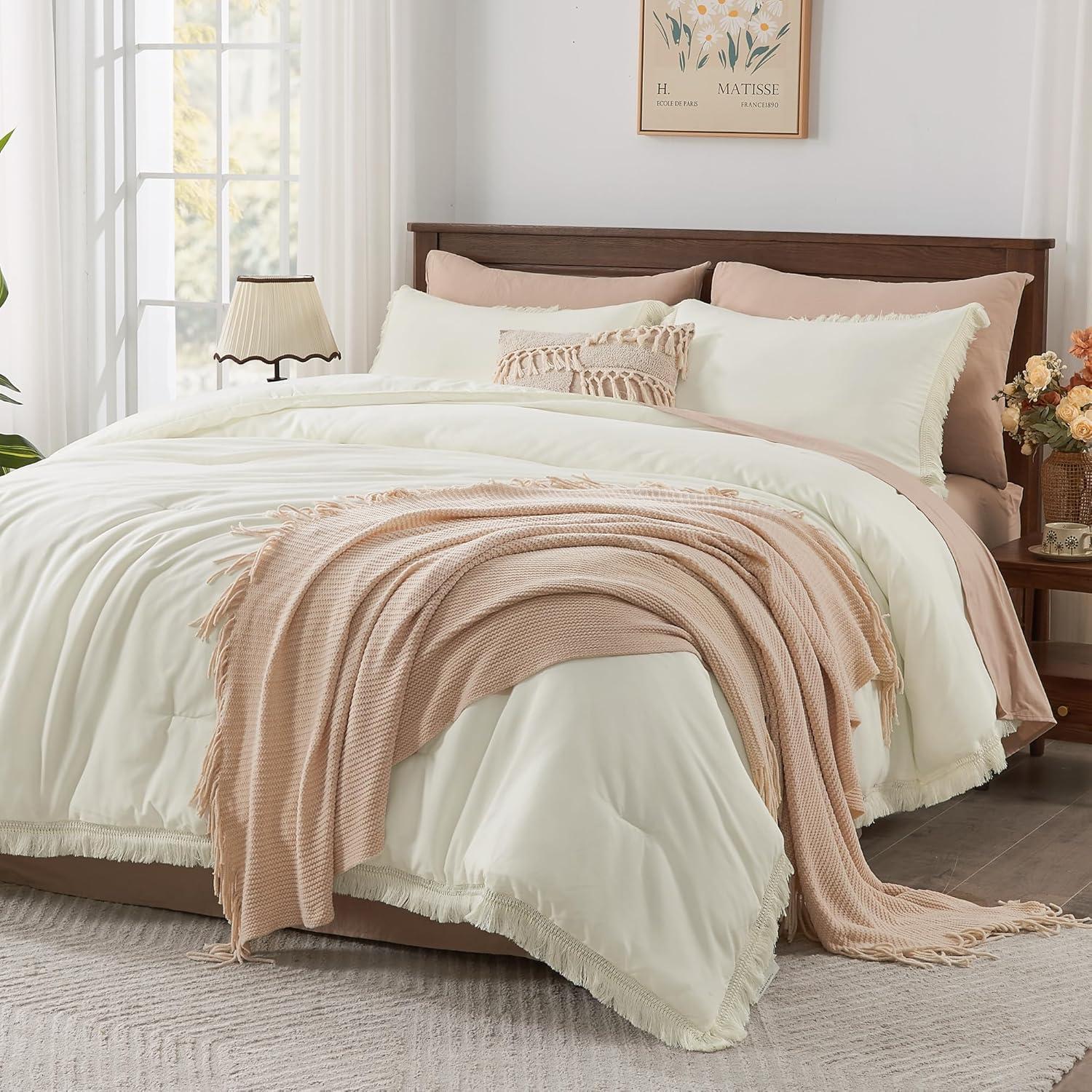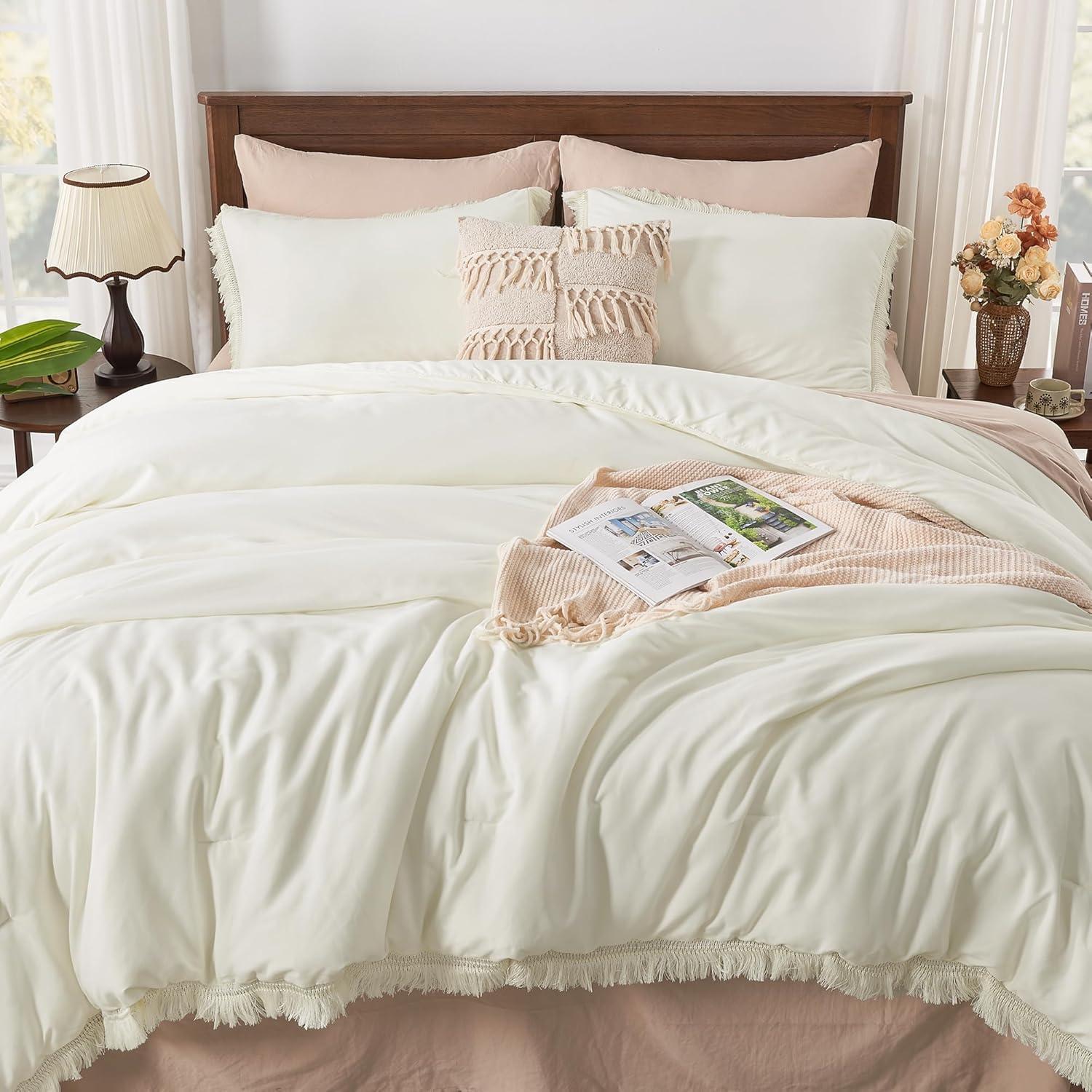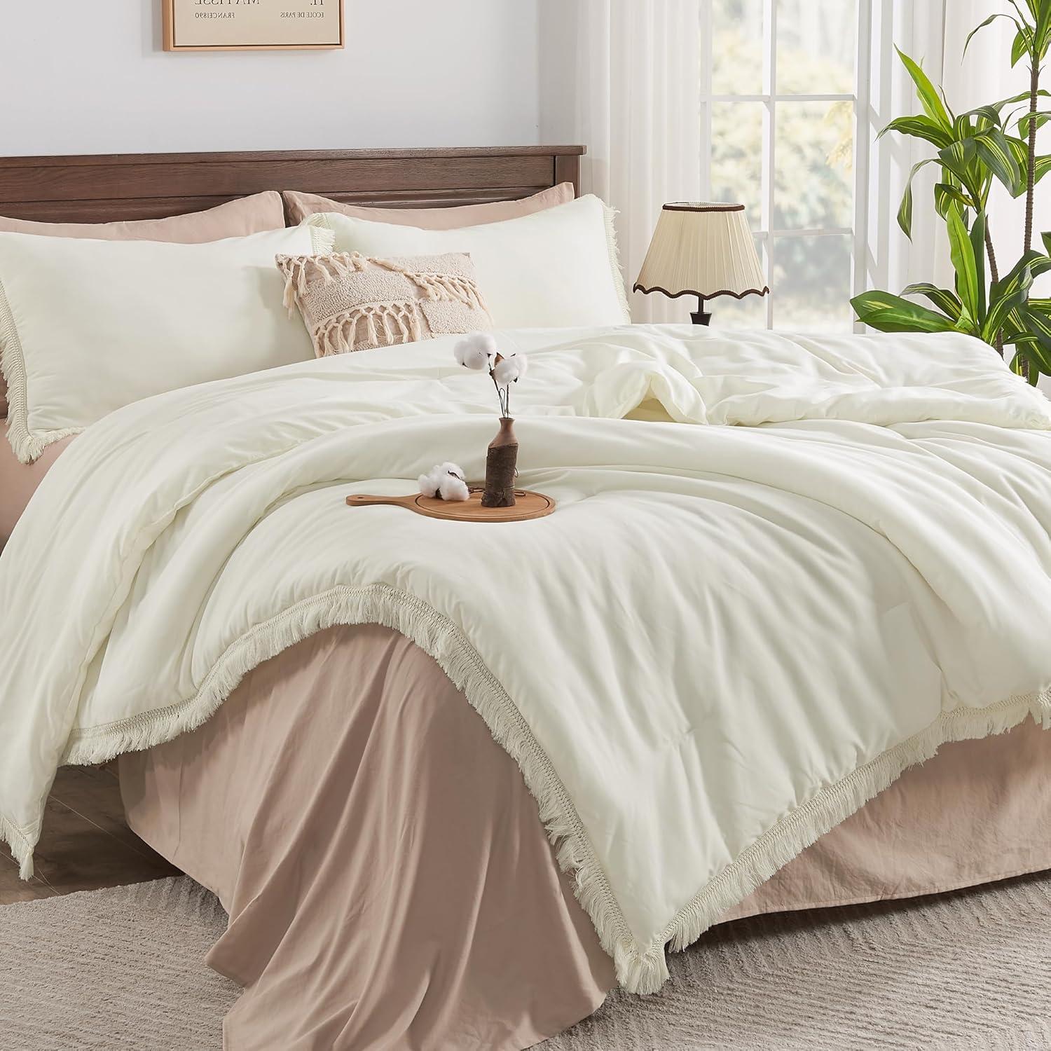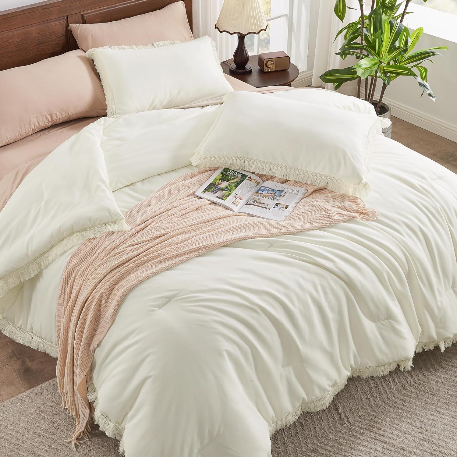 What You Will Get: 3 Pieces Comforter Set Includes: 1 Comforter and matching 2 Tassel Pillowcases. Please allow a 1-2 inch actual error. Warm Tips: Our boho fringe bedding set is packed in a vacuum bag, there might be some wrinkles when you receive it. You can put it to sunlight and pat it gently, then it will fluff up nicely after hours