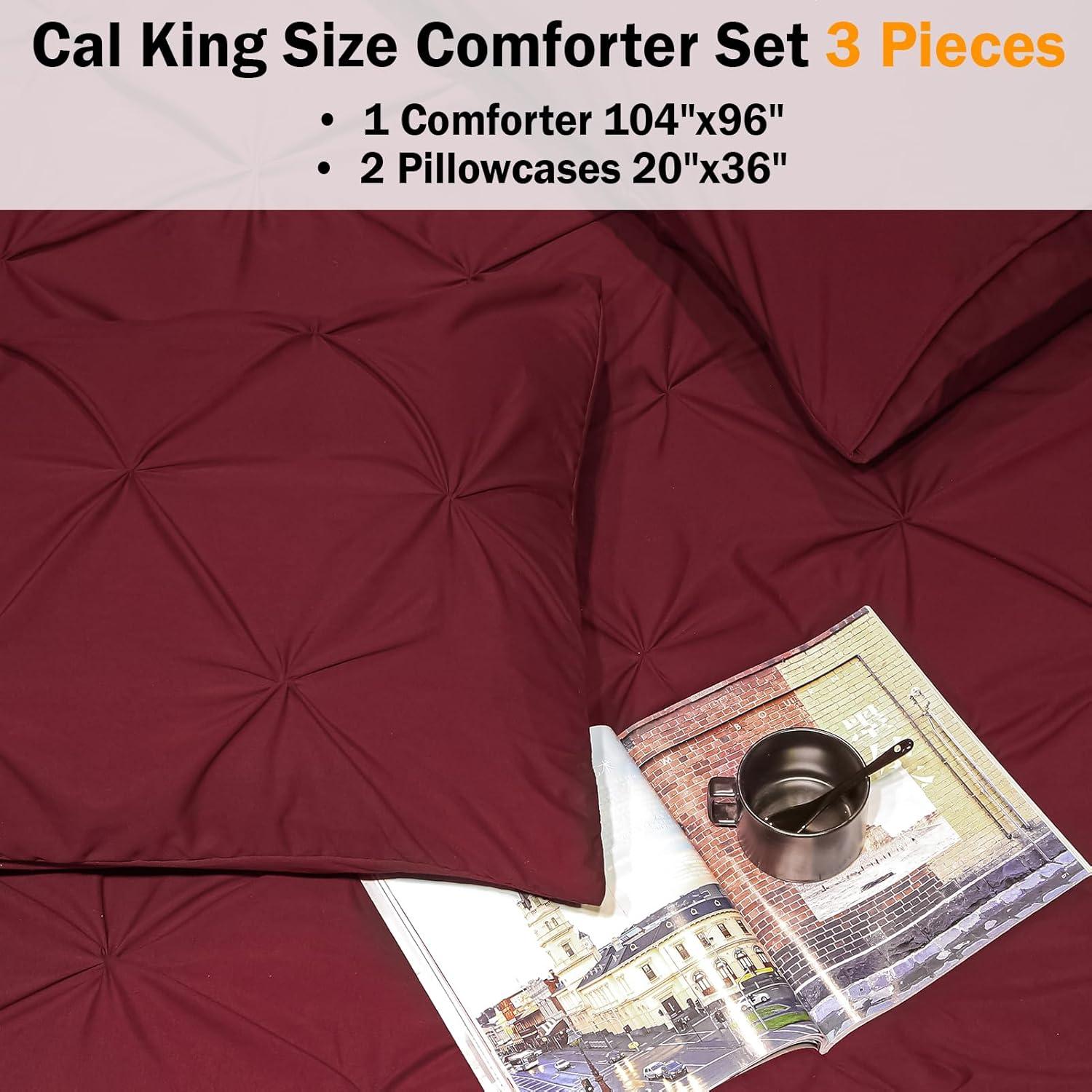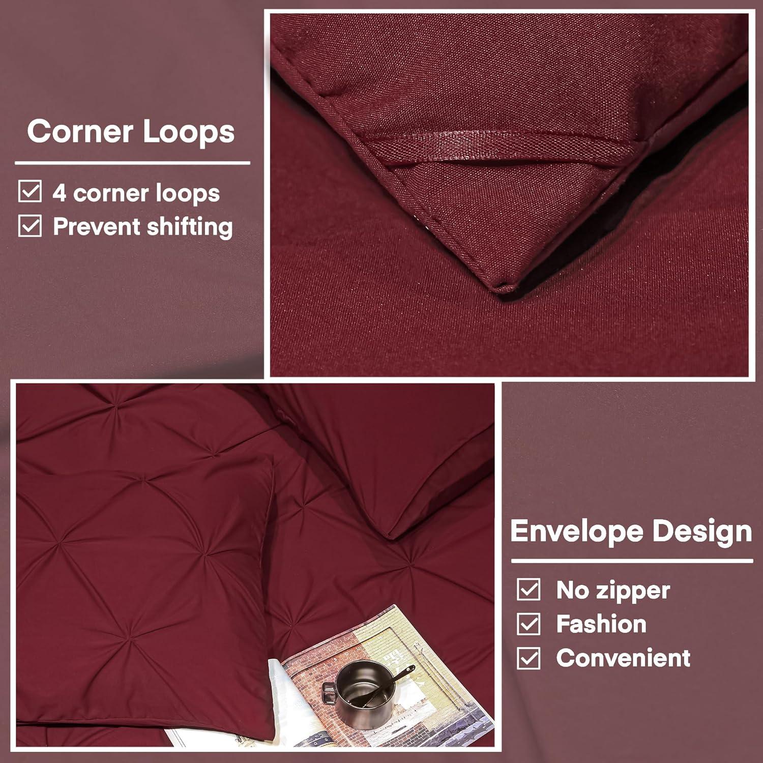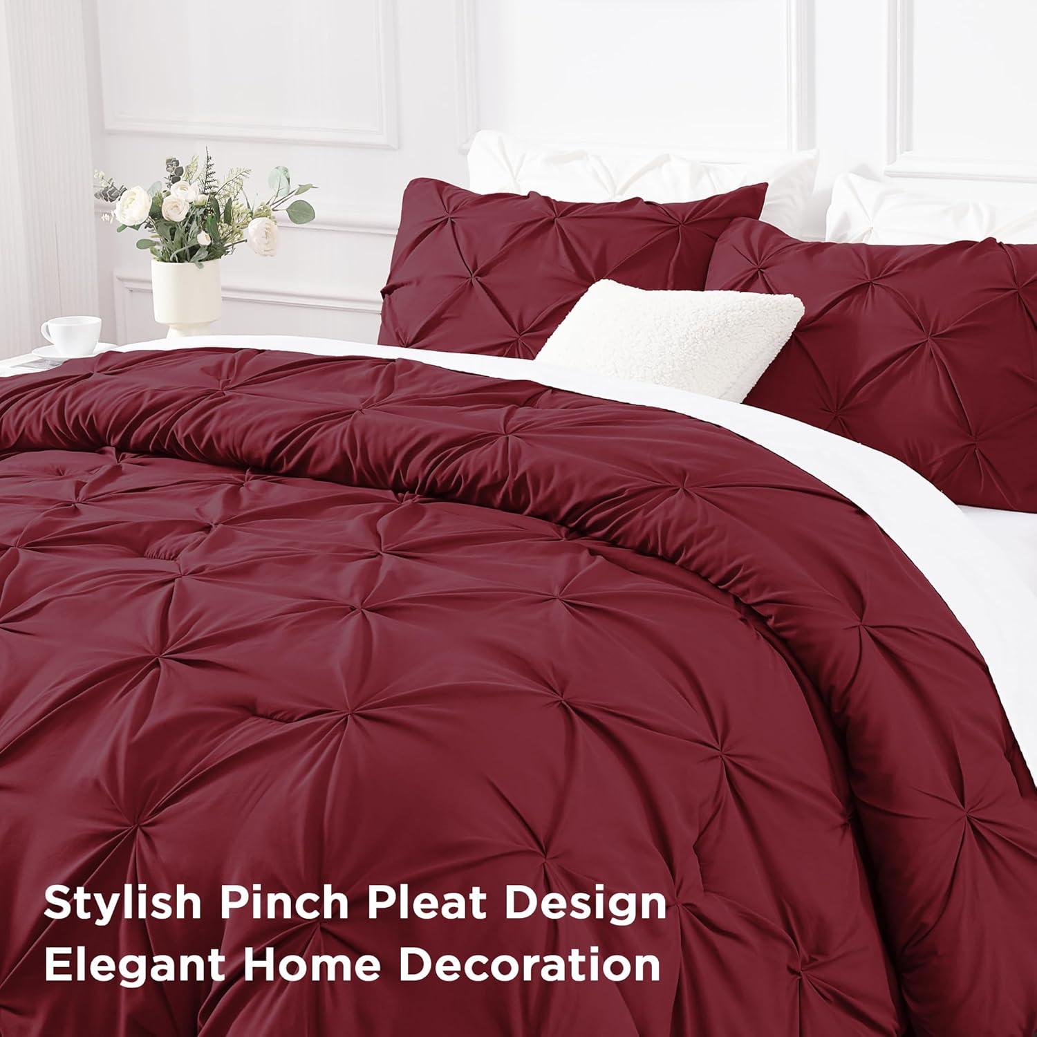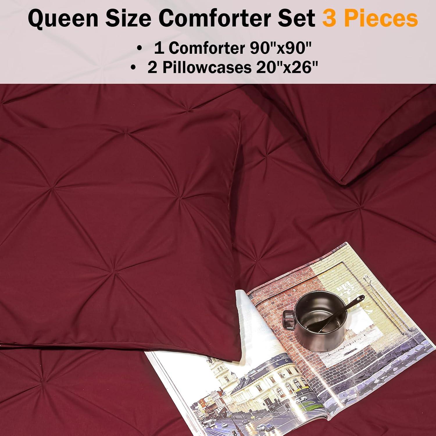 Andency White Queen Comforter Set(90x90Inch), 3 Pieces Cute Pinch Pleat Bedding Comforters & Sets for Queen Bed, Soft Lightweight Fluffy Down Alternative All Season Bed Set(Burgundy)