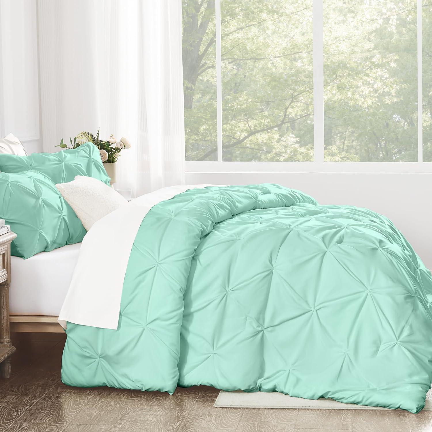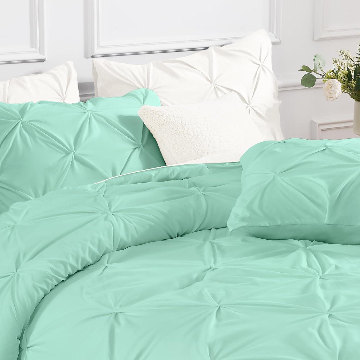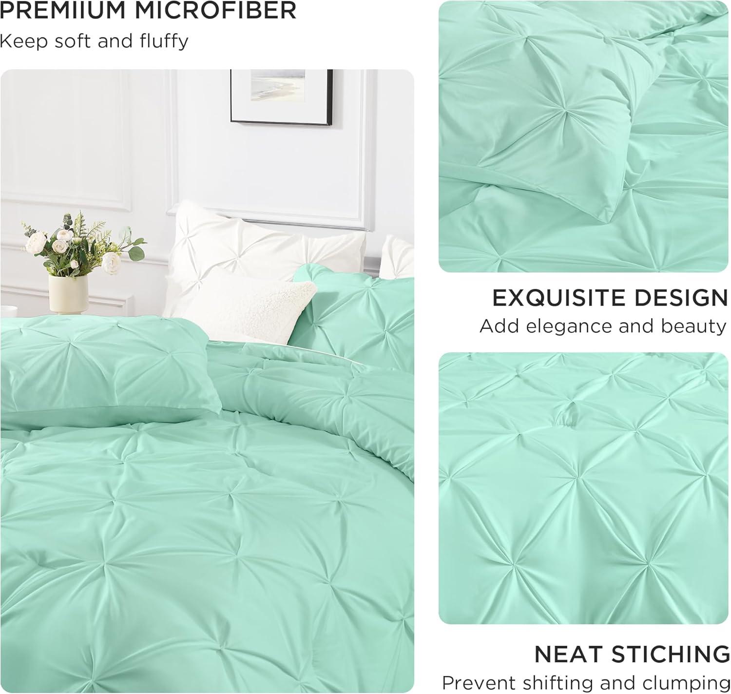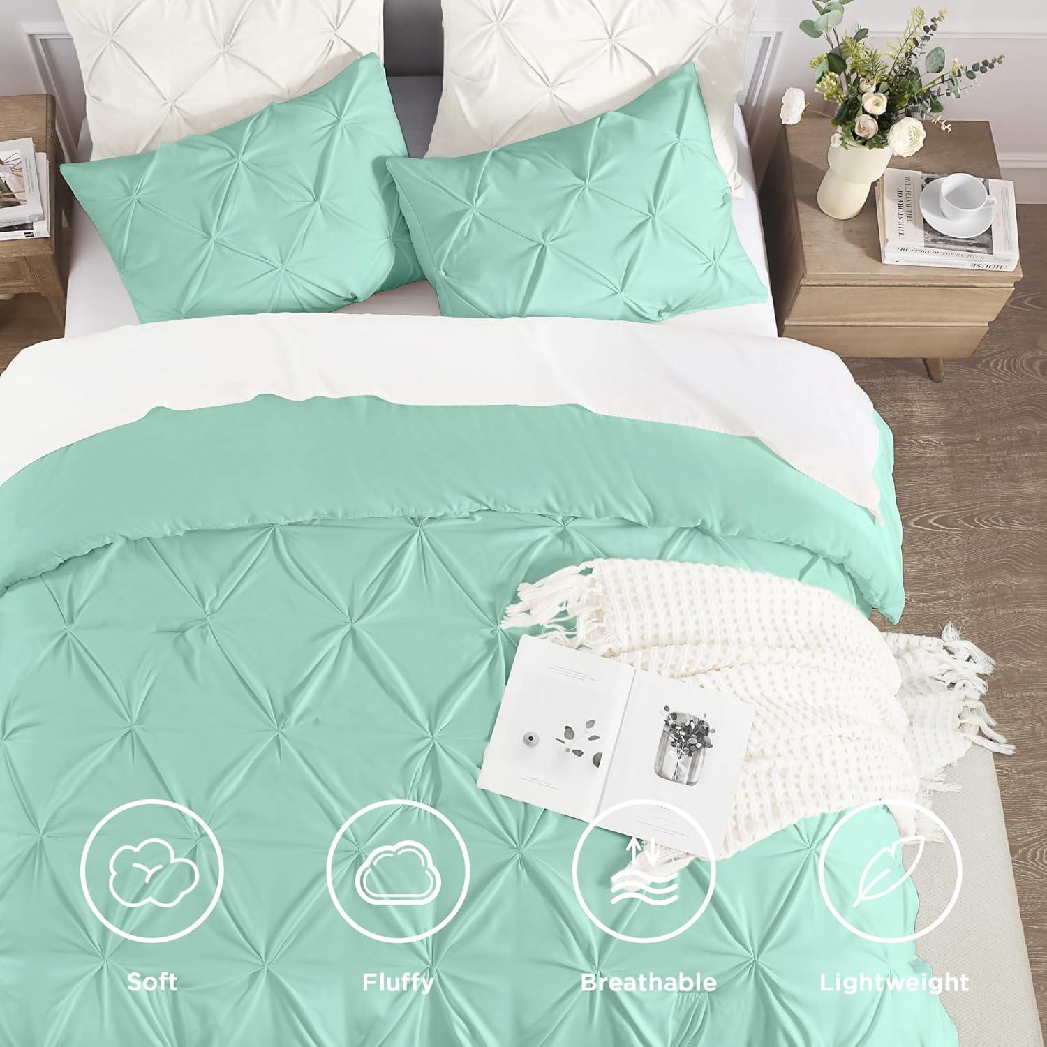 Andency White Queen Comforter Set(90x90Inch), 3 Pieces Cute Pinch Pleat Bedding Comforters & Sets for Queen Bed, Soft Lightweight Fluffy Down Alternative All Season Bed Set(Mint Green)