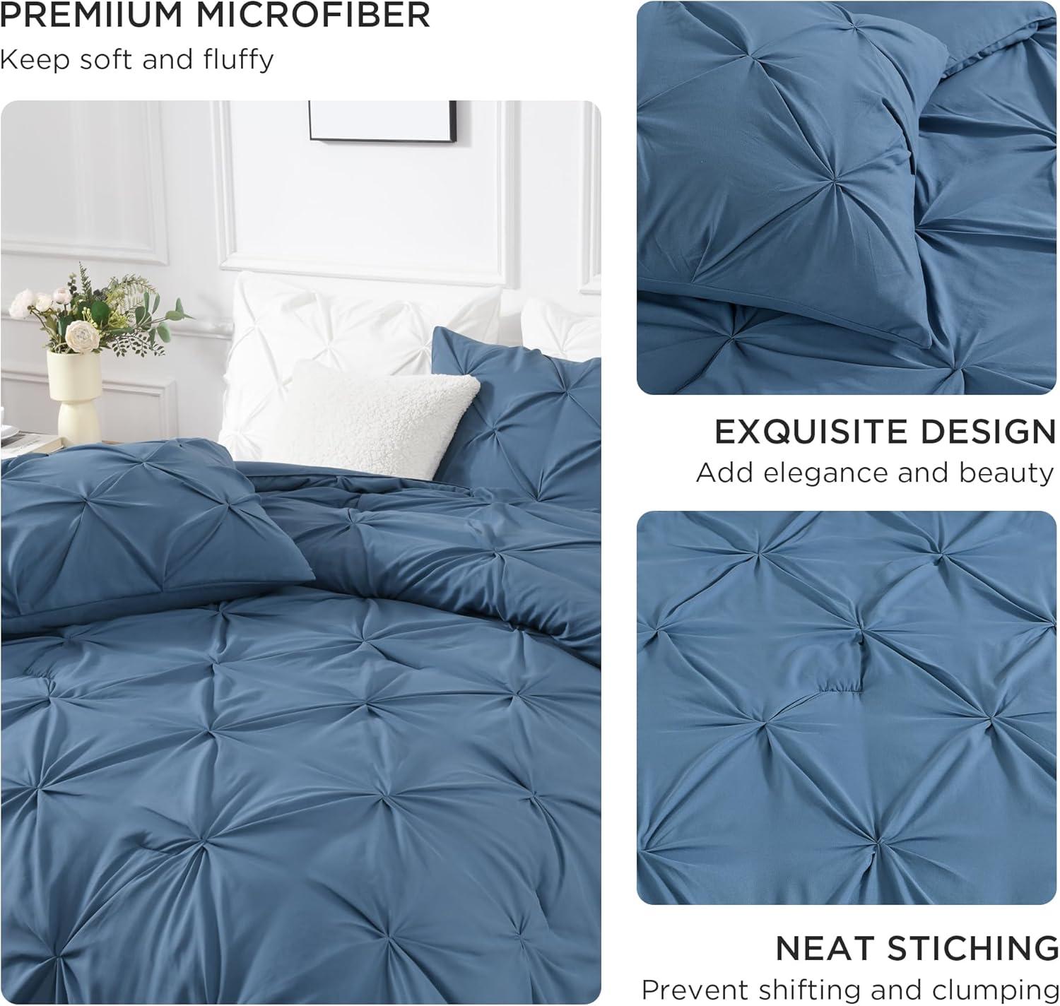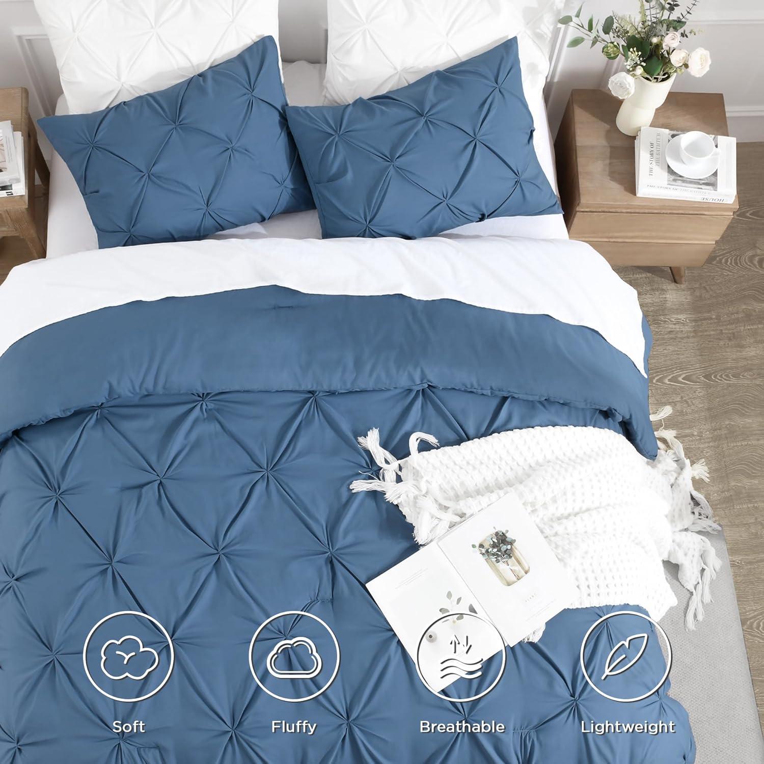 Andency White Queen Comforter Set(90x90Inch), 3 Pieces Cute Pinch Pleat Bedding Comforters & Sets for Queen Bed, Soft Lightweight Fluffy Down Alternative All Season Bed Set(Navy Blue)