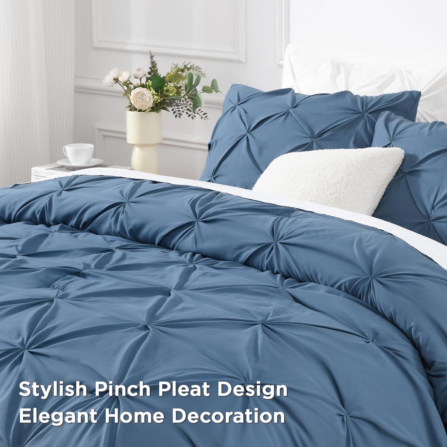 ALL SEASON SUITABLE: Super soft microfiber bedding set is suitable for all seasons, warm and lightweight. Due to the vacuum packaging, after you get the comforter out, please hold four corners of the comforter to stretch a while and shake it several times, so that the whole comforter could become normal and the pinch pleat design will be more obvious.