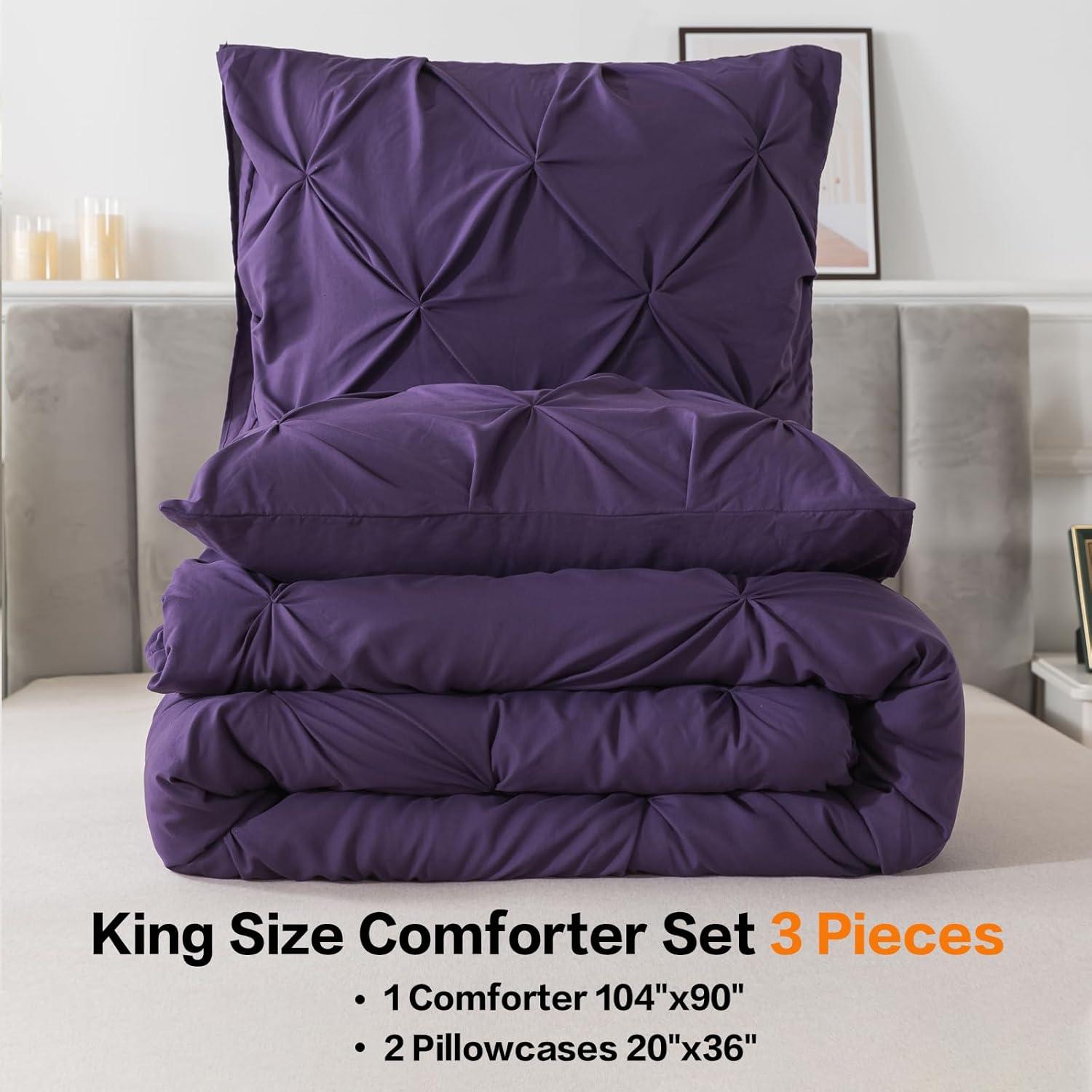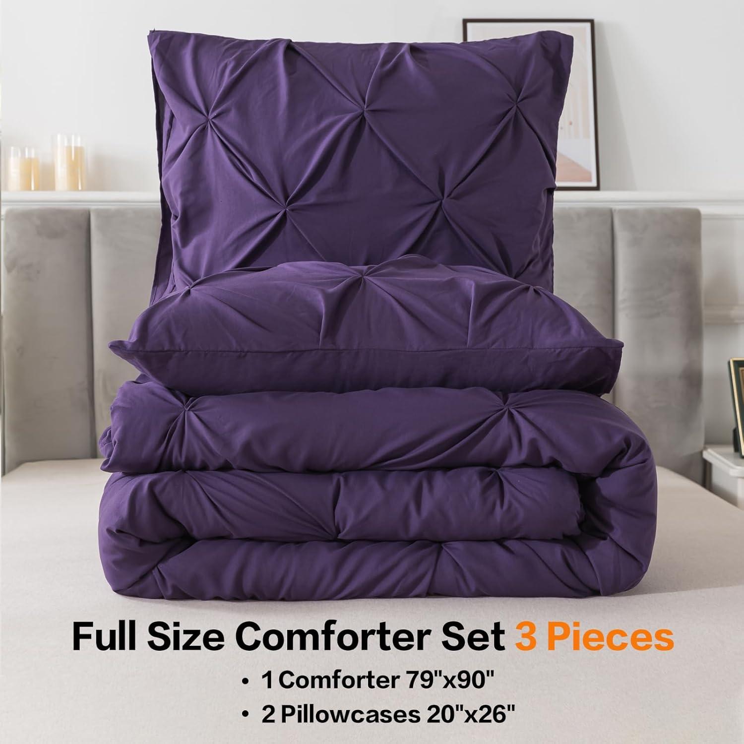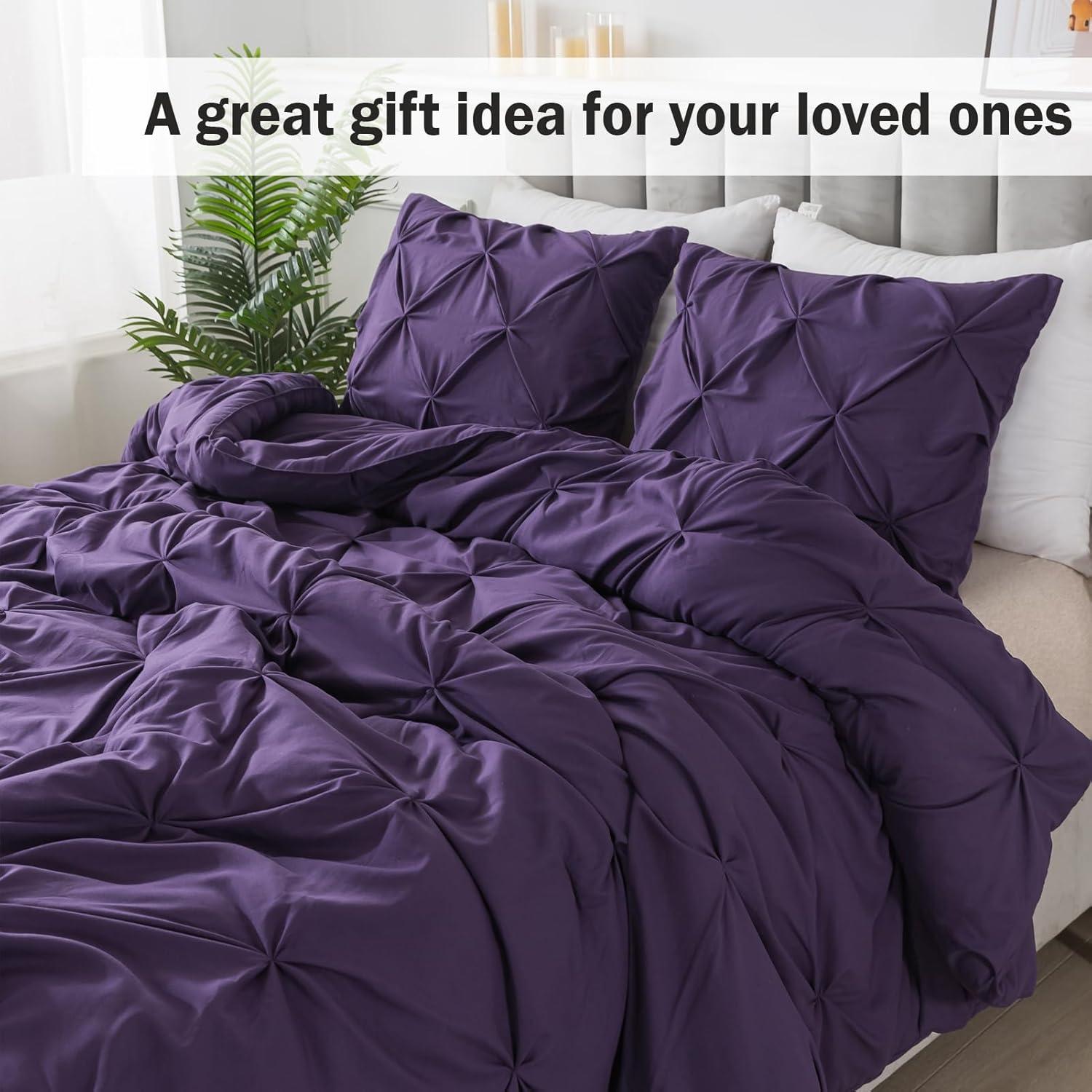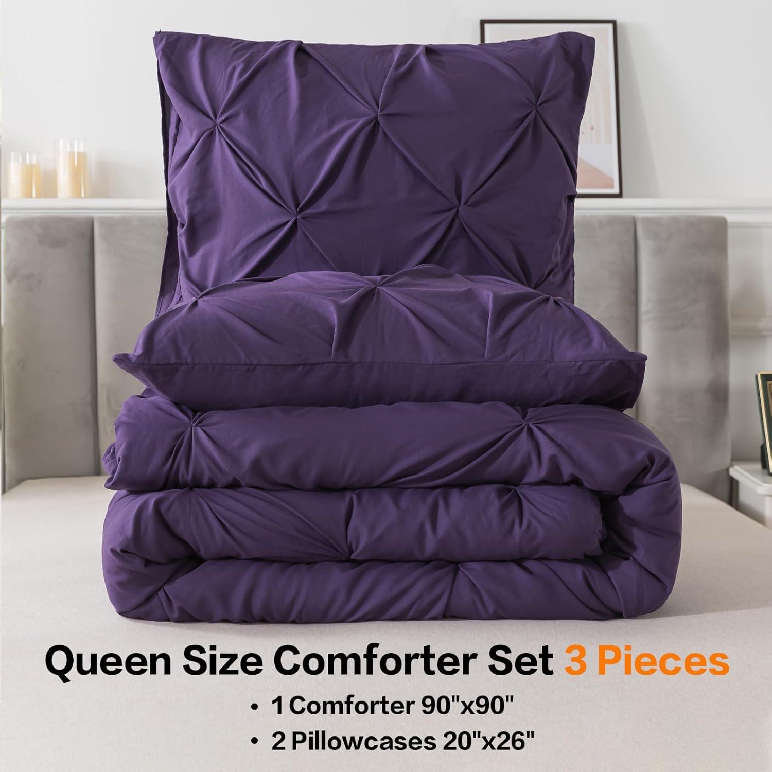 Andency White Queen Comforter Set(90x90Inch), 3 Pieces Cute Pinch Pleat Bedding Comforters & Sets for Queen Bed, Soft Lightweight Fluffy Down Alternative All Season Bed Set(Purple)