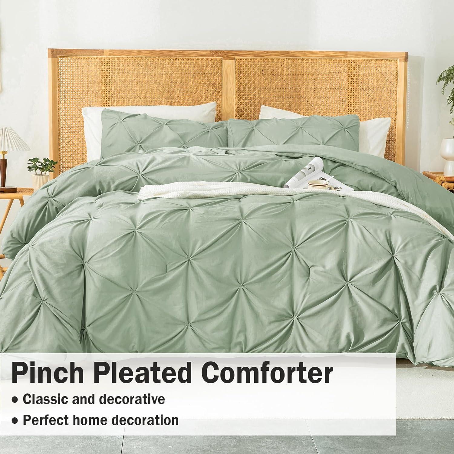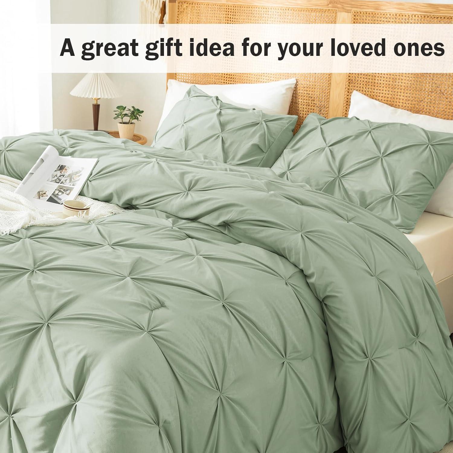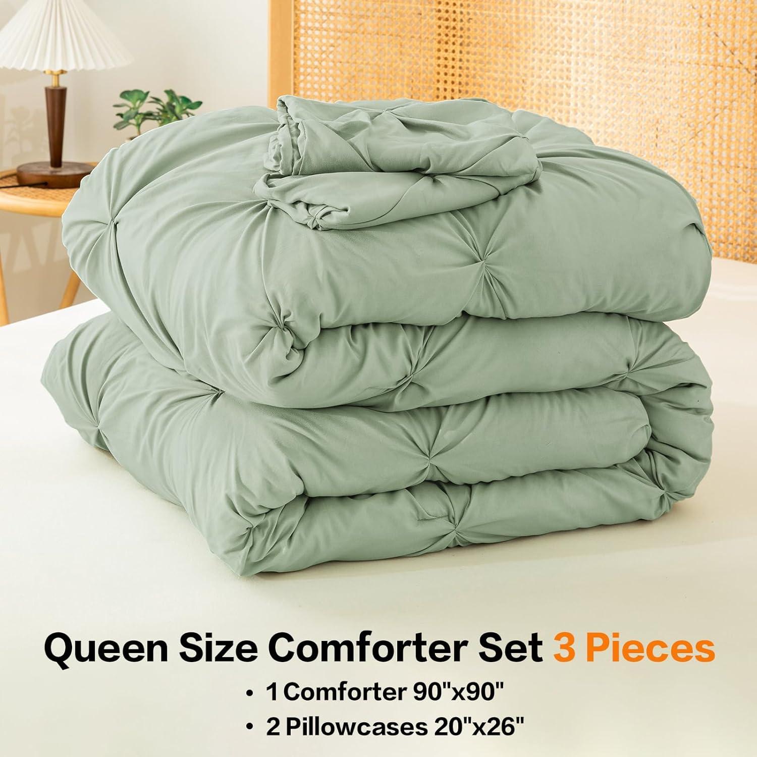 Andency White Queen Comforter Set(90x90Inch), 3 Pieces Cute Pinch Pleat Bedding Comforters & Sets for Queen Bed, Soft Lightweight Fluffy Down Alternative All Season Bed Set(Sage Green)