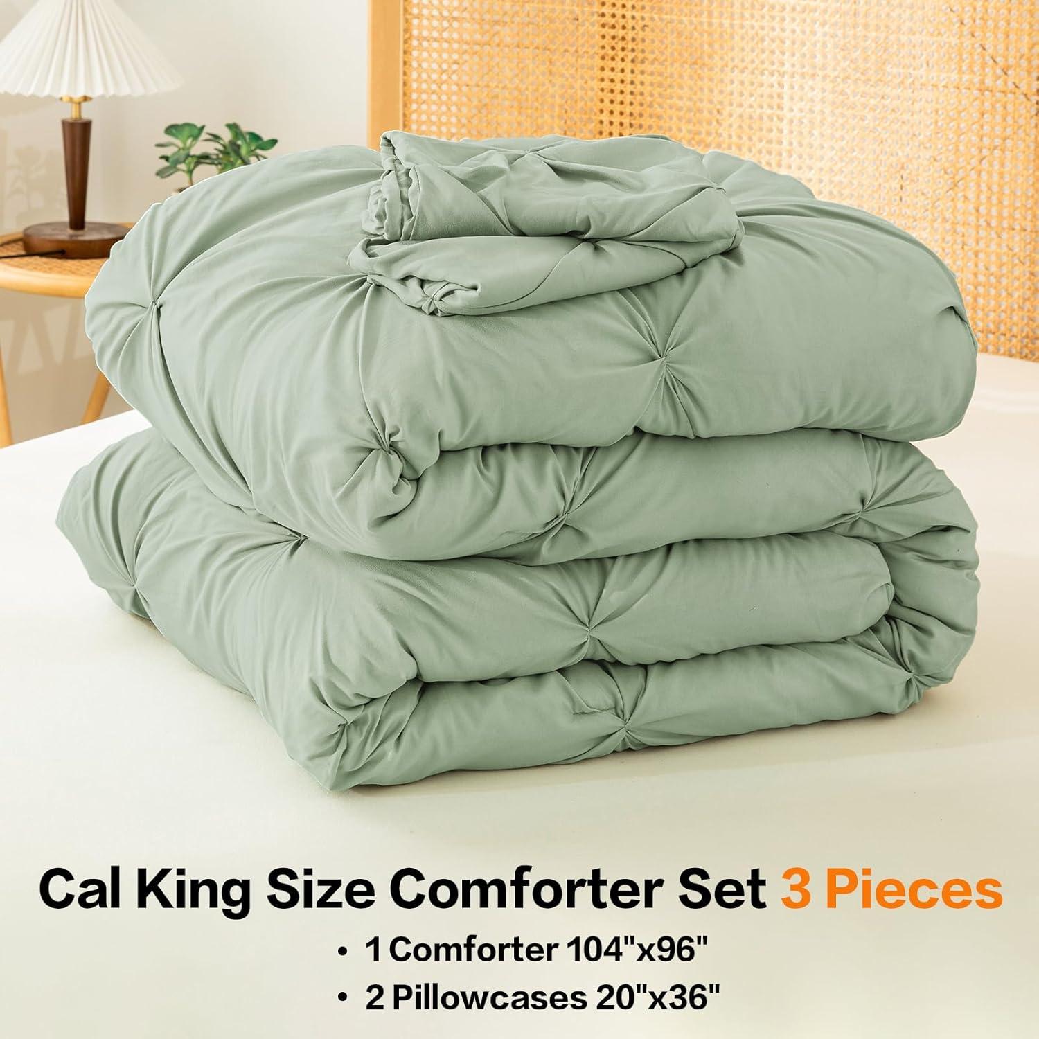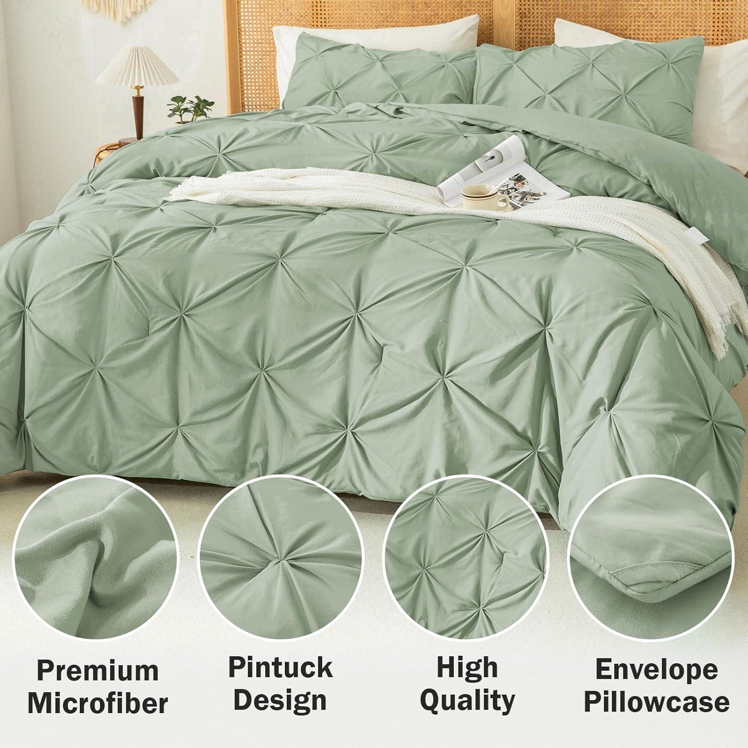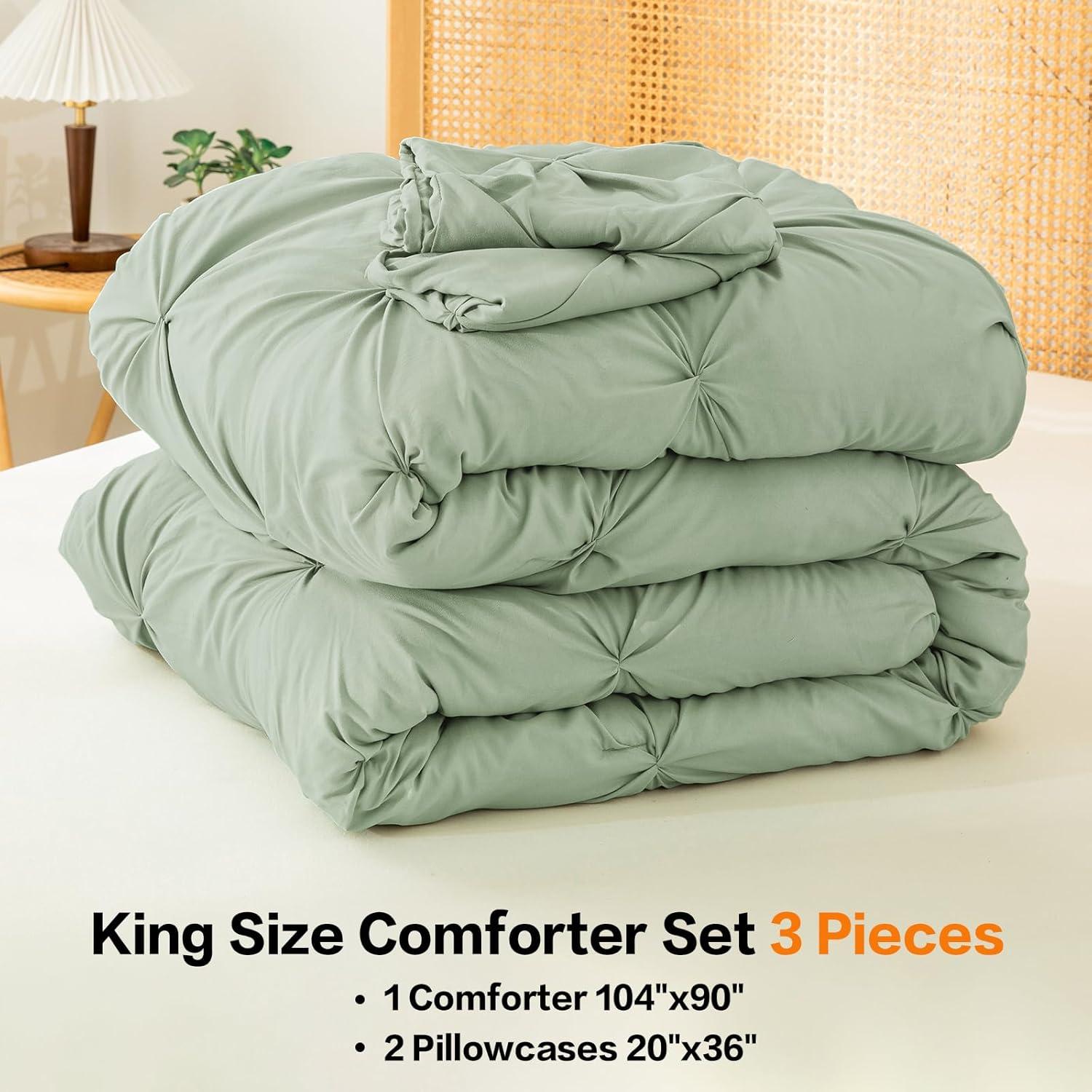 Andency White Queen Comforter Set(90x90Inch), 3 Pieces Cute Pinch Pleat Bedding Comforters & Sets for Queen Bed, Soft Lightweight Fluffy Down Alternative All Season Bed Set(Sage Green)
