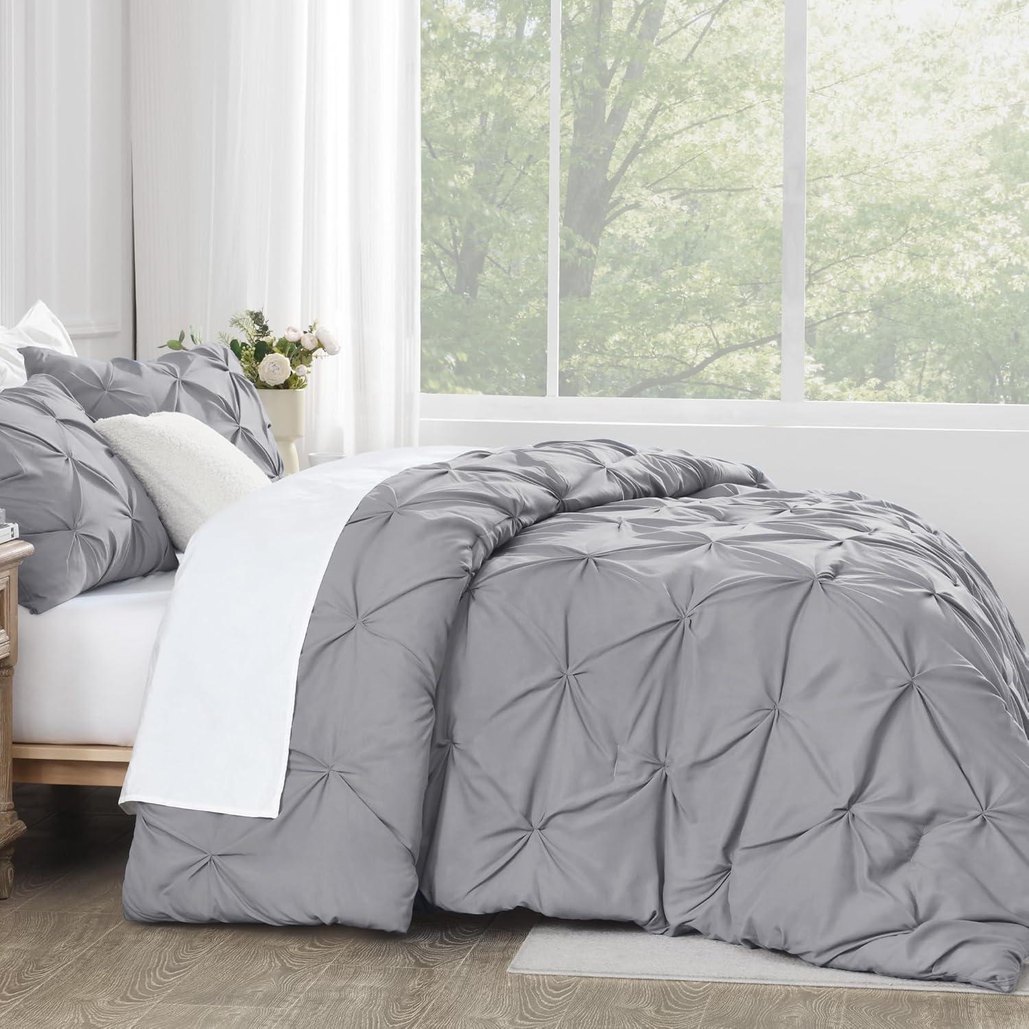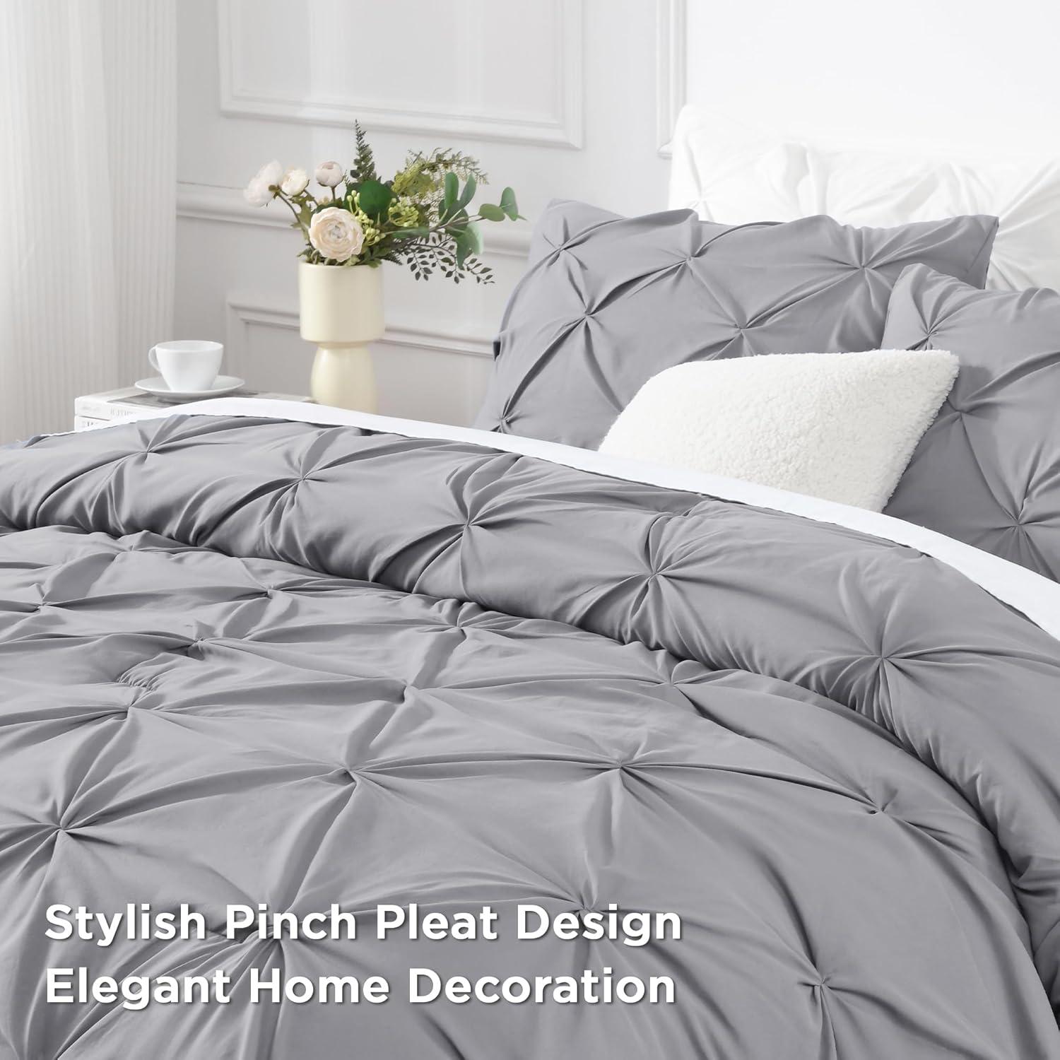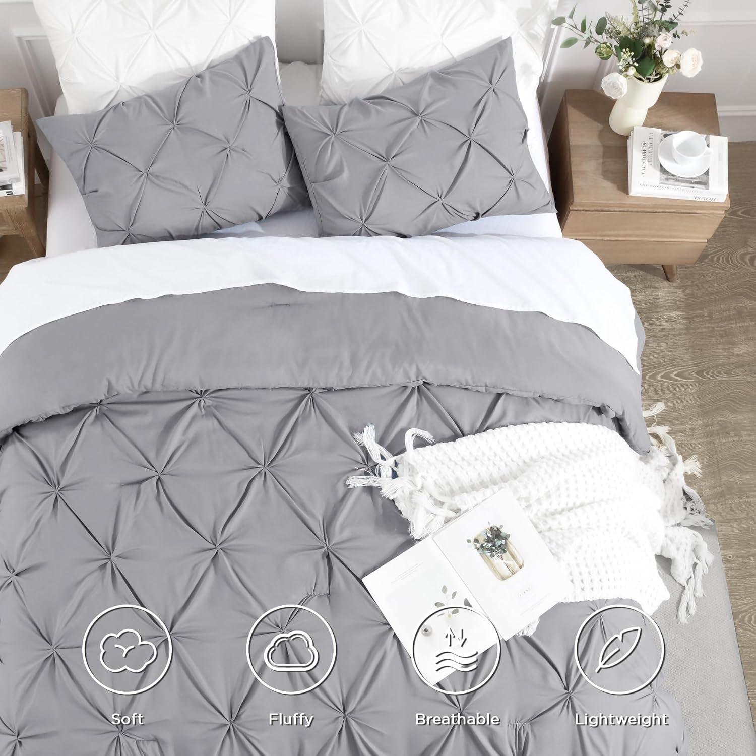 Andency White Queen Comforter Set(90x90Inch), 3 Pieces Cute Pinch Pleat Bedding Comforters & Sets for Queen Bed, Soft Lightweight Fluffy Down Alternative All Season Bed Set(Silver Gray)