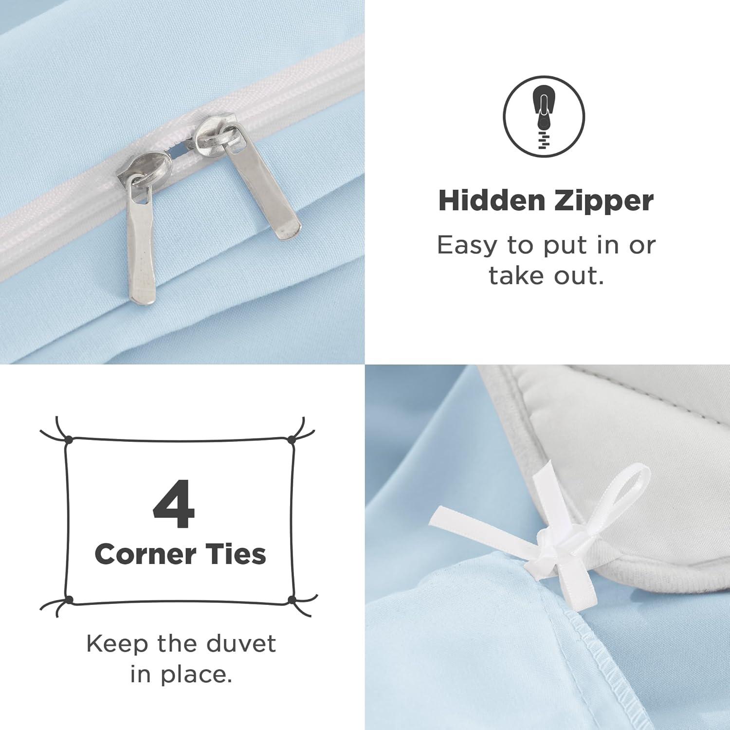 Convenient Zipper & Corner Ties:Features a hidden zipper for easy comforter insertion and four interior ties to secure your duvet in place; The duvet cover stays perfectly positioned all night long