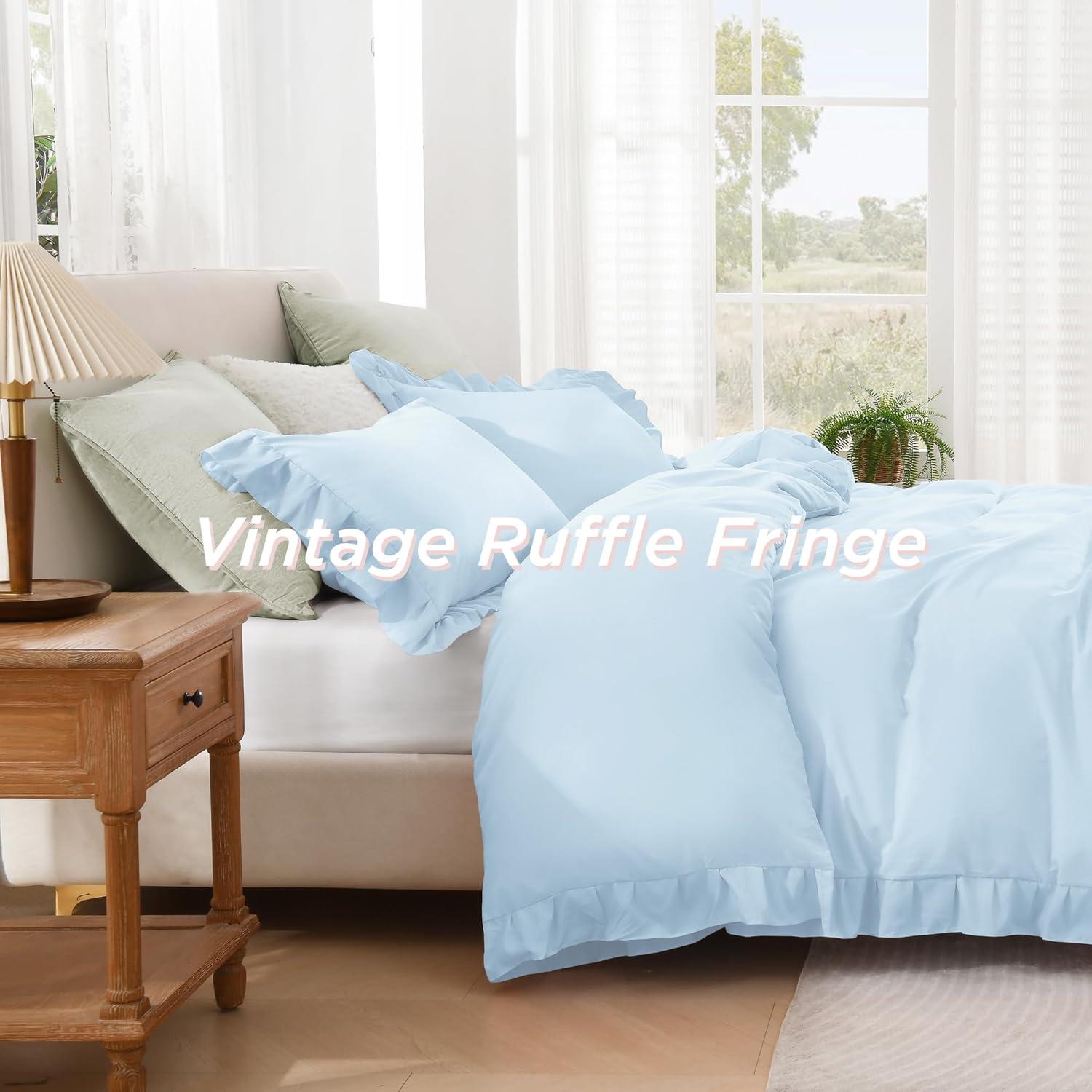 Elegant Ruffle Design:Enhance your bedroom with this duvet cover featuring delicate vintage ruffle detailing; The elegant fringe adds sophistication to farmhouse, shabby chic, and French country decor styles