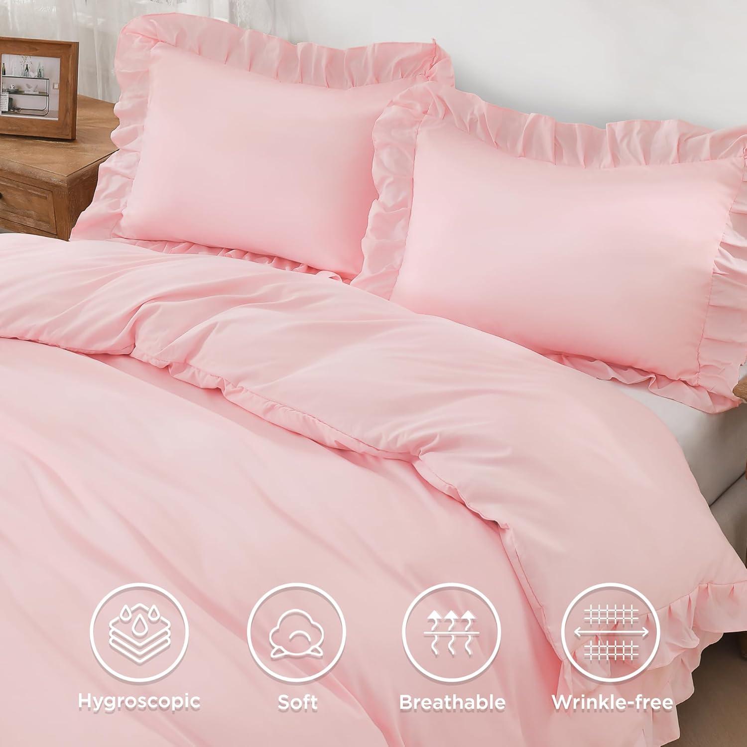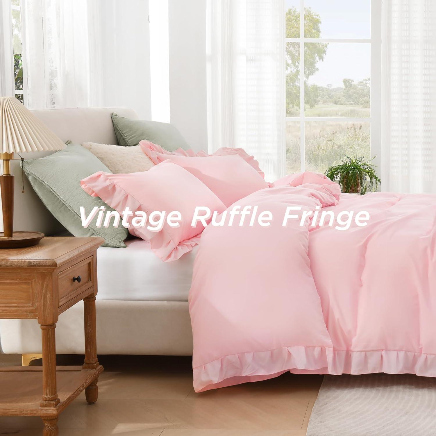 Elegant Ruffle Design:Enhance your bedroom with this duvet cover featuring delicate vintage ruffle detailing; The elegant fringe adds sophistication to farmhouse, shabby chic, and French country decor styles